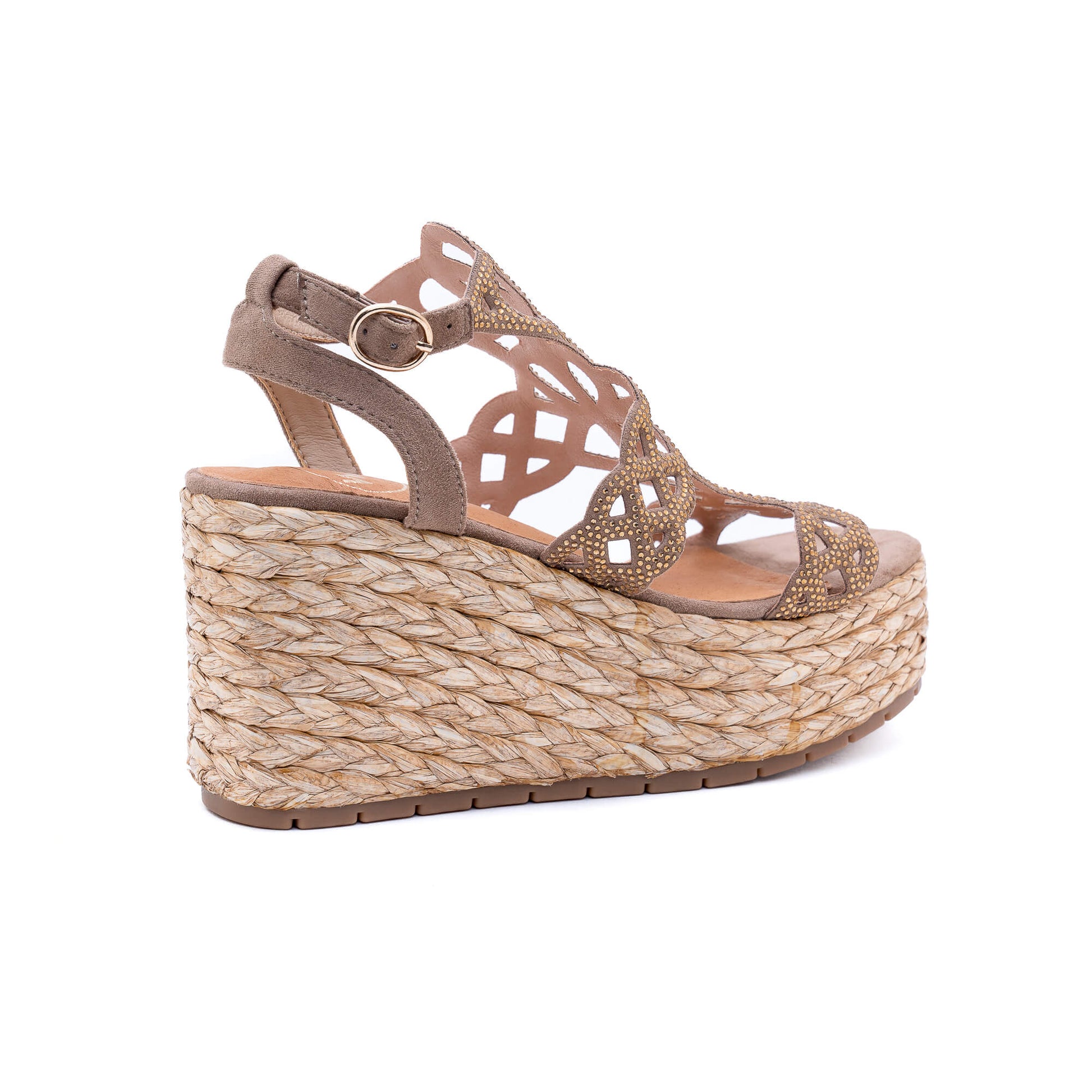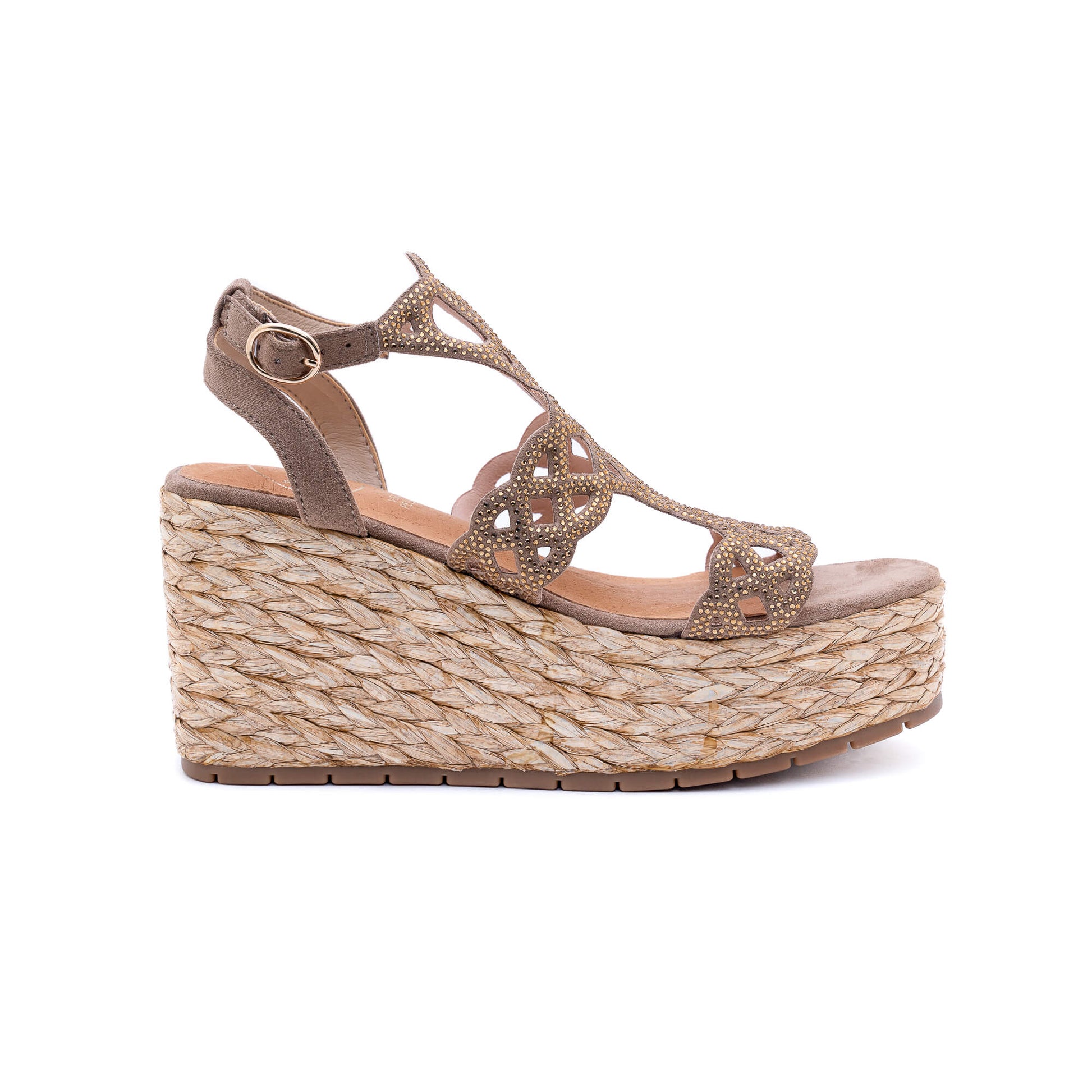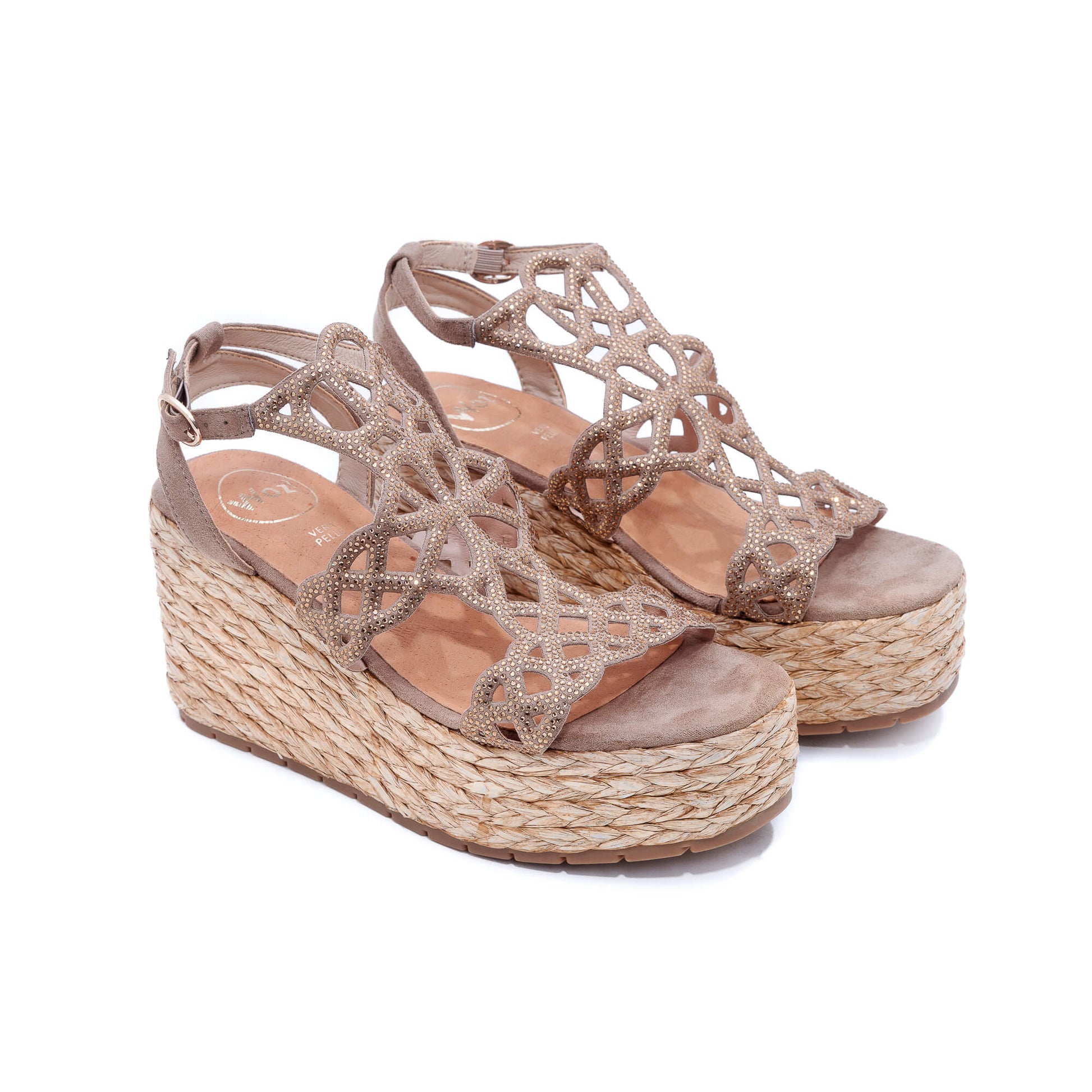 Designed in Italy, these stunning sandals feature a fabric construction with intricate stone detailing. A soft padded footbed ensures comfort, while the 9 cm heel, covered in natural beige braided raffia, adds an elegant touch. Perfect for any occasion.