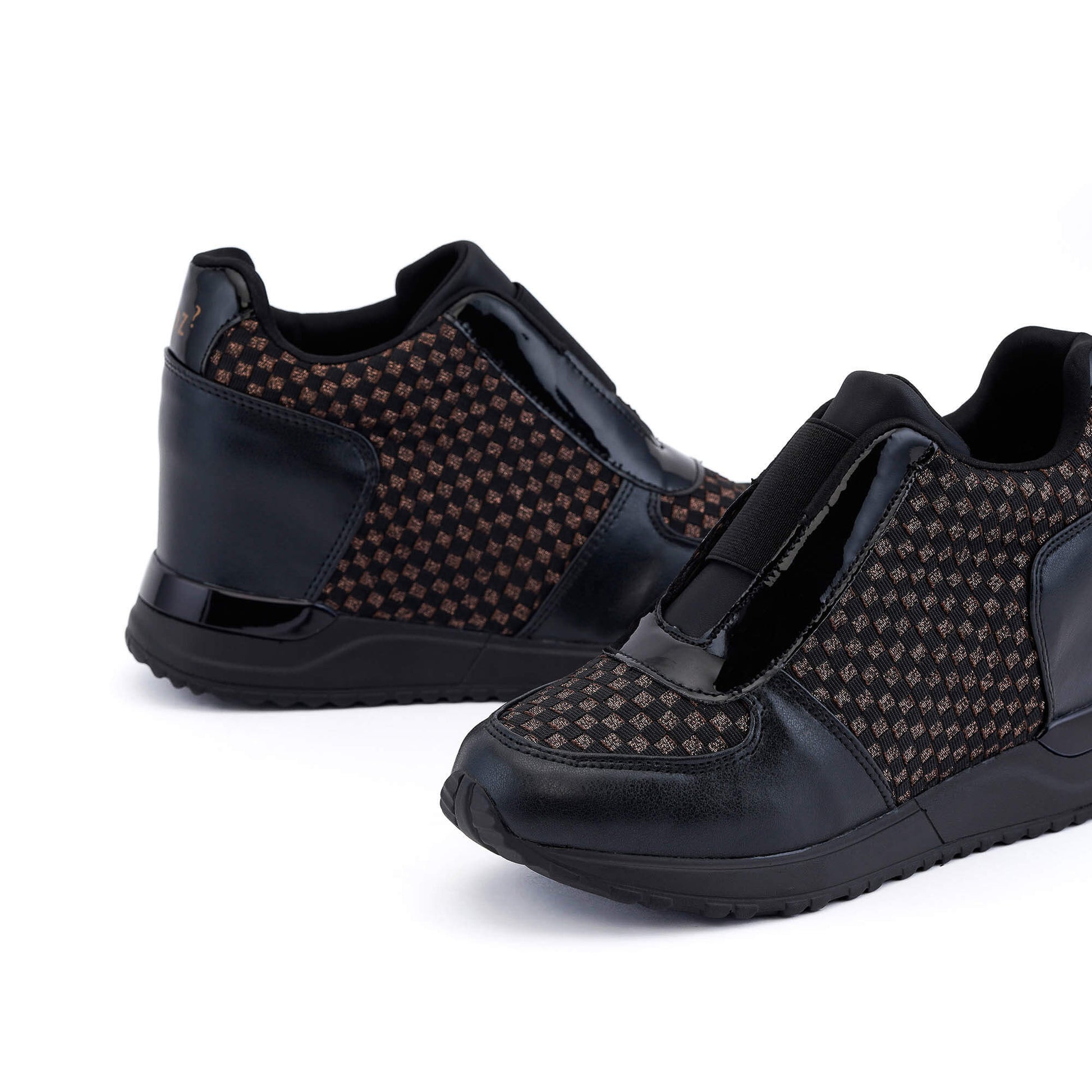 These Bologna Black Wedge Heel Sneakers are crafted from fabric and feature a soft padded footbed for maximum comfort. The stylish outsole provides excellent grip, and the 7cm heel adds a touch of height. Designed in Italy.