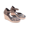 Elegant woven stretch textile gives these espadrille wedges a lovely appearance, complemented by a velcro-fastened ankle strap. A soft padded footbed provides comfort, while a natural beige braided rope covers the heel. With a 7 cm heel height, these wedges were expertly designed in Italy.