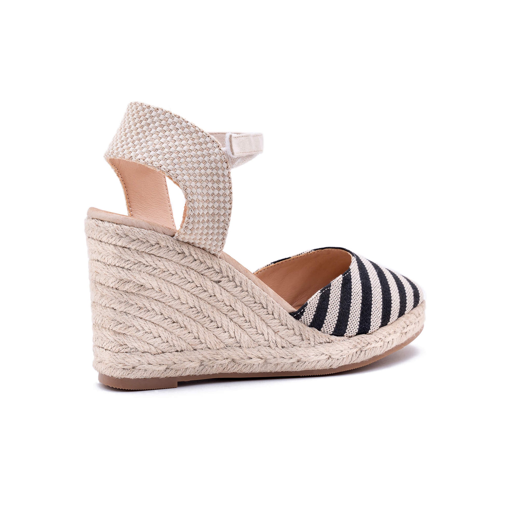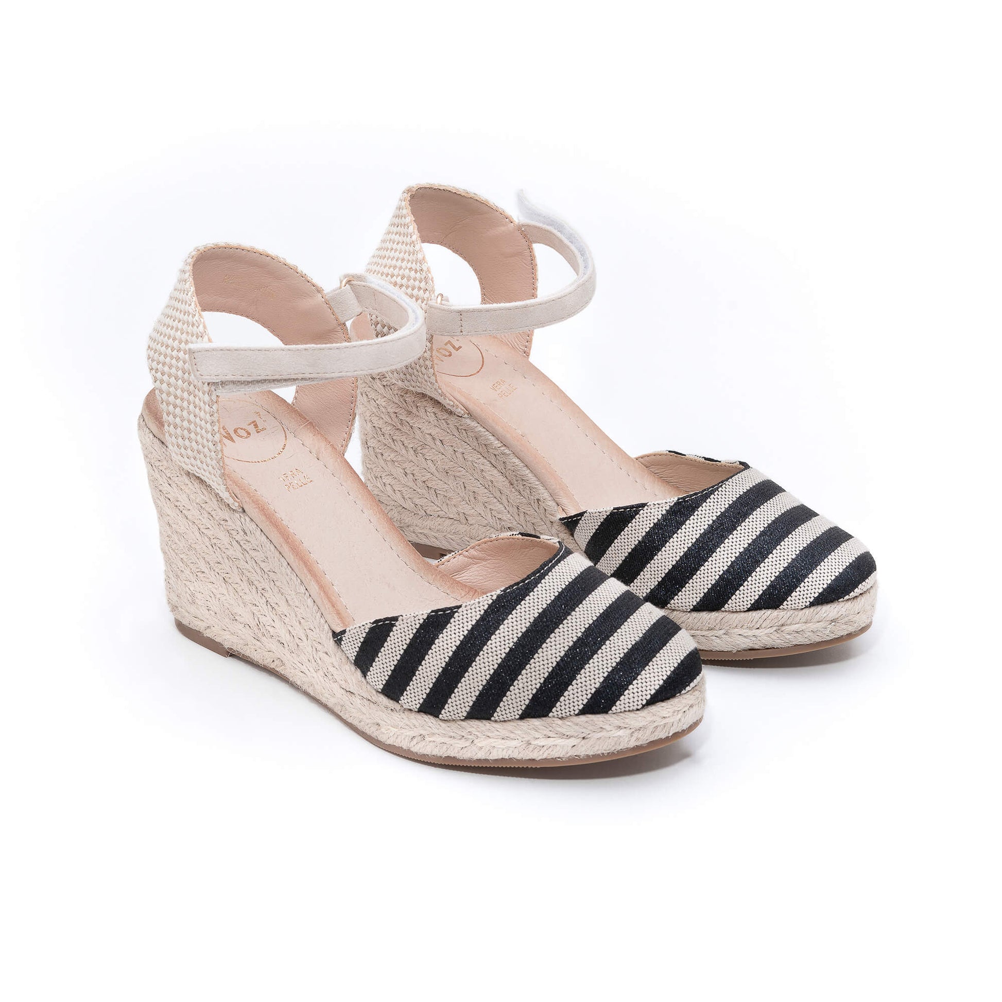 This lovely espadrille wedge is crafted from high-quality fabric. It features an adjustable ankle strap with velcro closure for a comfortable fit. The footbed is padded for added support and the heel is covered with natural braided jute, giving it a unique and stylish look. With a heel height of 7 cm, these espadrilles are perfect for any occasion. Designed in Italy with expert craftsmanship.