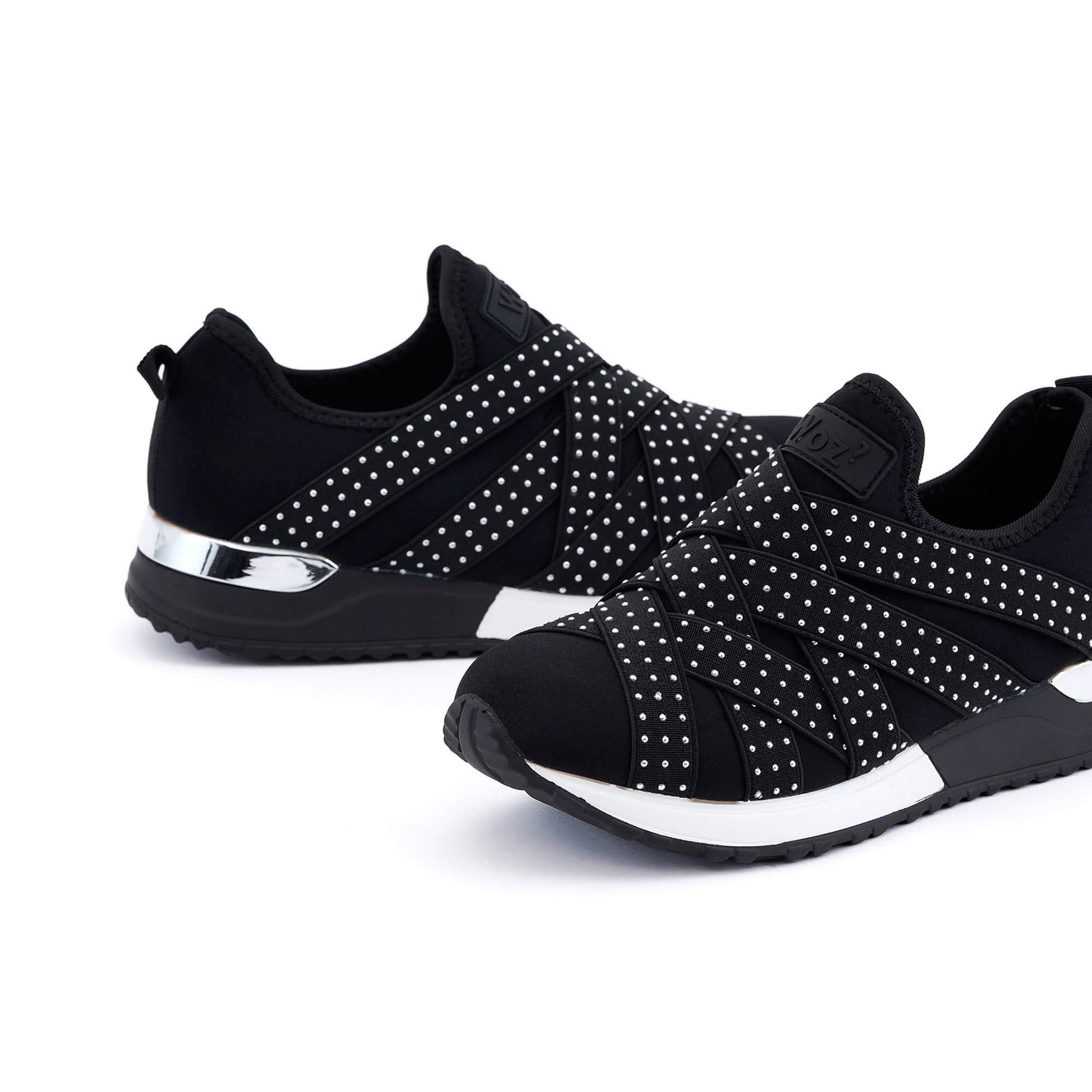 صنع هذا الحذاء الرياضي العصري من قماش ليكرا للبس مريح. مزين بقطع معدنية فضية للمسة أنيقة. وسادة قدم مبطنة وناعمة لراحة طوال اليوم. نعل خارجي بتصميم أنيق. صمم في إيطاليا من قبل خبراء الصناعة