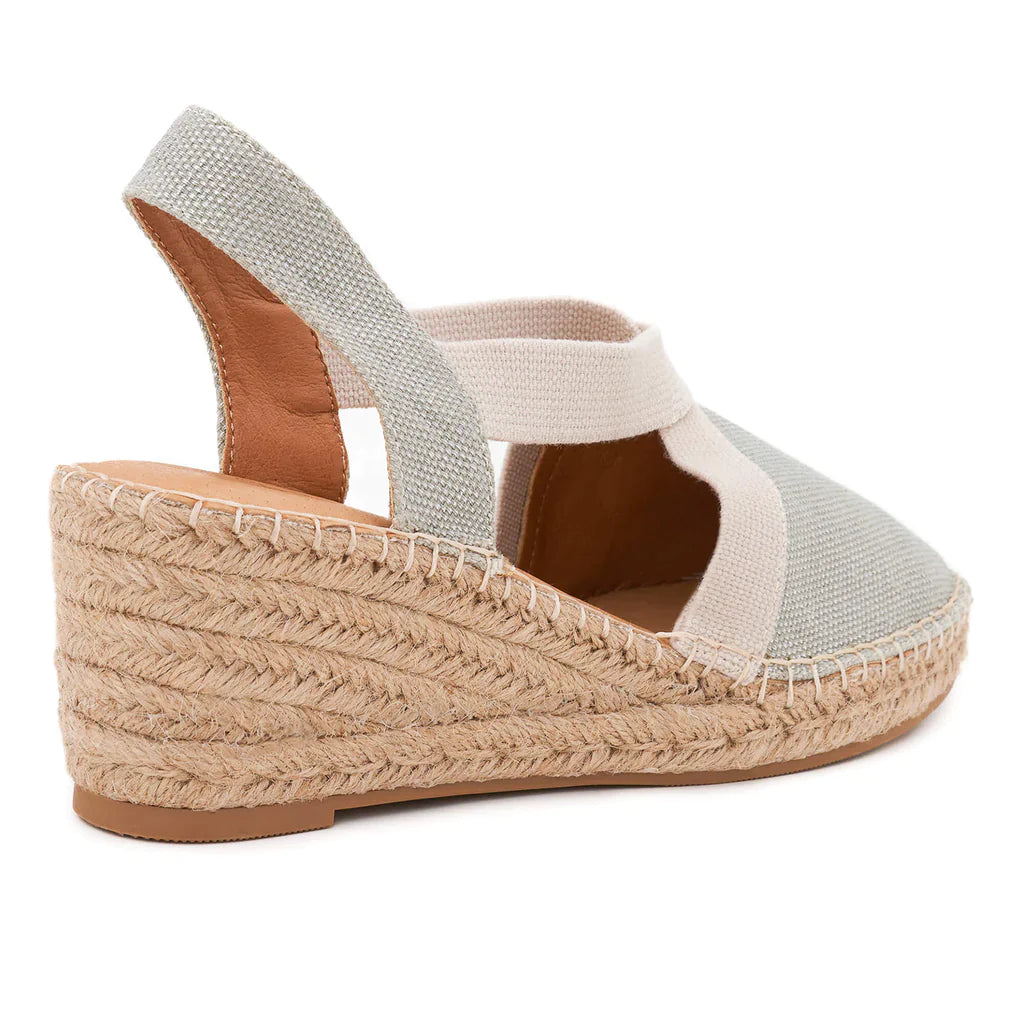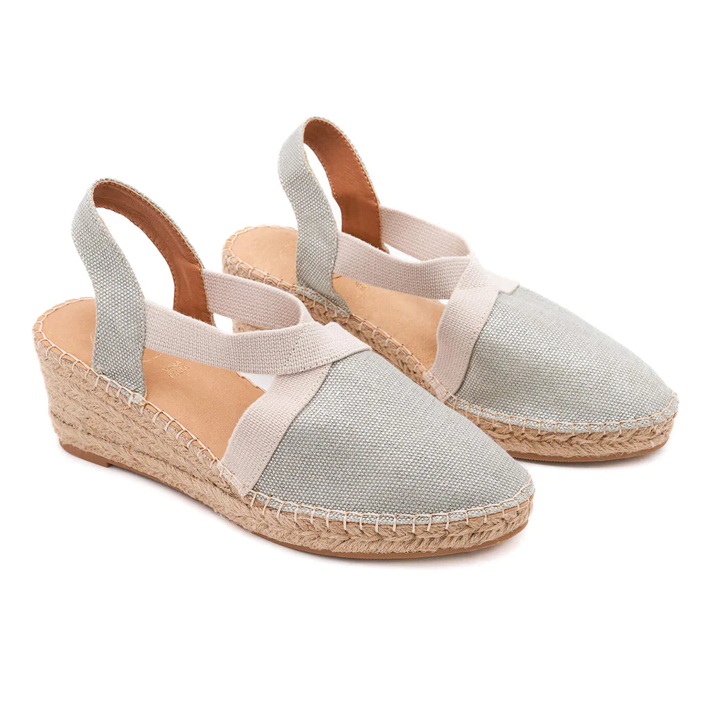 Elevate your style with the Anya Light Silver Espadrilles. These fabric wedges feature a soft padded footbed for comfort and a 5 cm heel designed in Italy.
