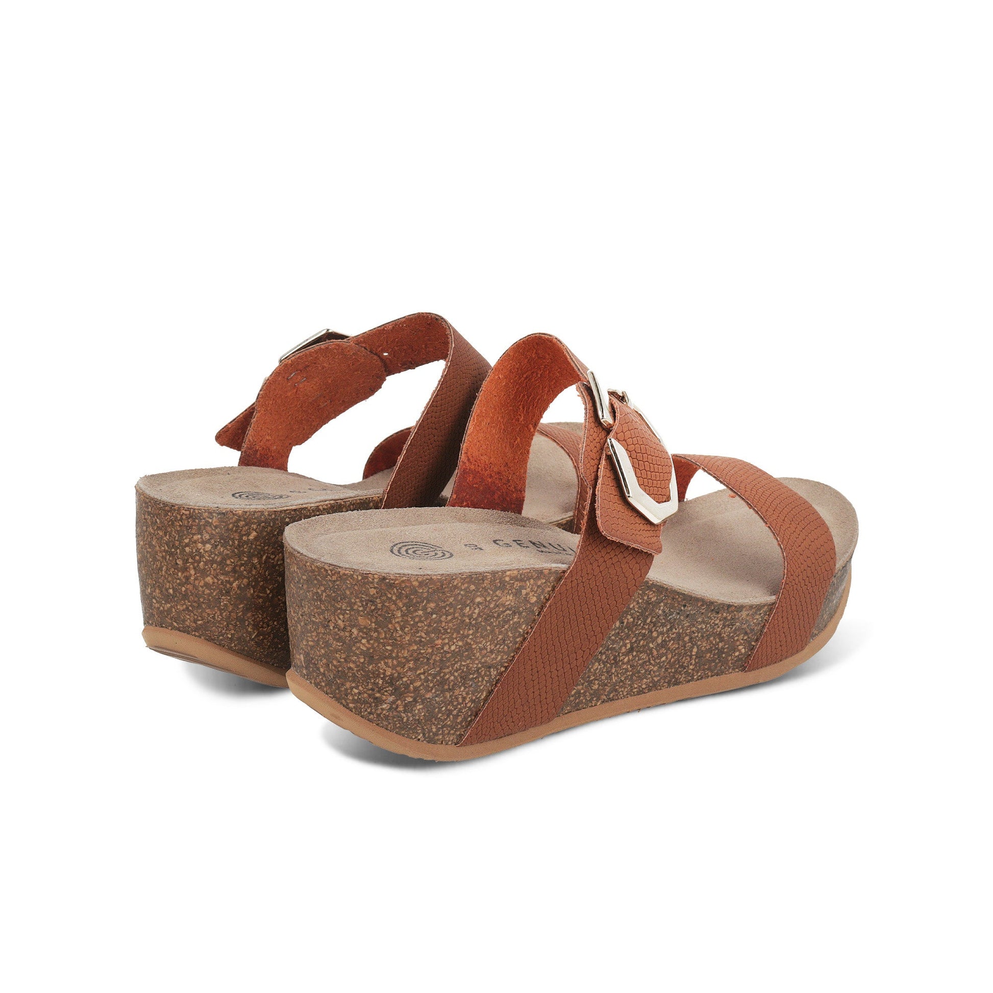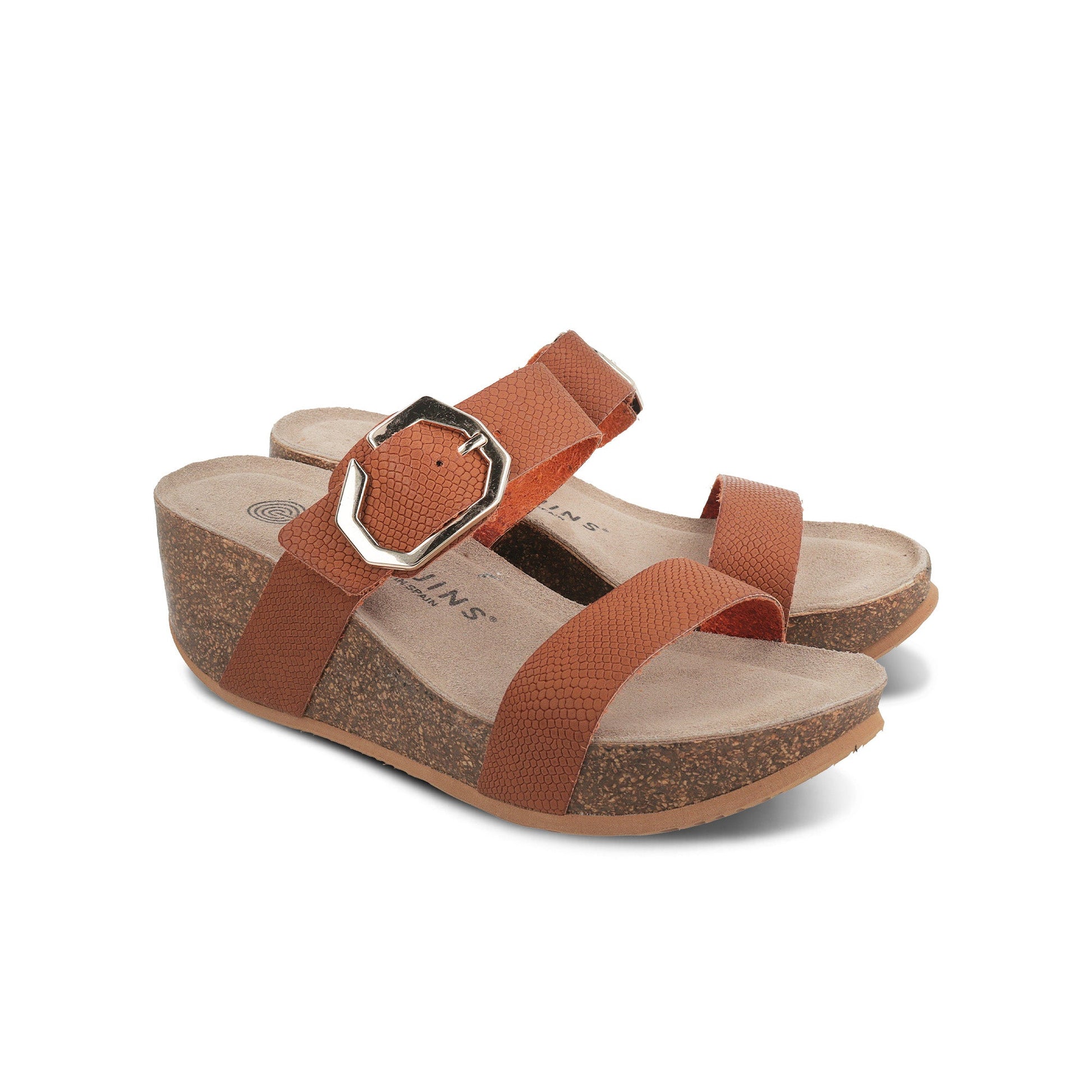 Experience the ultimate comfort with the Mont Sandal. Its synthetic material wedge is 7cm tall for a height boost, and it features an anatomical cork plant for a cushioned, soft feel. The adjustable buckle strap ensures a perfect fit, and an EVA outsole provides superior traction. Expertly crafted in Spain with luxurious materials.