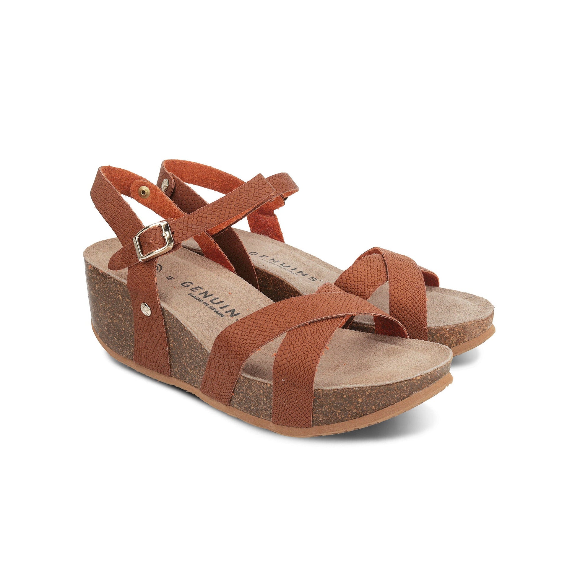 Handcrafted in Spain, these sandals have a professional, stylish look with secure leather uppers fastened by a metal buckle around the ankle and two crossed straps at the front. The 7 cm wedge heel, anatomical cork footbed, and EVA outsole make for all-day comfort.