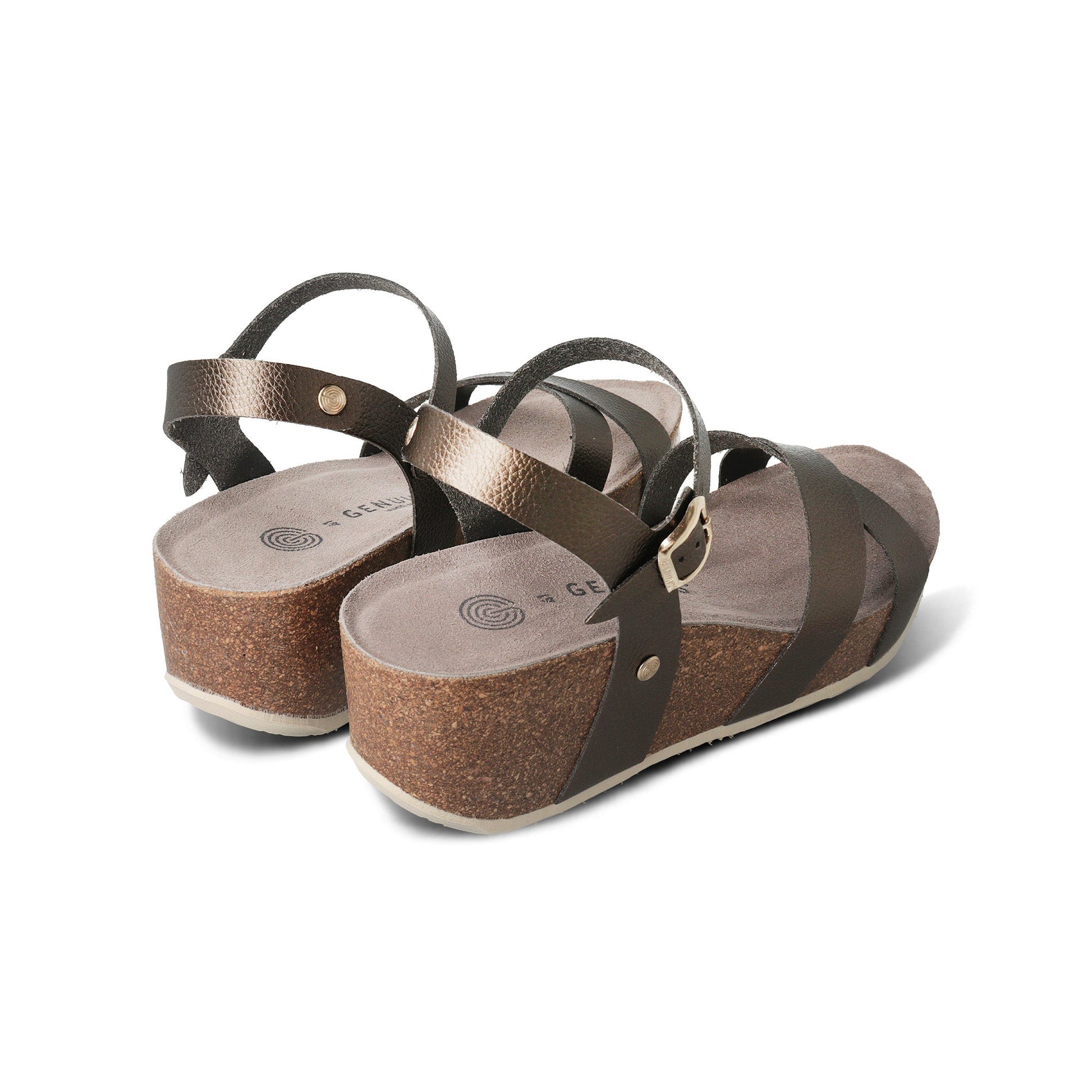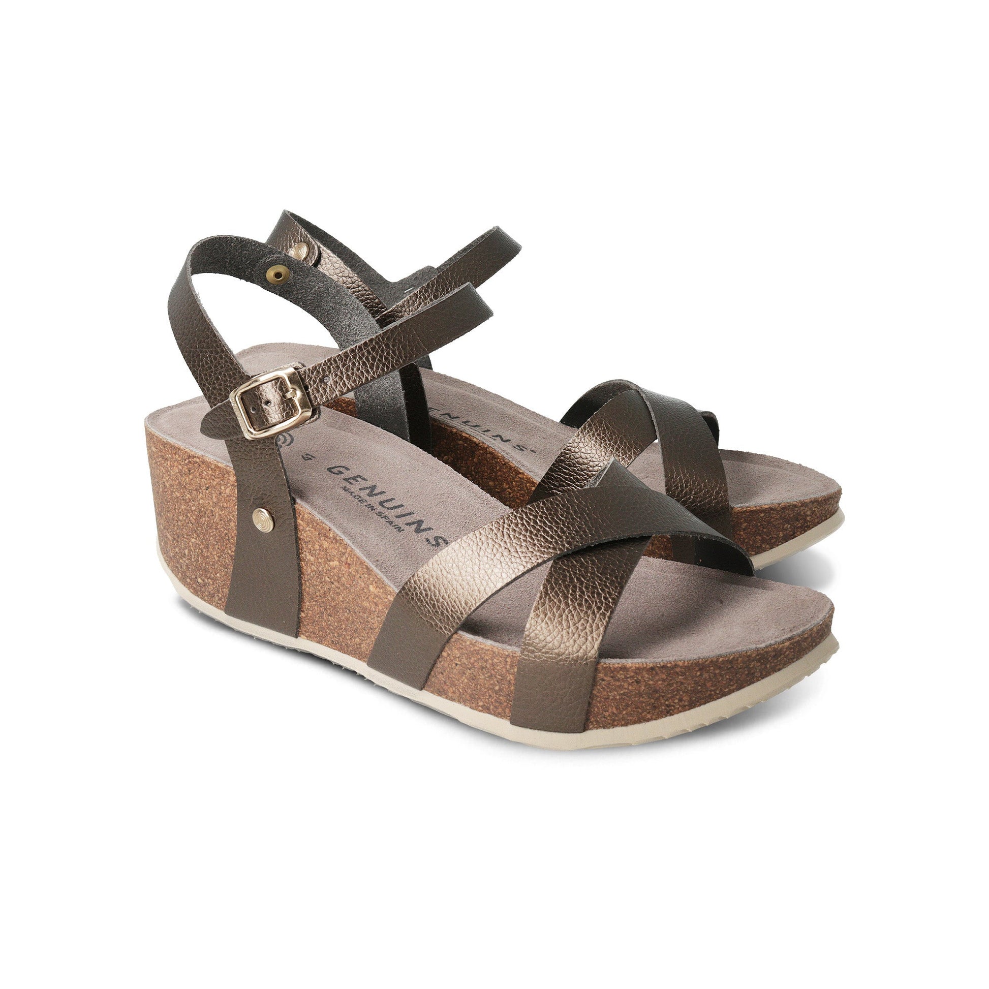These sandals are designed with leather uppers for a snug fit. A metal buckle secures them around the ankle, while two crossed straps at the front add style. The 7 cm wedge heel, anatomical cork footbed, and EVA outsole provide lasting comfort. Expertly handcrafted in Spain.