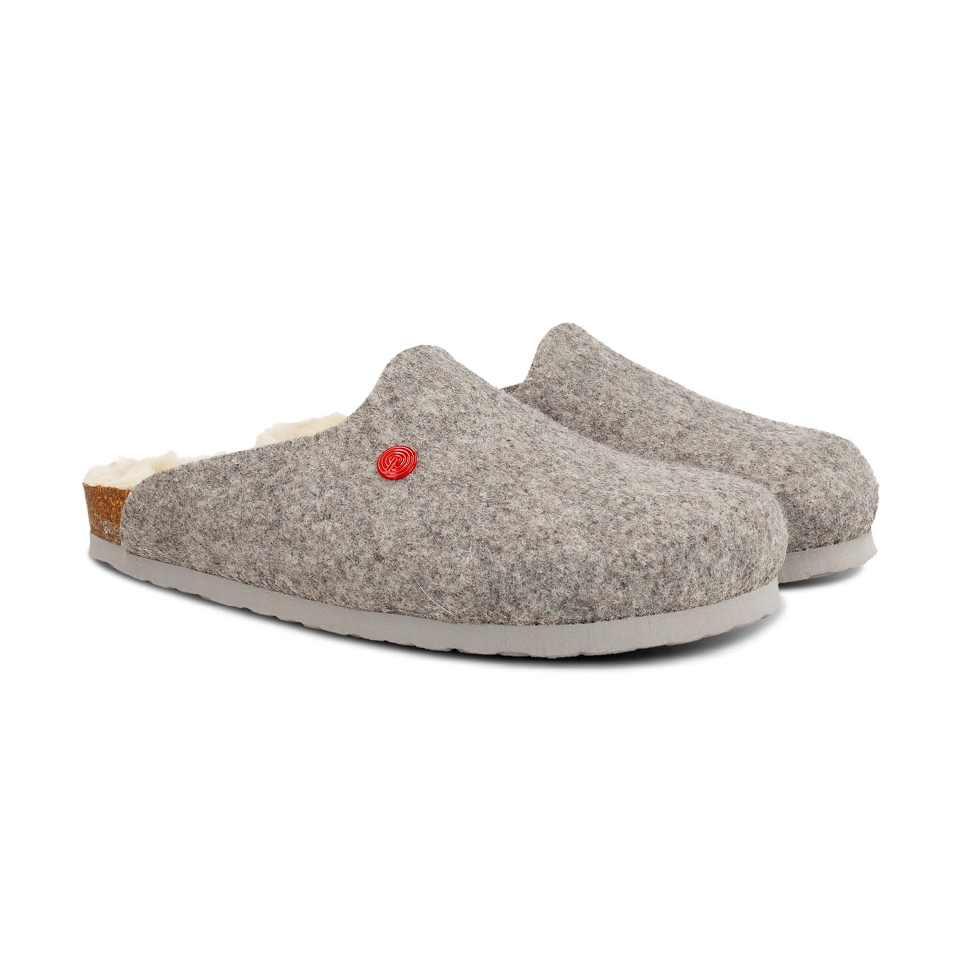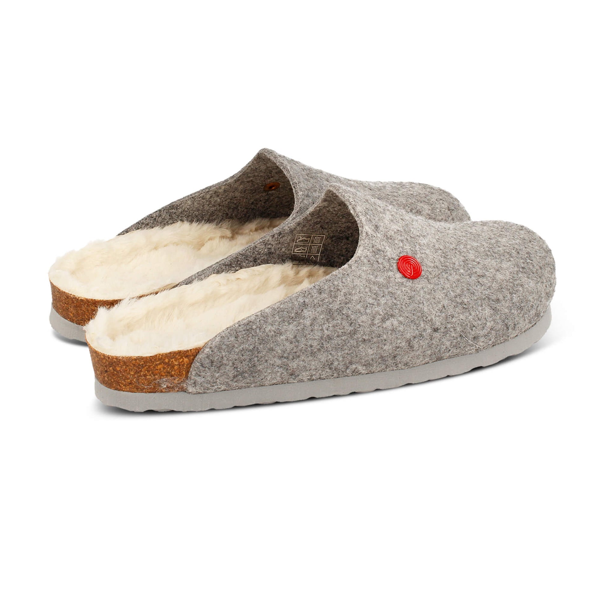 These Helsinki Gray Clogs are crafted from quality felt and offer superior comfort with an ANATOMICAL PLANT design made of natural cork and foam, lined with beige synthetic fur, and finished with a durable rubber outsole. Made in Spain.