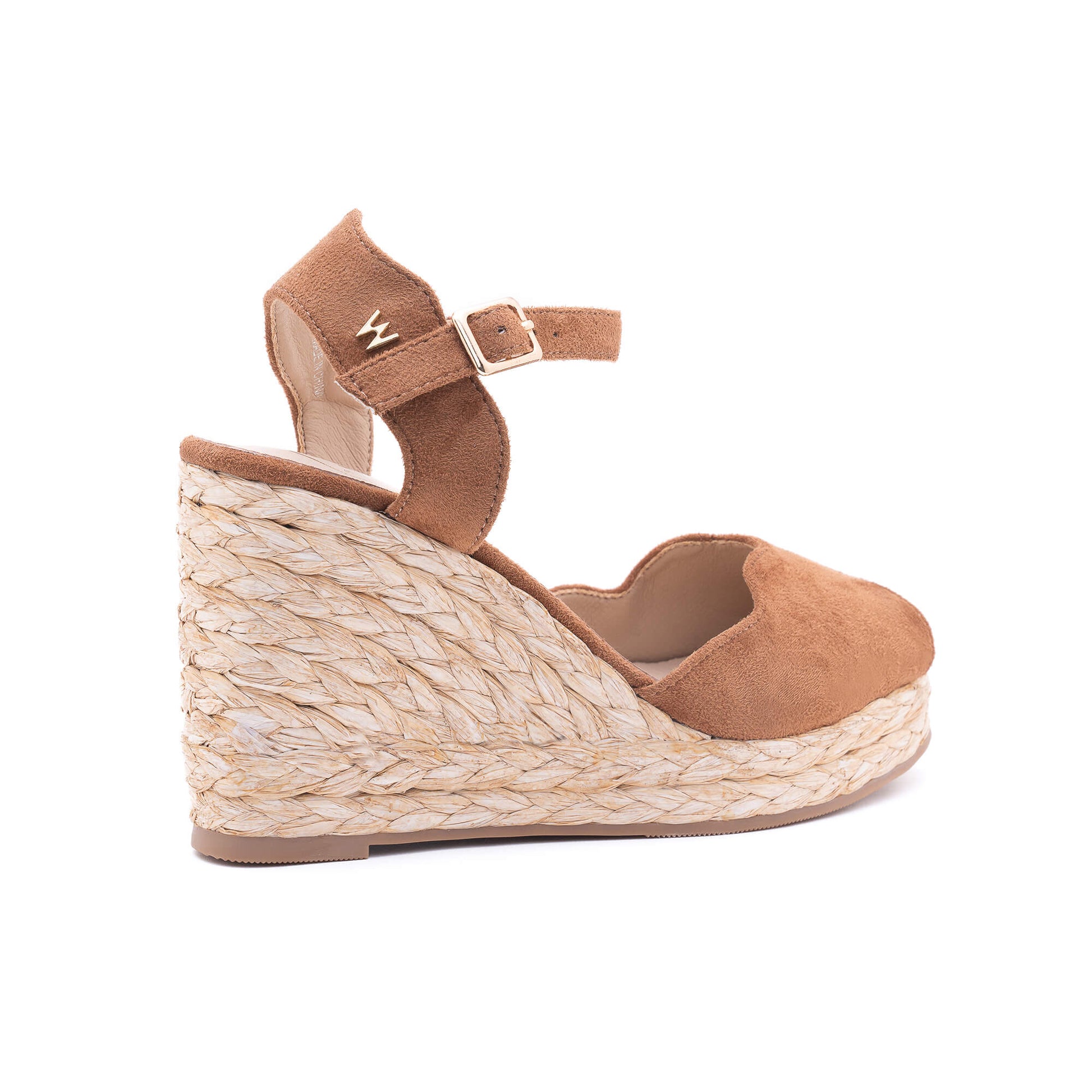 These open toe espadrille wedges are a stylish choice. They feature a buckle fastening ankle strap, a soft padded footbed, and a natural beige braided raffia covered heel measuring 10 cm in height. Designed in Italy.