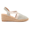 Elevate your style with the Anya Light Silver Espadrilles. These fabric wedges feature a soft padded footbed for comfort and a 5 cm heel designed in Italy.
