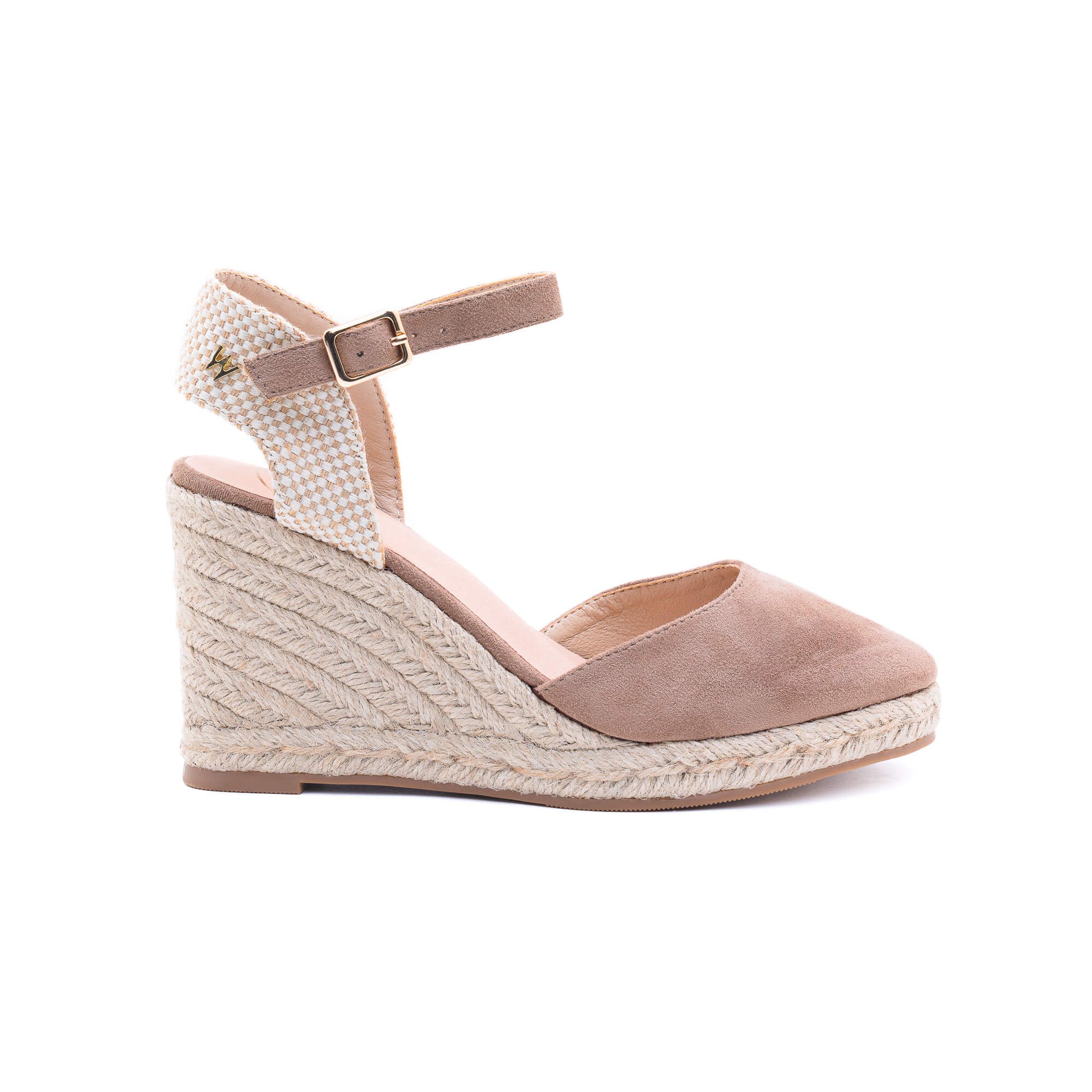These timeless Ashley Taupe Espadrilles feature a design with a suede material. The ankle strap fastens with a buckle, while the soft padded footbed adds extra comfort. The 7 cm heel is covered with natural beige braided rope, adding a touch of style. These espadrilles were expertly designed in Italy.