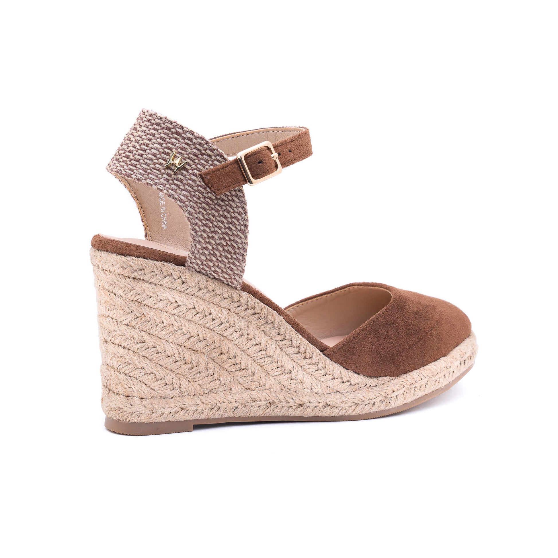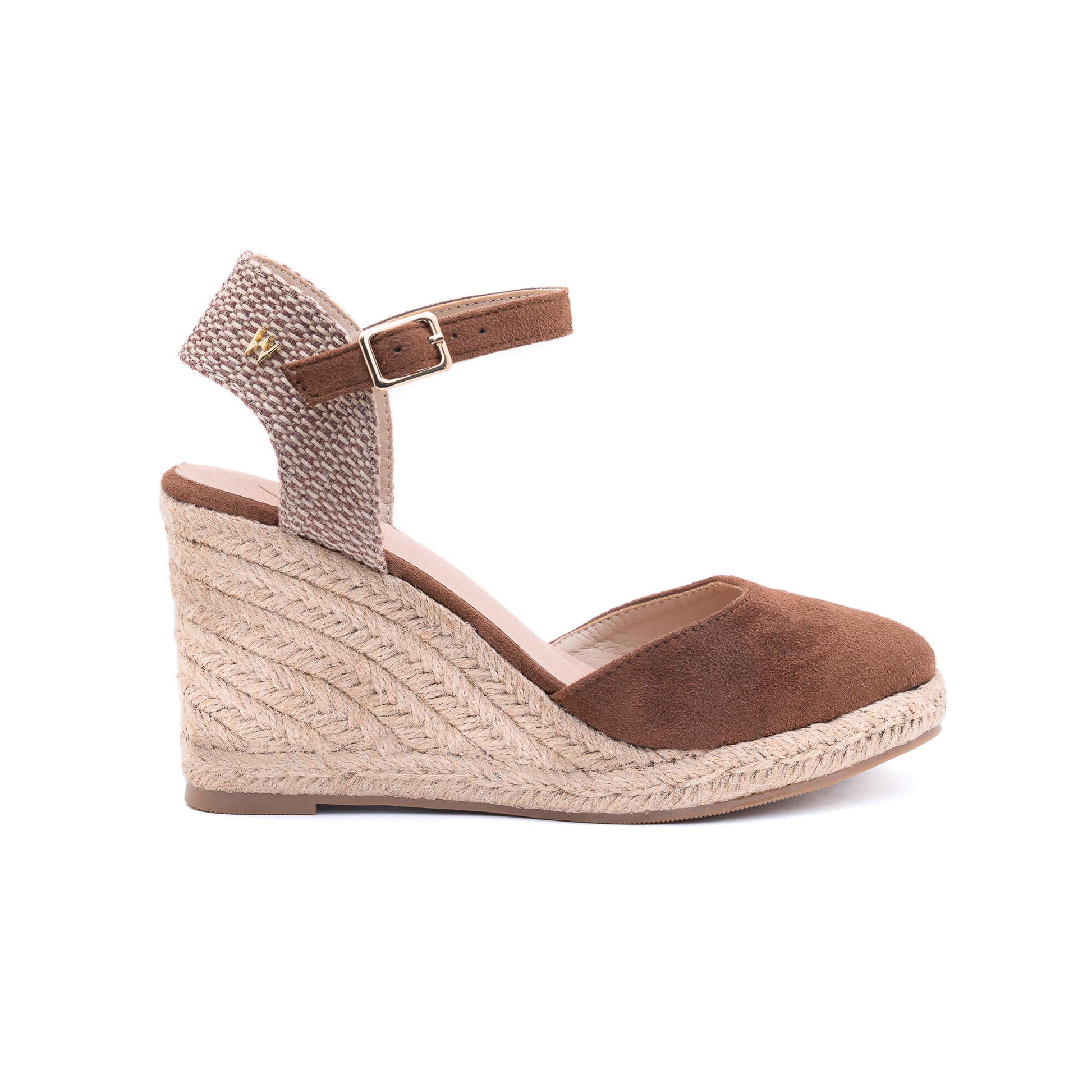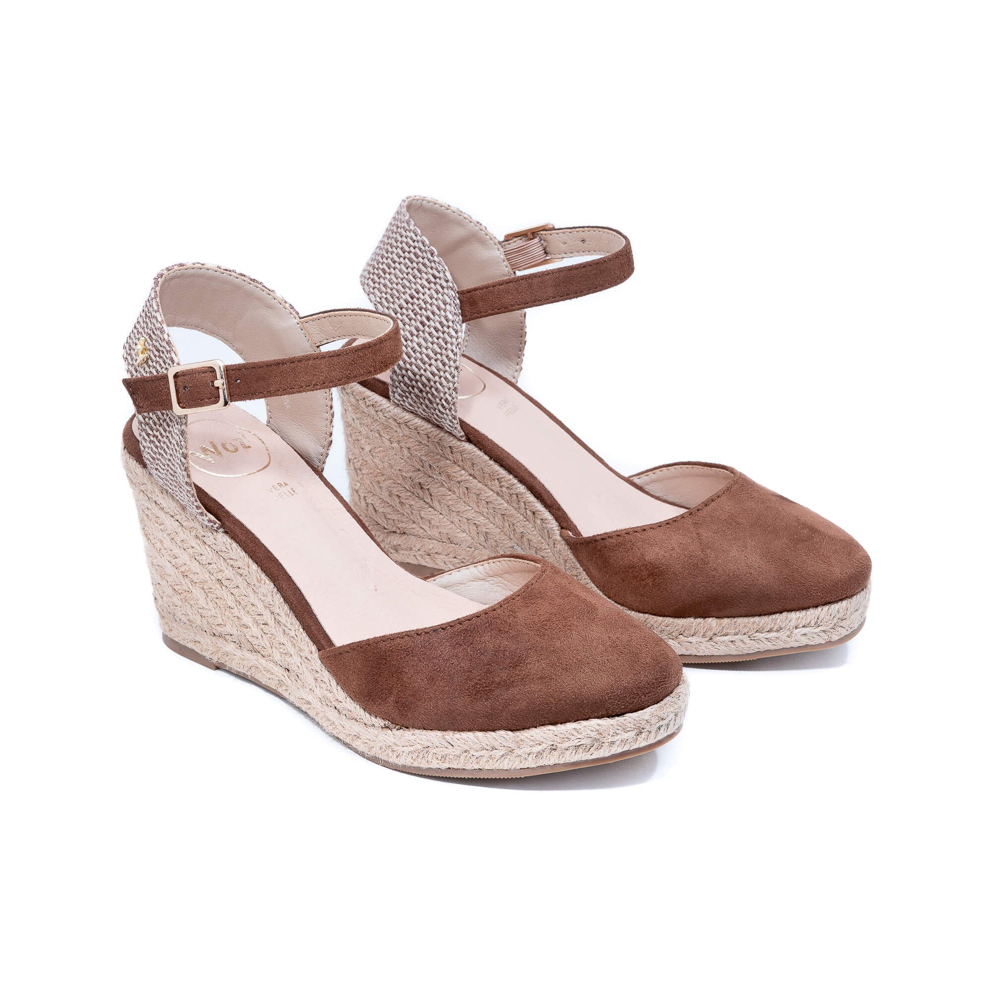 Crafted from luxurious suede material, the Ashley Tobacco Espadrilles feature a classic design, a buckle fastening ankle strap, and a soft padded footbed for added comfort. With a heel height of 7 cm and a natural beige braided rope covering, these stylish espadrilles are expertly designed in Italy.