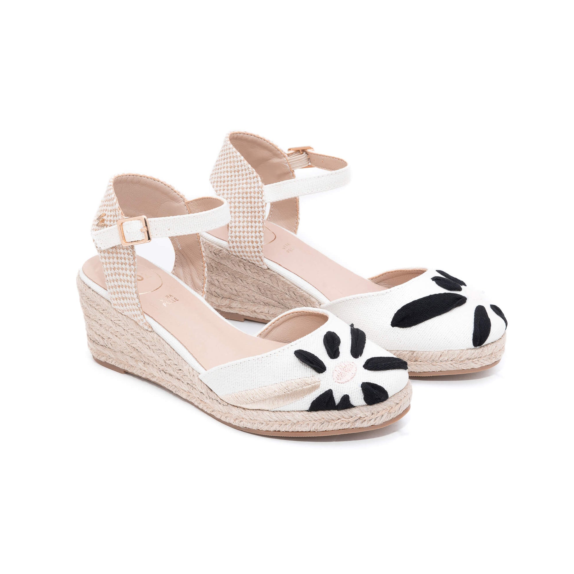 Expertly designed in Italy, these belle white espadrilles feature a mid-height wedge heel and a secure buckle fastening ankle strap. A soft padded footbed ensures comfort, while the heel is elegantly wrapped in natural beige braided rope for a touch of sophistication. With a 5 cm heel height, these espadrilles are the perfect blend of style and practicality.
