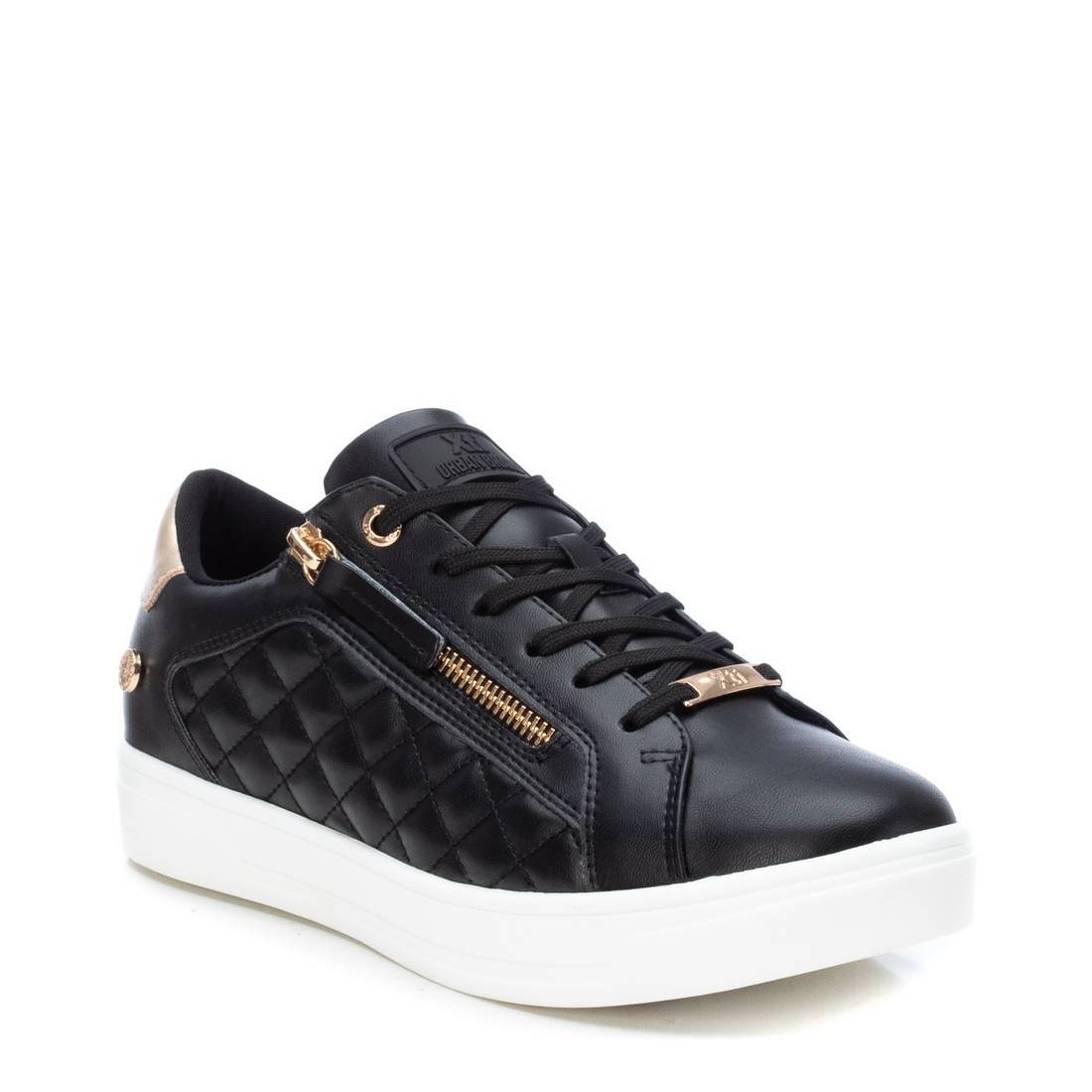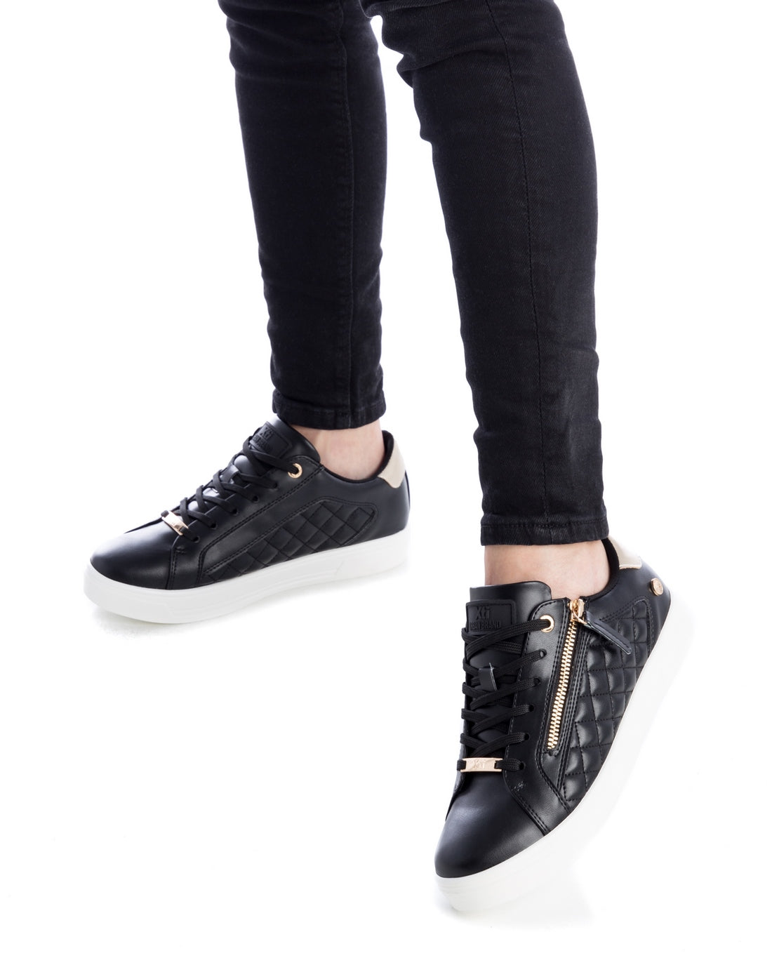 Expertly crafted from synthetic leather, these low top Almeria Black Sneakers feature quilted detailing on the side and an adjustable lace design for ultimate support. The functional side zipper ensures ease of wear, and the non-slip rubber sole provides stability. These sneakers have also been certified vegan by PETA.