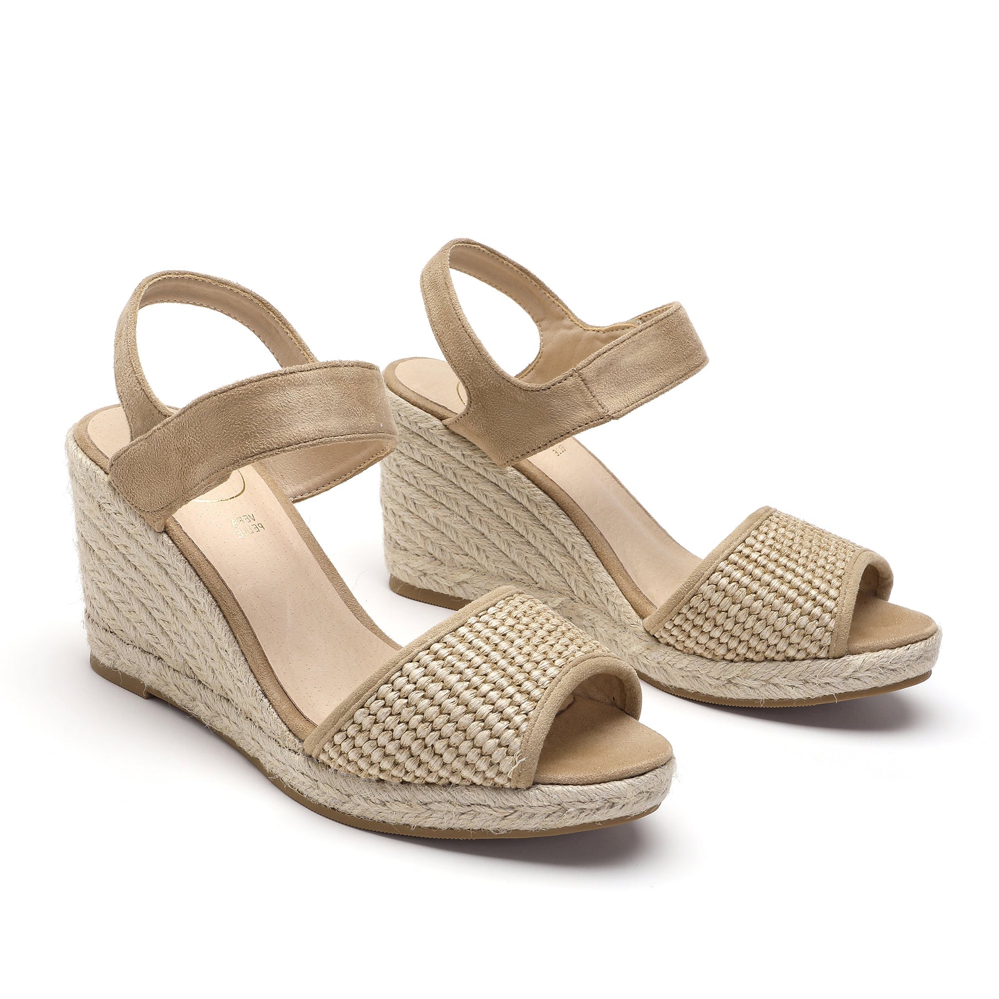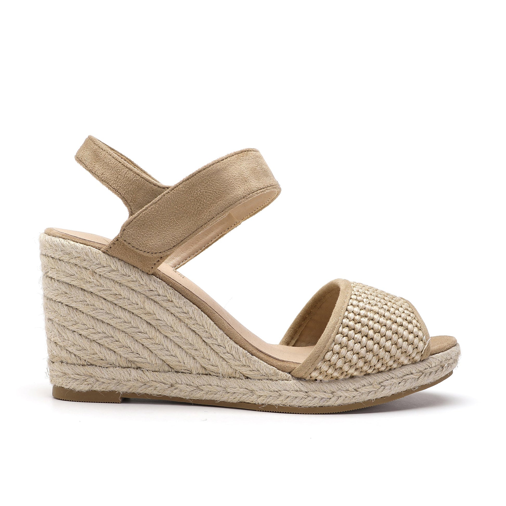 This espadrille wedge is crafted from premium suede and raffia upper features a cushioned footbed and a 5 cm heel height. Designed in Italy, this fashionable footwear guarantees unbeatable design and craftsmanship. It also includes a Velcro adjustable ankle strap for added convenience.