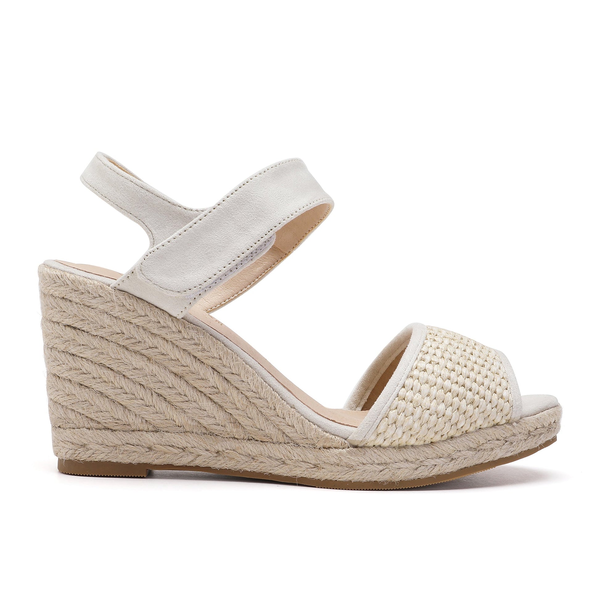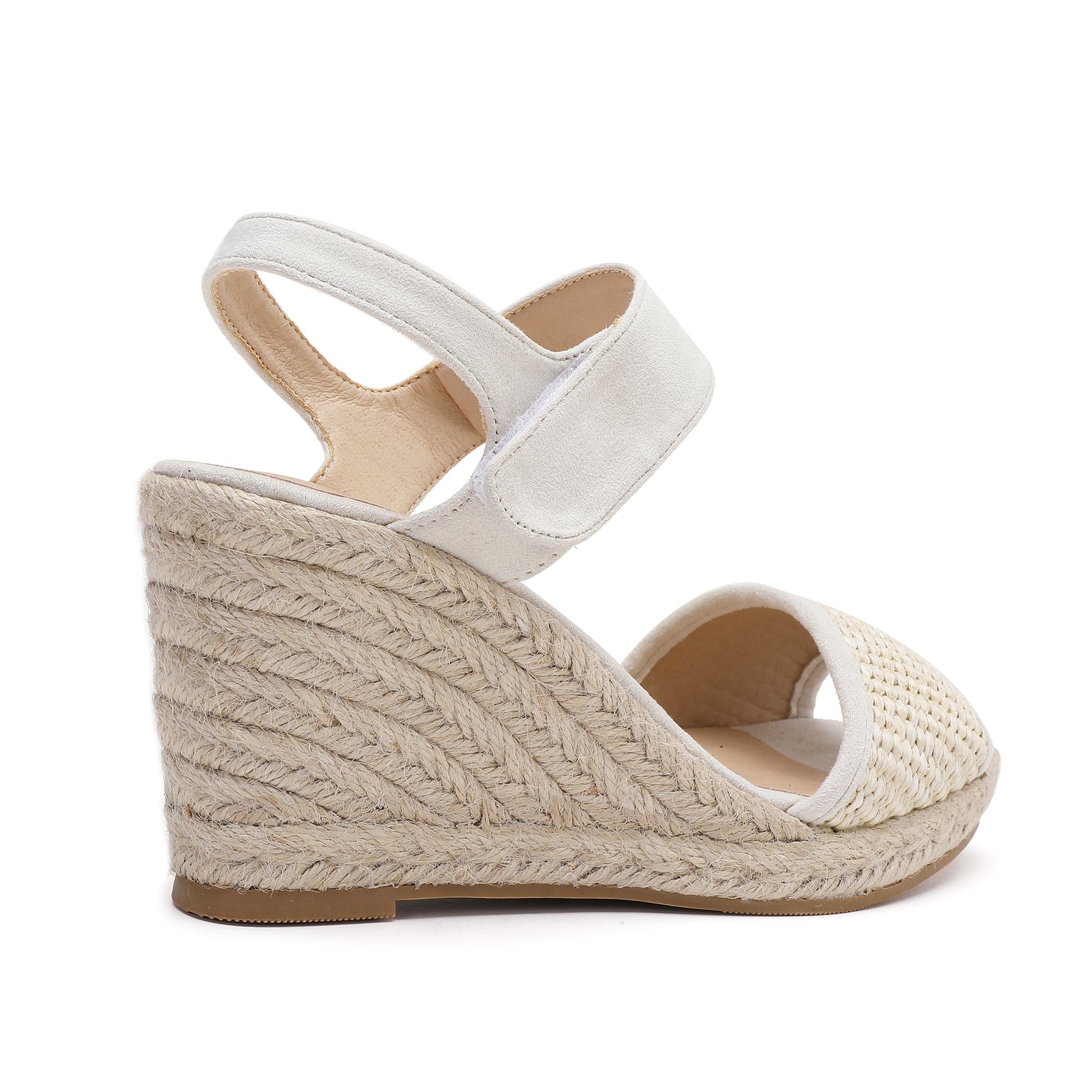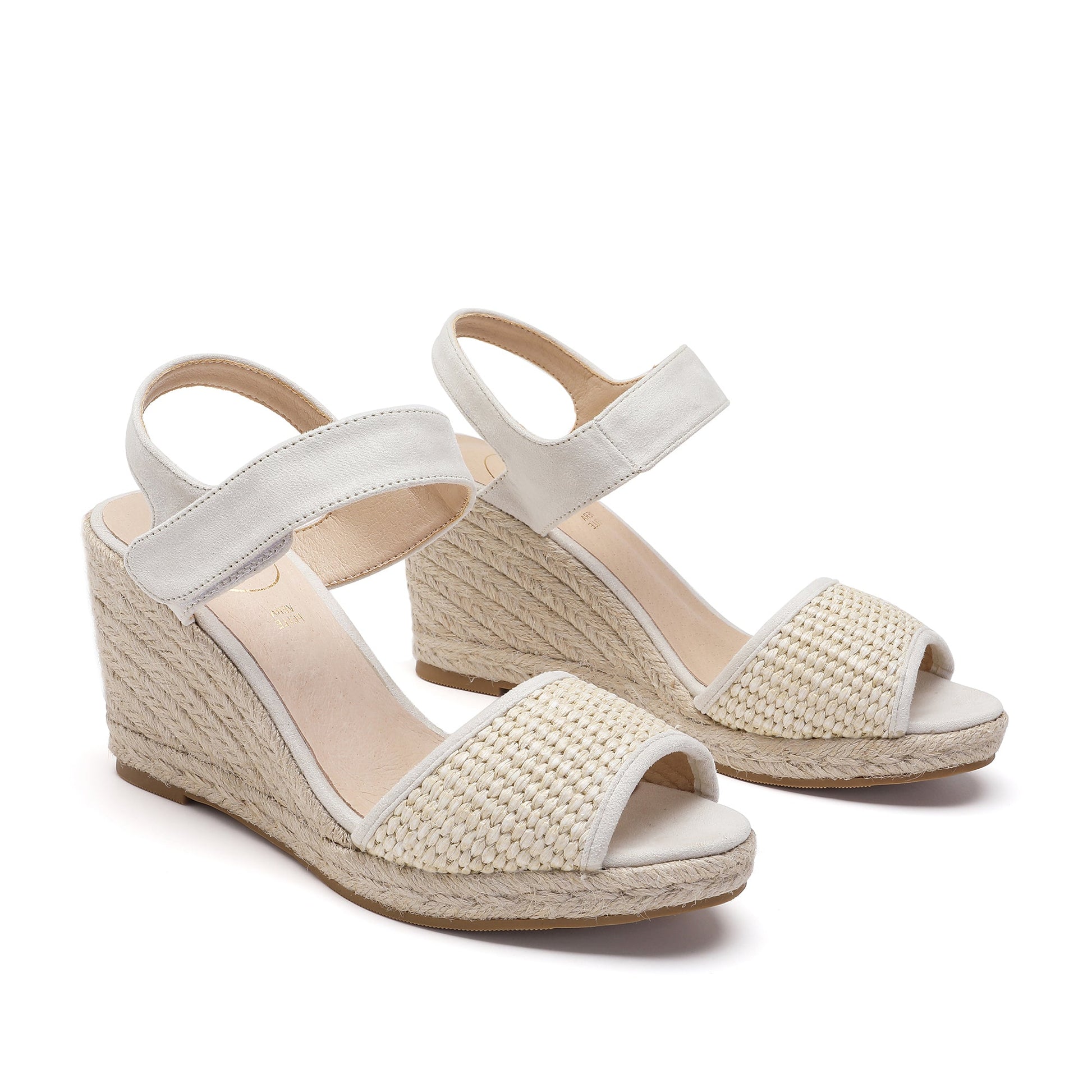 Experience ultimate comfort and style with our professional espadrille wedge, expertly crafted from suede and raffia. Designed in Italy with a cushioned footbed and a secure ankle velcro adjustable strap, it boasts a 5 cm heel for the perfect combination of fashion and functionality.