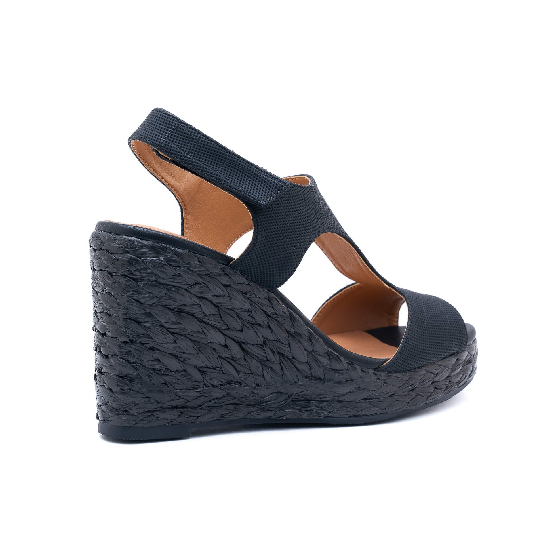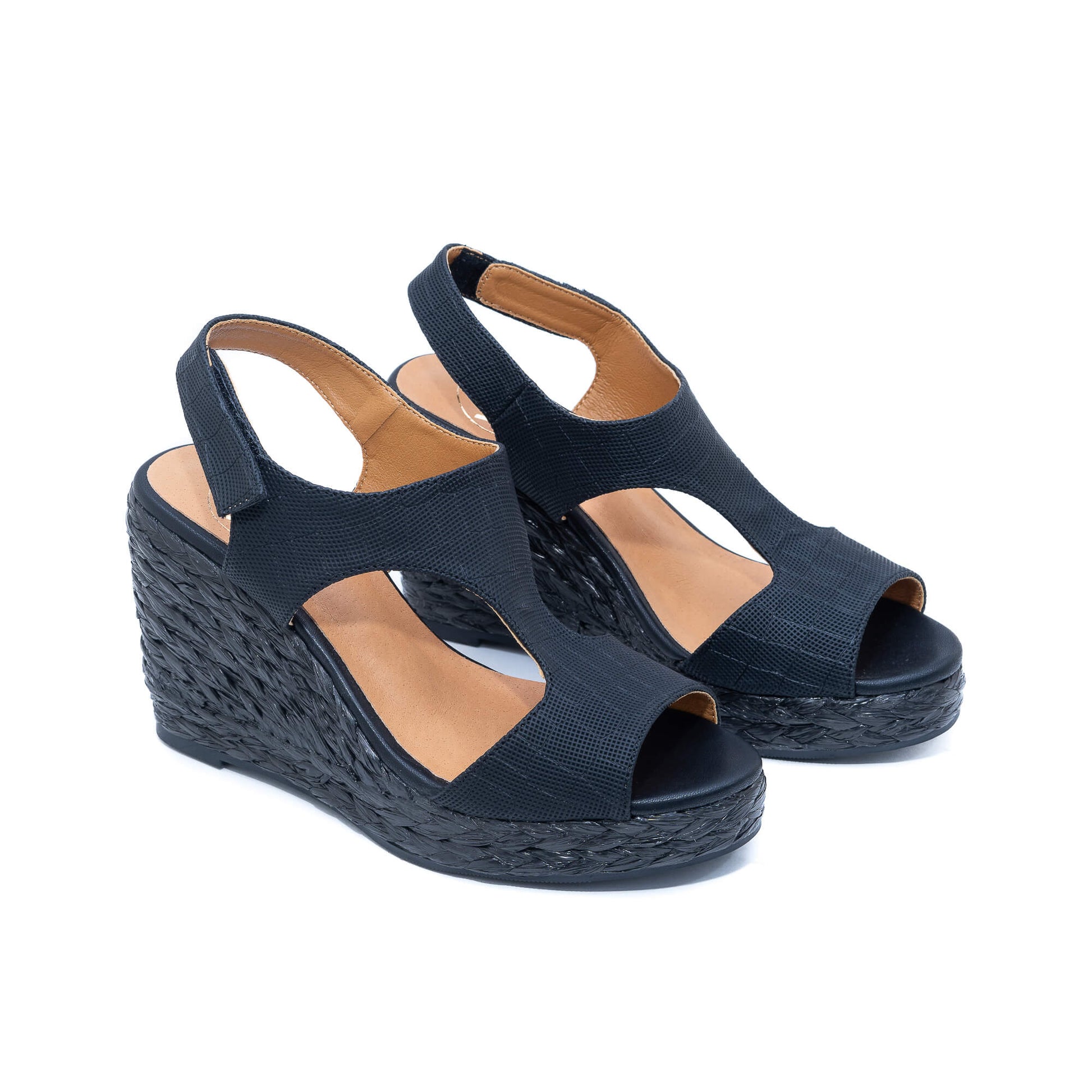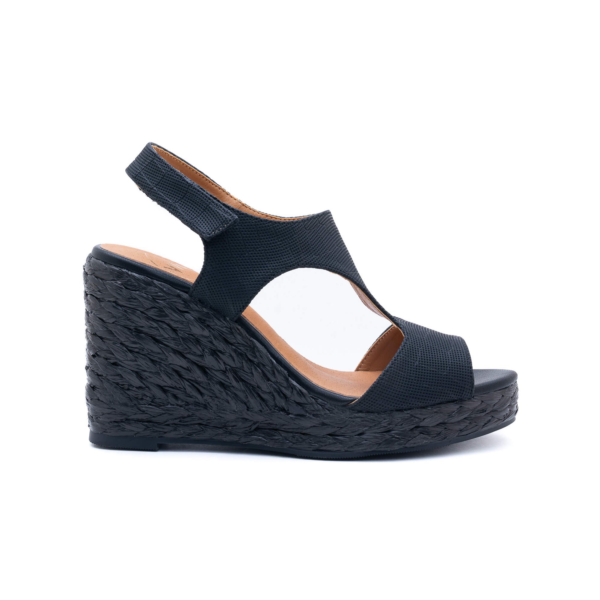 These sleek sandals are crafted from high-quality fabric and feature an adjustable ankle strap for a comfortable fit. The soft padded footbed ensures all-day comfort, while the elegant heel, covered with natural black braided raffia, measures 9 cm in height. Expertly designed in Italy, these espadrilles are a must-have for any fashion-forward individual.