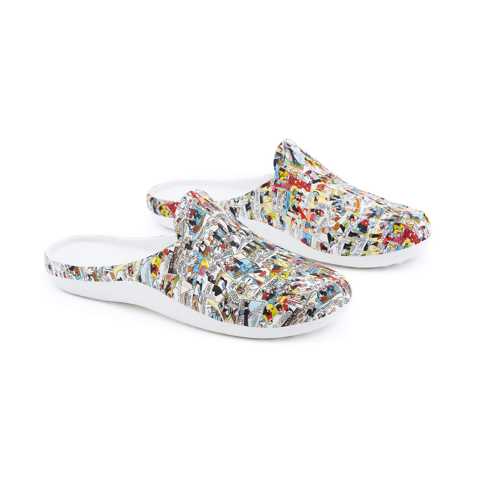The Dandy Popeye Comix Print Slip Ons are a must-have for everyday wear. They feature a sleek black design and boast a comfortable fit with an EVA insole and outsole. Say goodbye to odor with their anti-odor properties. These slip ons are also easy to clean and were expertly designed in Italy.