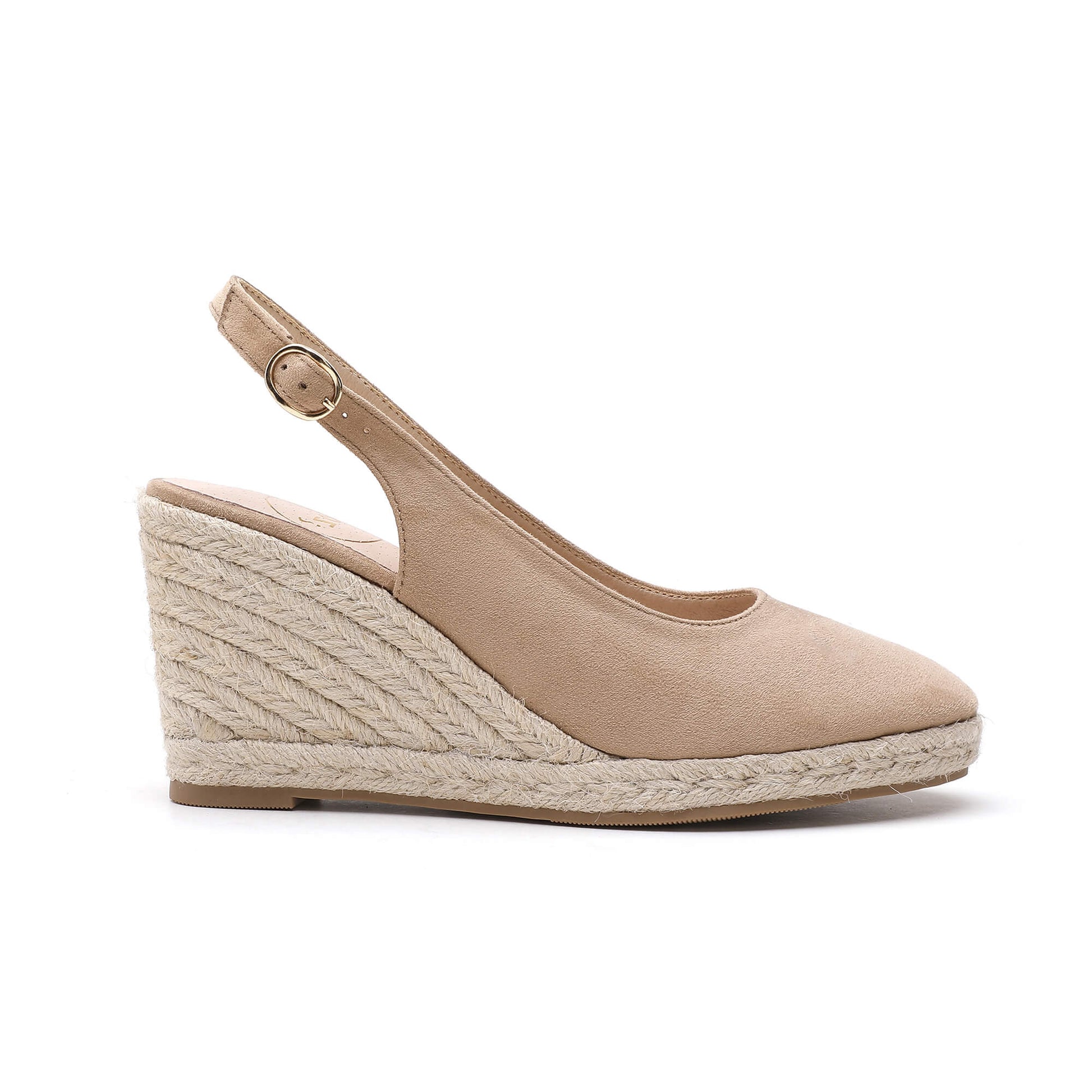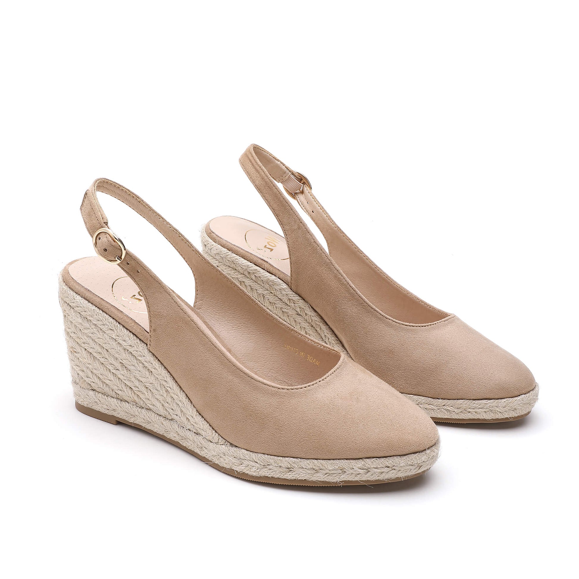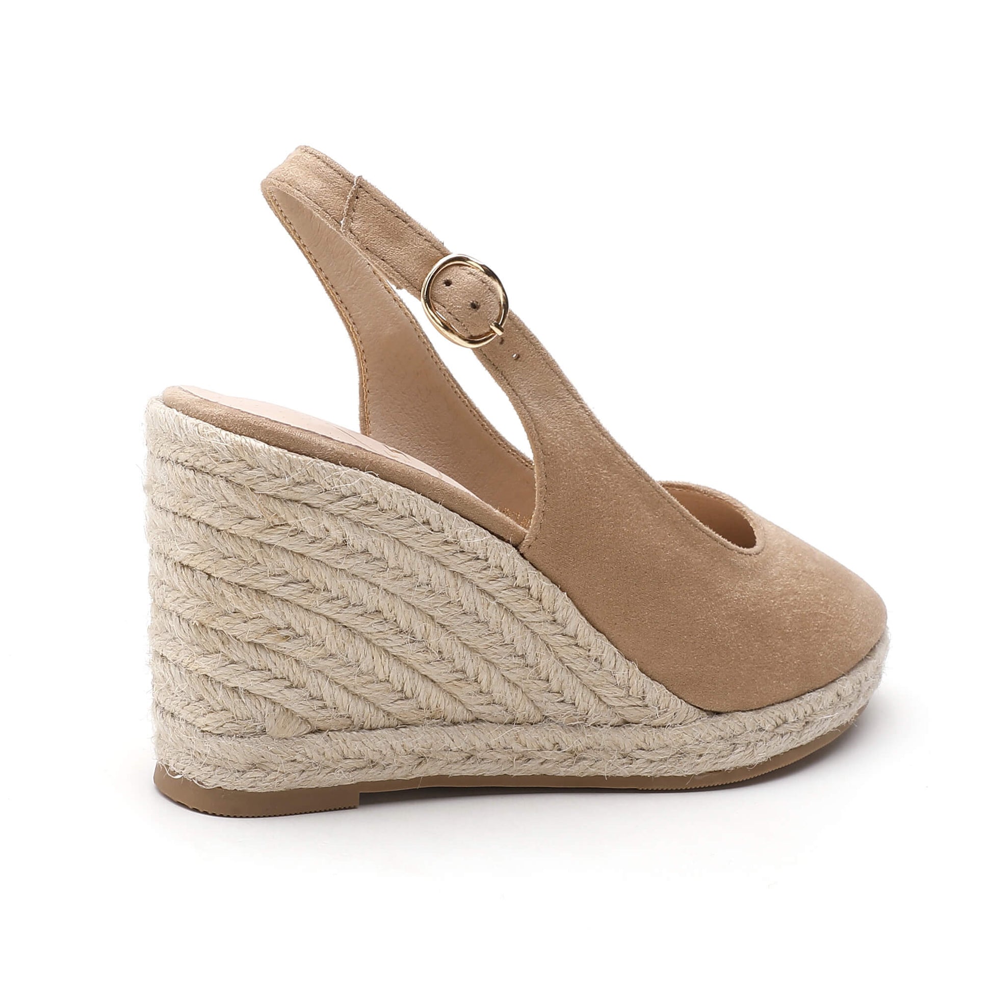 Discover a blend of elegance and functionality with our taupe suede espadrilles from Italy. Stay comfortable with the soft padded footbed and add flair to your look with the beige braided jute heel, standing at a height of 7 cm.