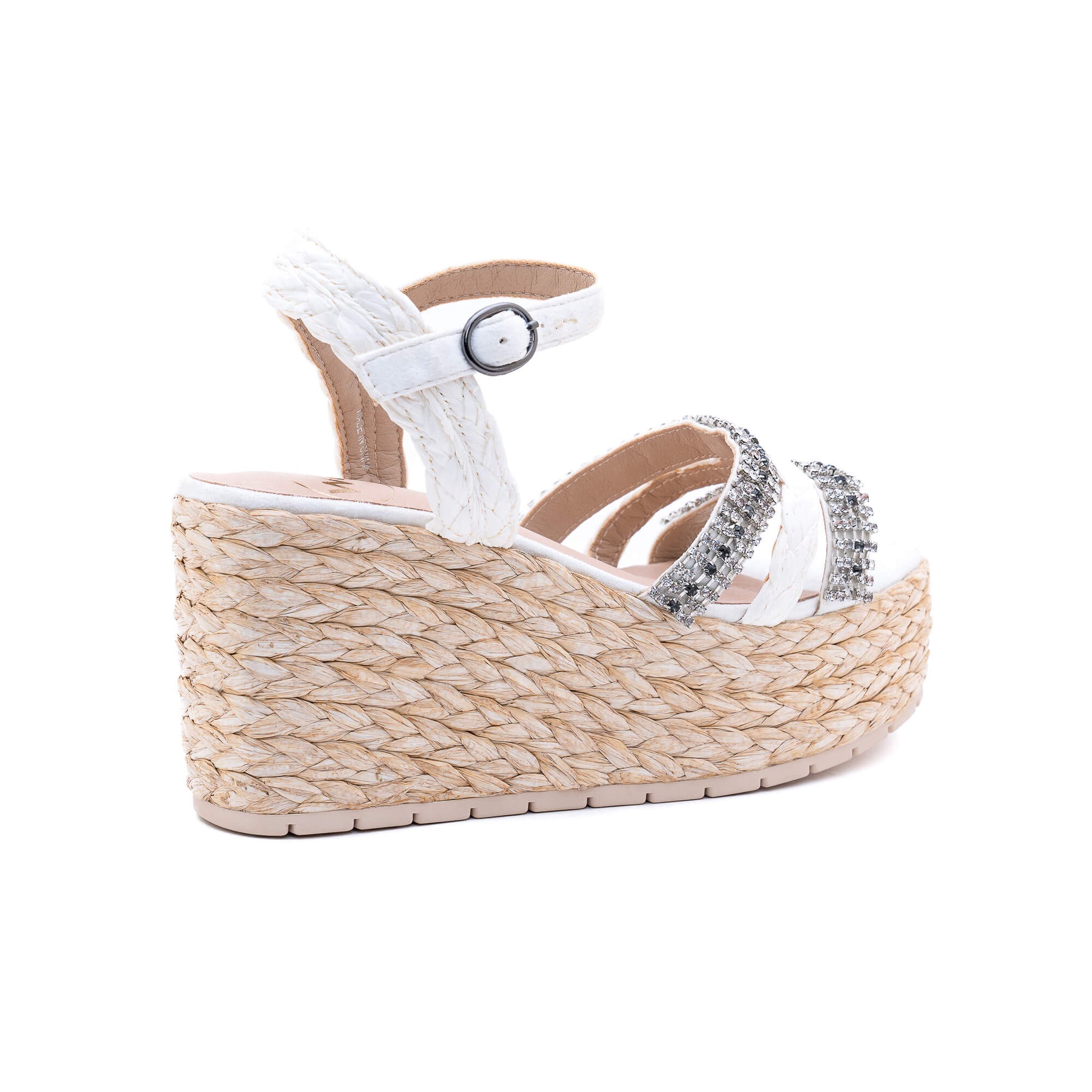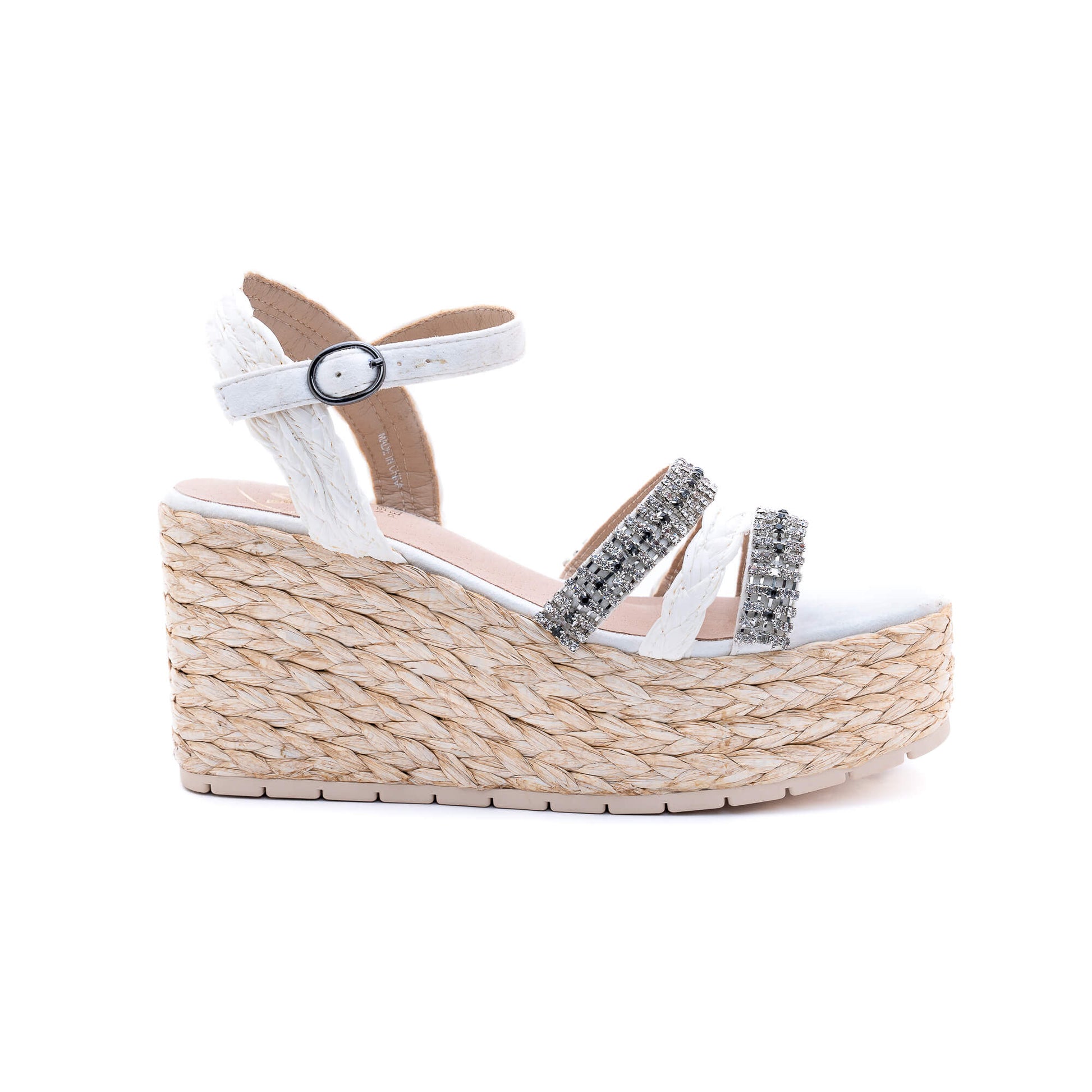 These sophisticated sandals feature a construction of raffia and are adorned with silver stones. The soft padded footbed offers comfort and the heel is covered with braided raffia. The ankle strap is adjustable with a metal buckle and the heel has a height of 10 cm. Designed in Italy.