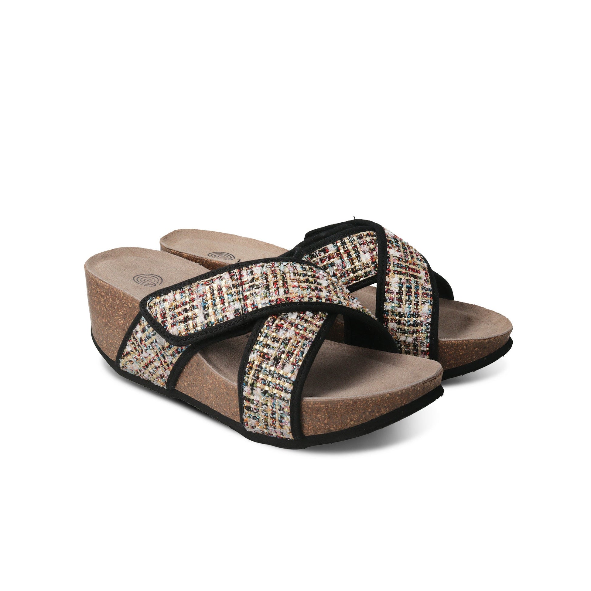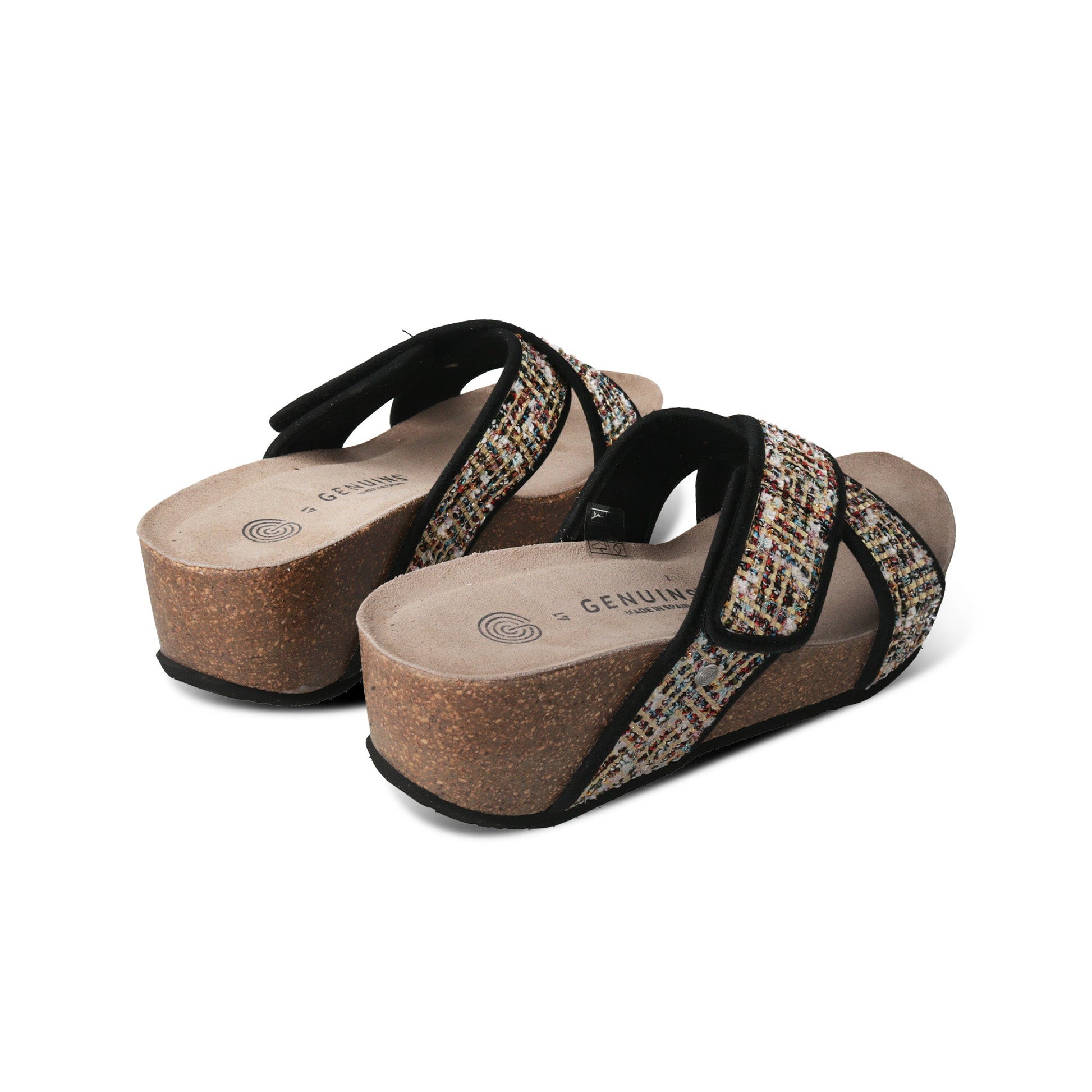 Improving stability and ensuring long-lasting quality, Benicasim's Black Sandal boasts a 7cm anatomical cork and Eva outsole, expertly crafted in Spain. Its velcro-adjustable cross over straps add style and comfort to this must-have shoe.