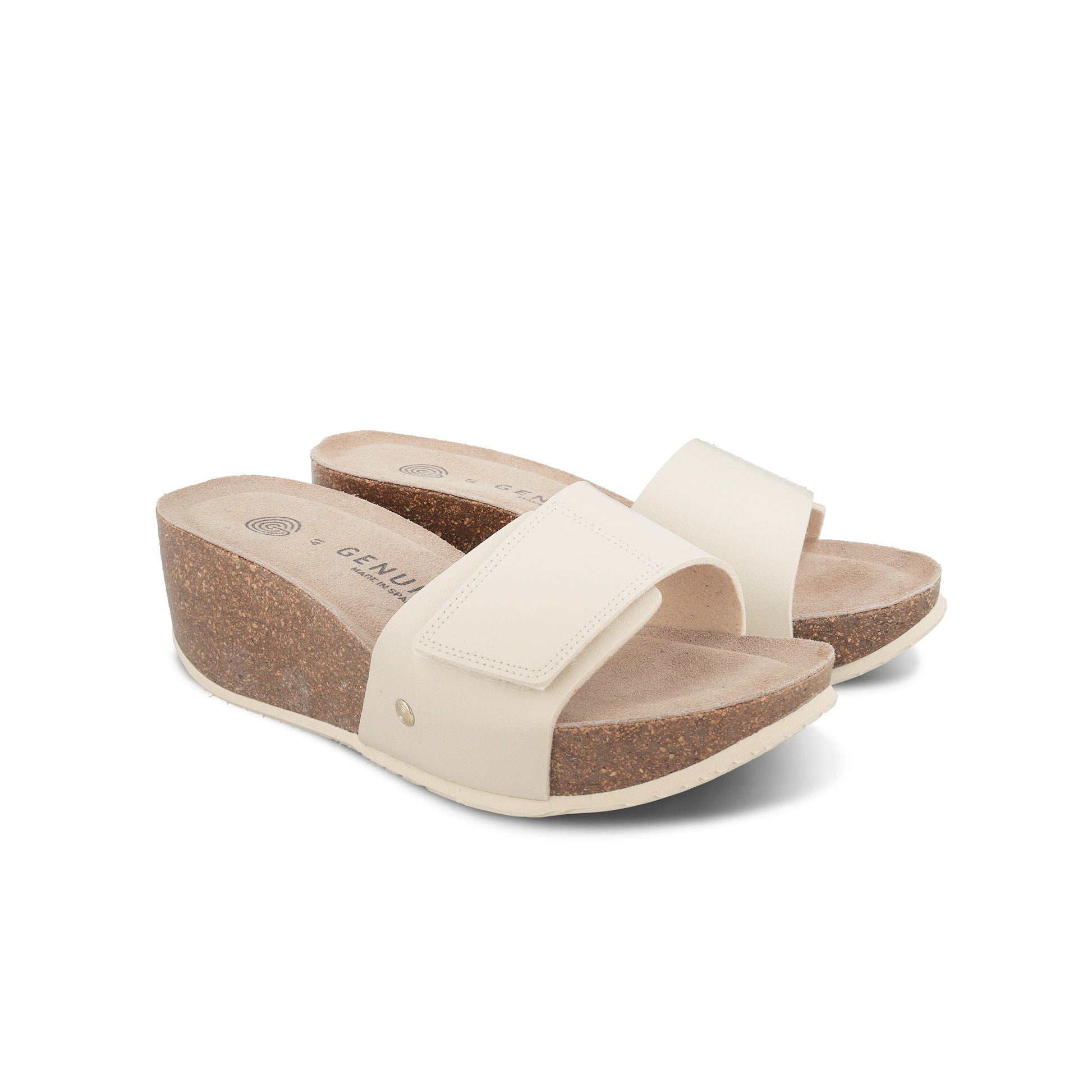 Enjoy the luxury of Elche's Beige Sandal, crafted from premium leather with a Velcro adjustable fit. The anatomically shaped 7cm cork midsole adds superior cushioning that's lightweight and shock absorbing, and the Eva outsole provides reliable stability and traction. Made in Spain, this sandal is a perfect combination of style and comfort.