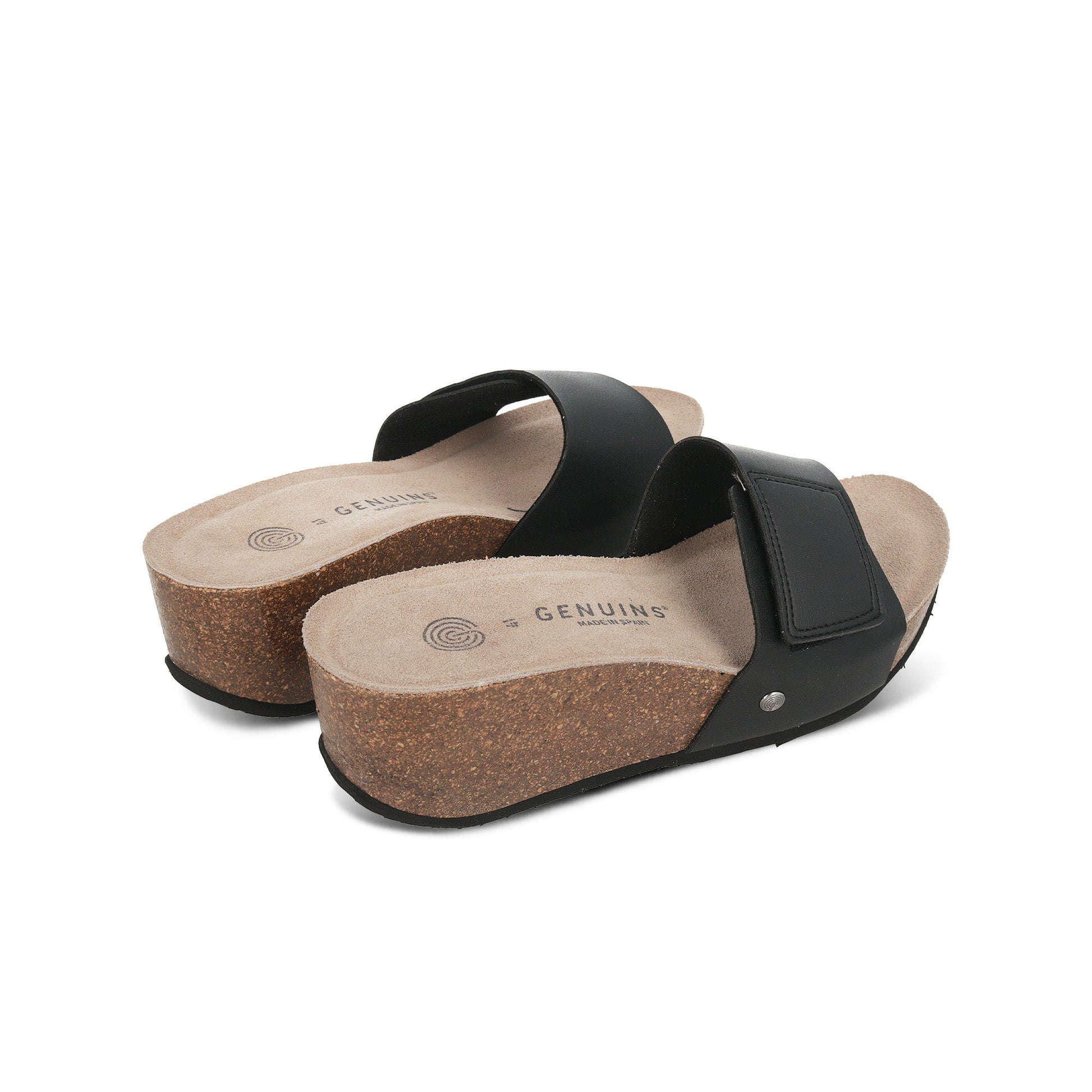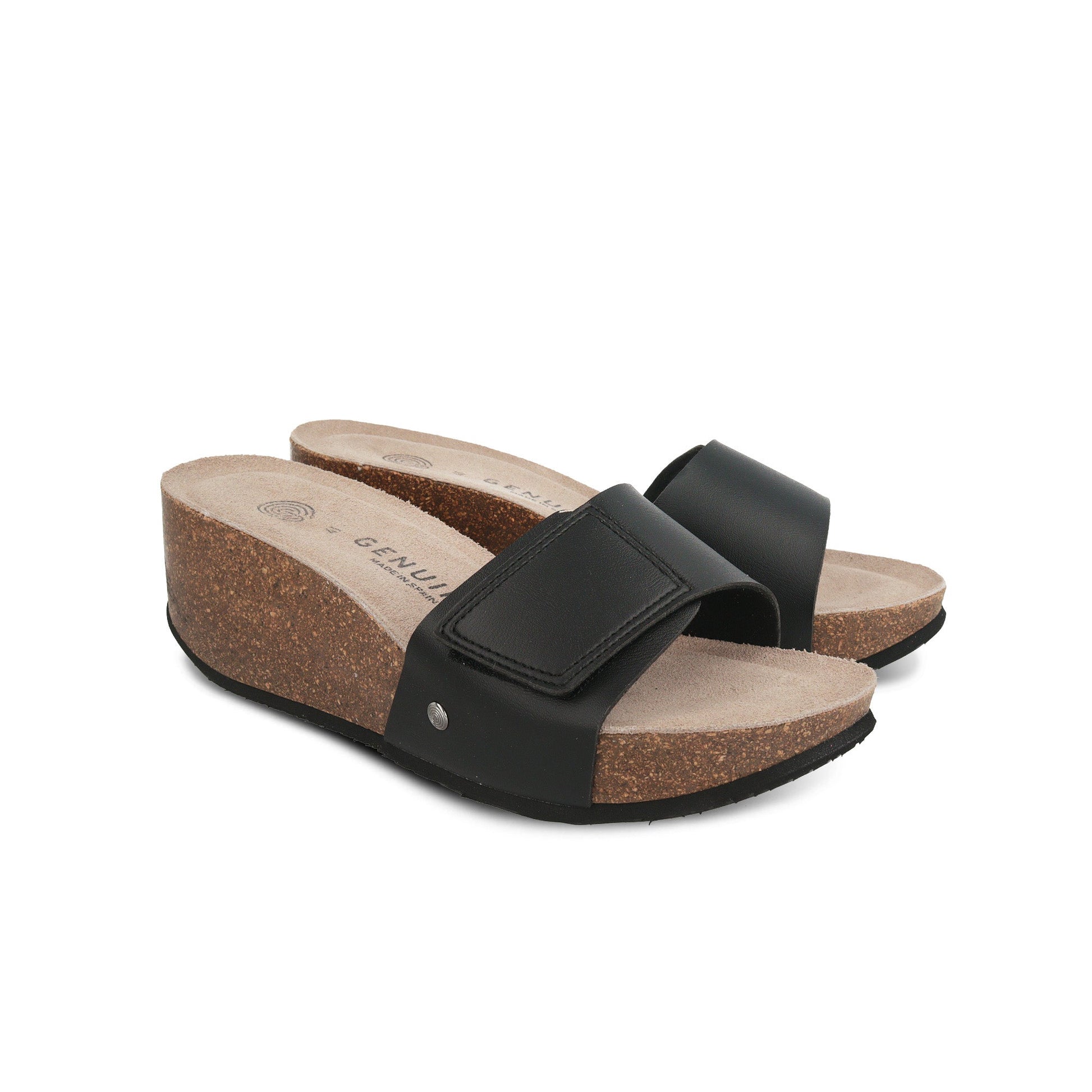 Enjoy the luxury of Elche's Black Sandal, crafted from premium leather with a Velcro adjustable fit. The anatomically shaped 7cm cork midsole adds superior cushioning that's lightweight and shock absorbing, and the Eva outsole provides reliable stability and traction. Made in Spain, this sandal is a perfect combination of style and comfort.