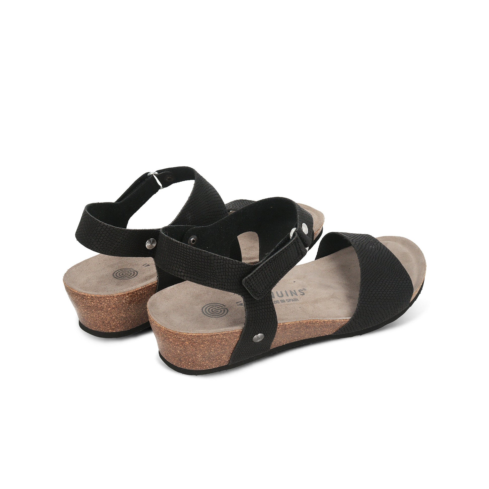 Expertly handmade in Spain, the Teo Black Sandals feature premium leather construction for an authentic and enduring aesthetic. The velcro adjustable ankle strap ensures a secure fit as the Eva outsole delivers lightweight and flexible comfort. With a 3 cm heel height, these sandals add a touch of sophistication to any ensemble.
