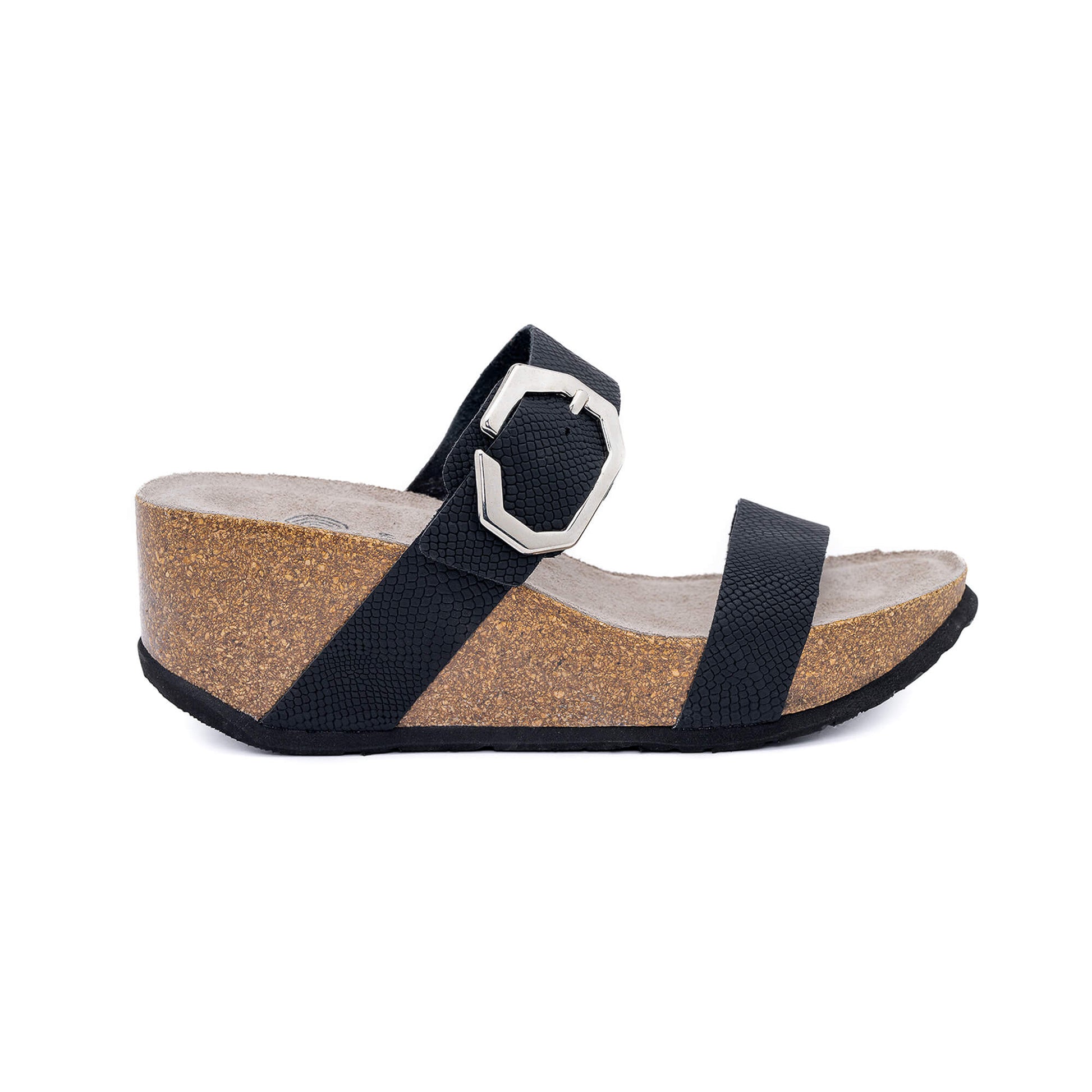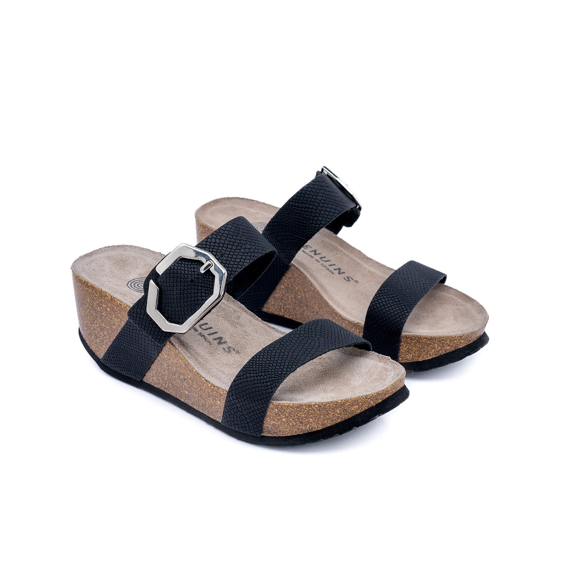 Experience the ultimate comfort with the Mont Sandal. Its synthetic material wedge is 7cm tall for a height boost, and it features an anatomical cork plant for a cushioned, soft feel. The adjustable buckle strap ensures a perfect fit, and an EVA outsole provides superior traction. Expertly crafted in Spain with luxurious materials.