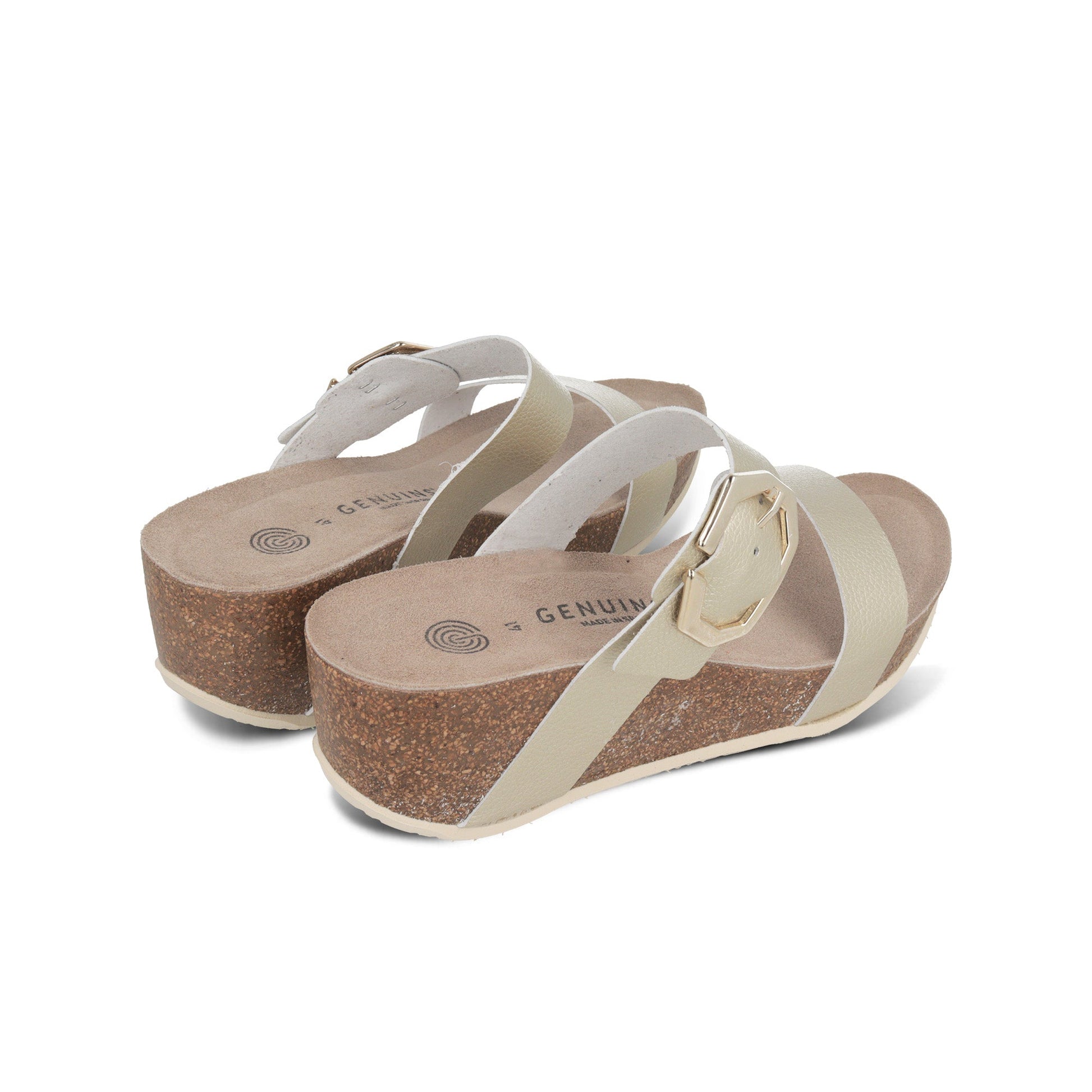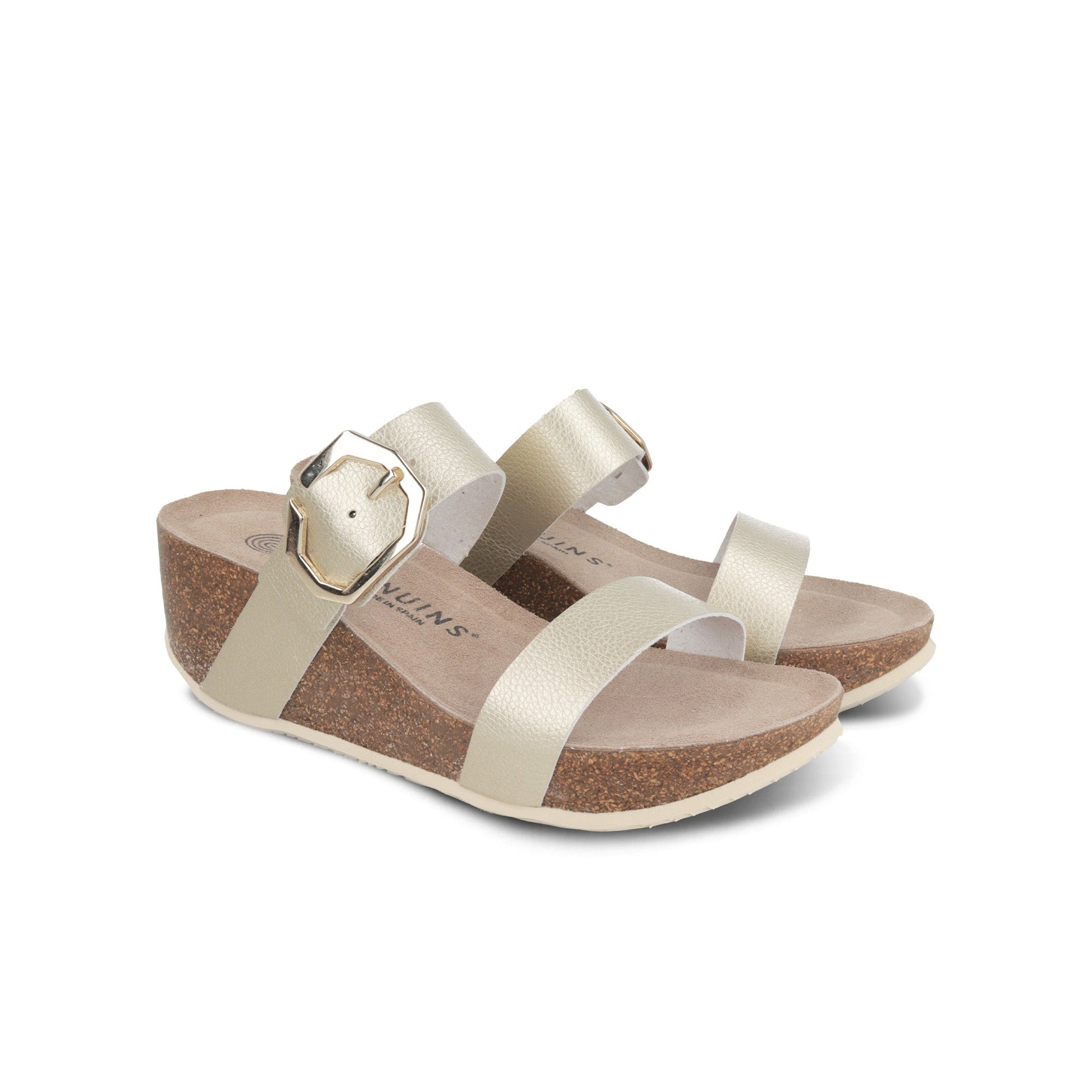 Experience the ultimate comfort with the Mont Sandal. Its synthetic material wedge is 7cm tall for a height boost, and it features an anatomical cork plant for a cushioned, soft feel. The adjustable buckle strap ensures a perfect fit, and an EVA outsole provides superior traction. Expertly crafted in Spain with luxurious materials.