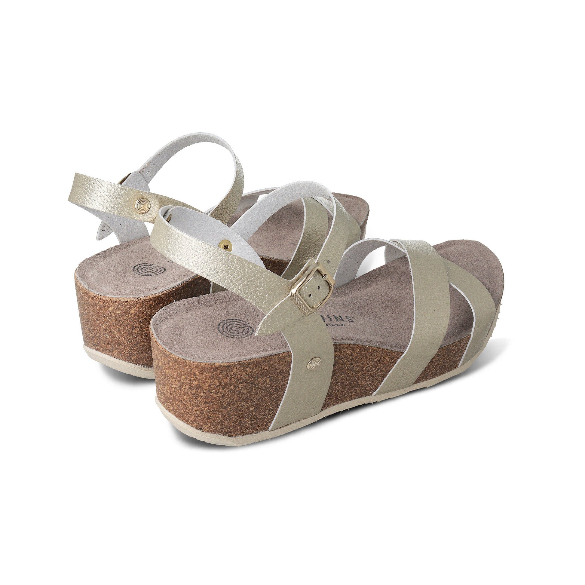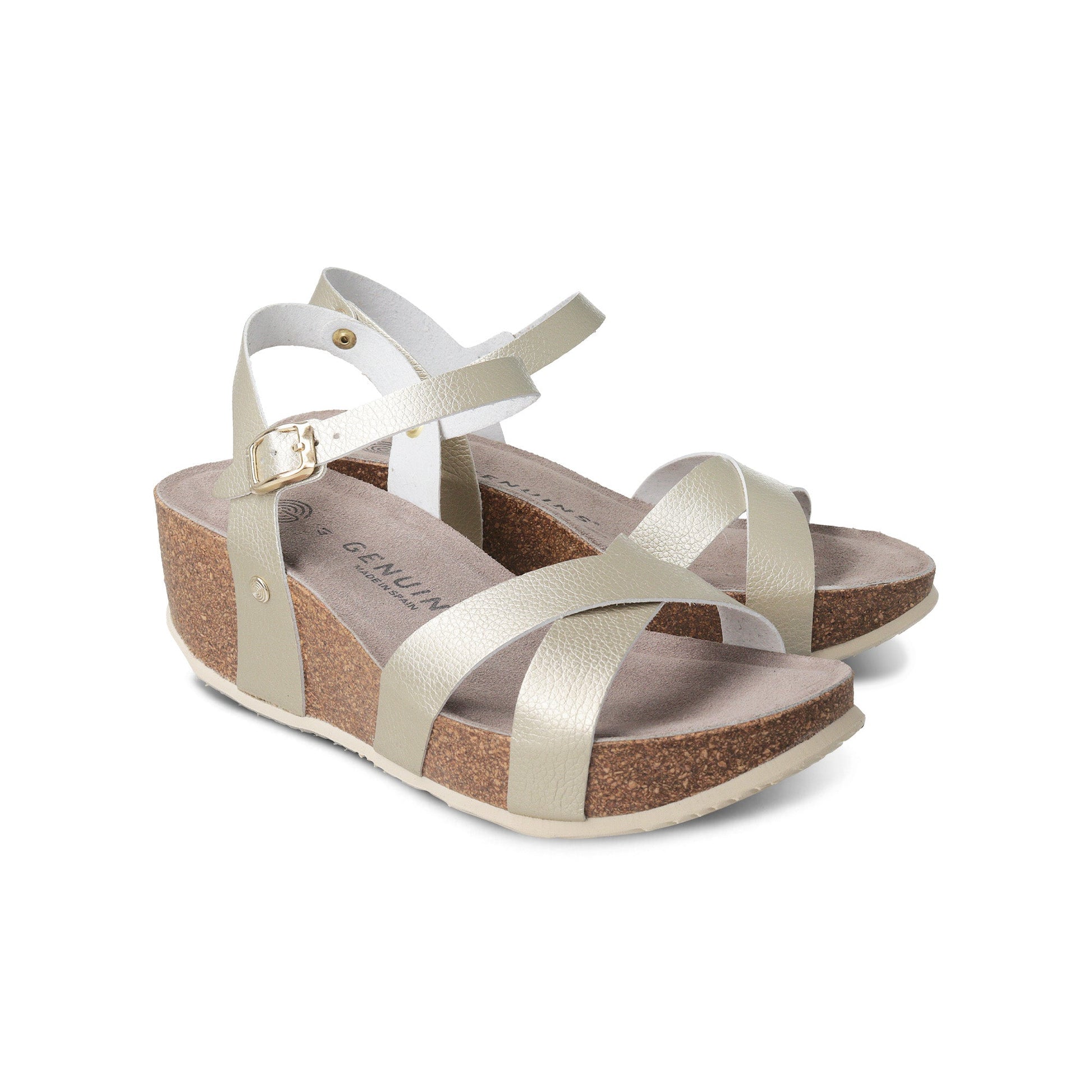 Leather uppers provide a secure fit for these sandals, fastened with a metal buckle around the ankle and in two crossed straps at the front. A 7 cm wedge heel at the back, anatomical cork footbed and EVA outsole combine for all-day comfort. Handcrafted in Spain.