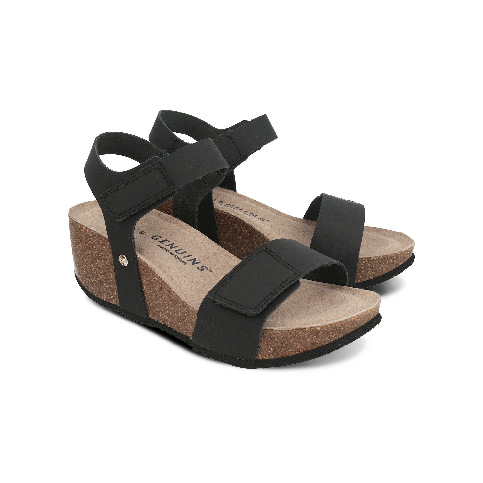 The Bilbao Black Sandal is handcrafted with quality materials and made in Spain. It features an adjustable velcro front and ankle strap for a secure fit and 7 cm of anatomical cork for superior cushioning. The Eva outsole provides lightweight traction and the leather footbed provides lasting comfort.