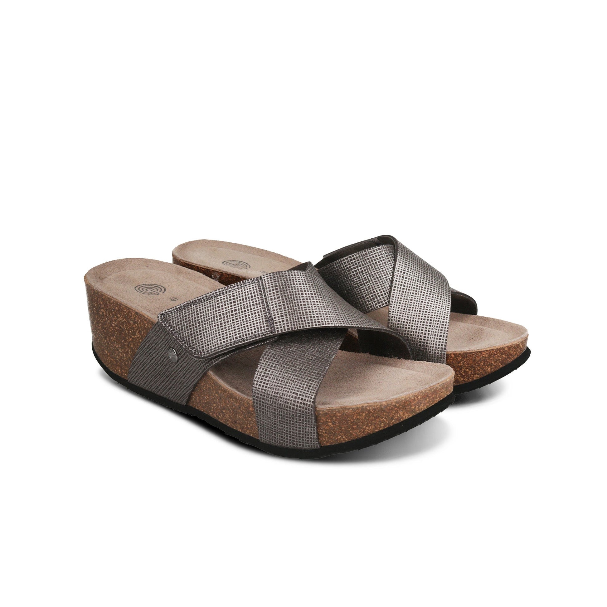 Featuring stylish cross over straps that adjust easily via velcro, Benicasim's Anthracite Sandal takes comfort to the next level. Its 7 cm anatomical cork and Eva outsole are designed to increase stability, while the sandal's Spanish craftsmanship ensures its reliable, long-lasting quality.