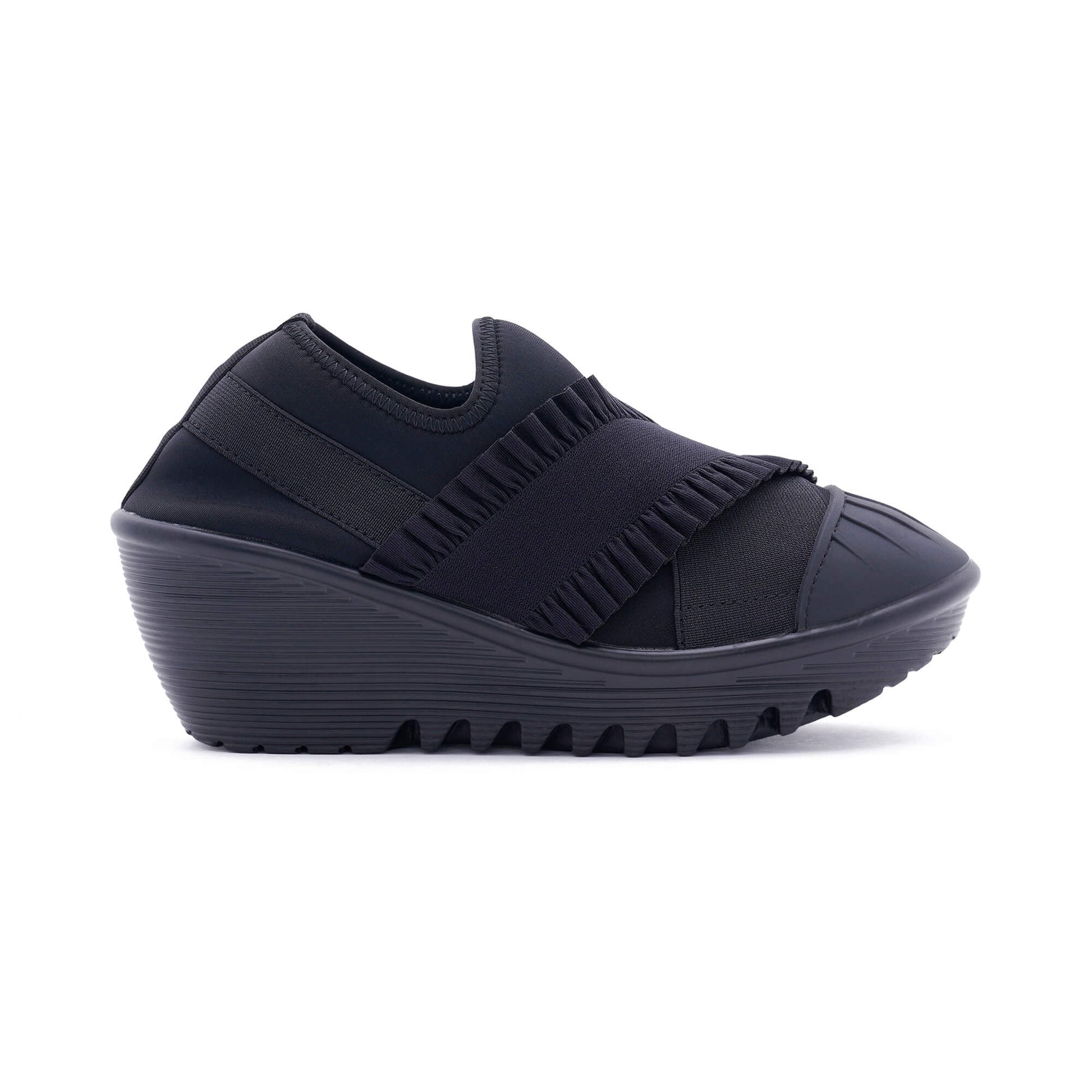 These Geneva wedge heels are expertly crafted from black lycra fabric and feature upper elasticated cross over straps. With a soft padded footbed and a textured outsole for enhanced grip, these heels boast a 7 cm heel height. Expertly designed in Italy.