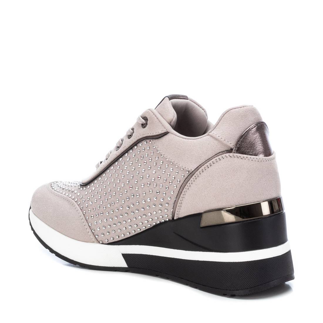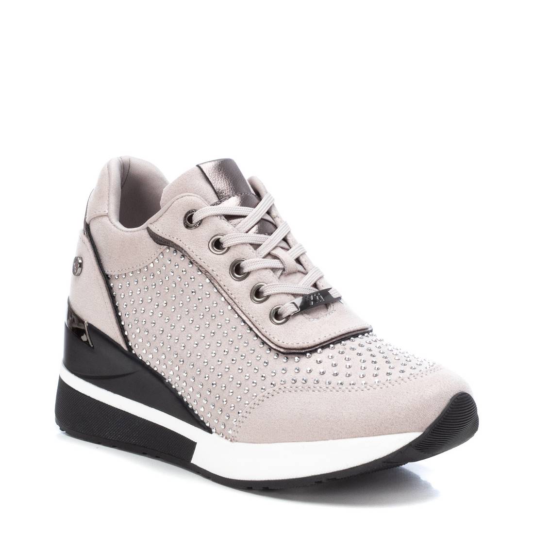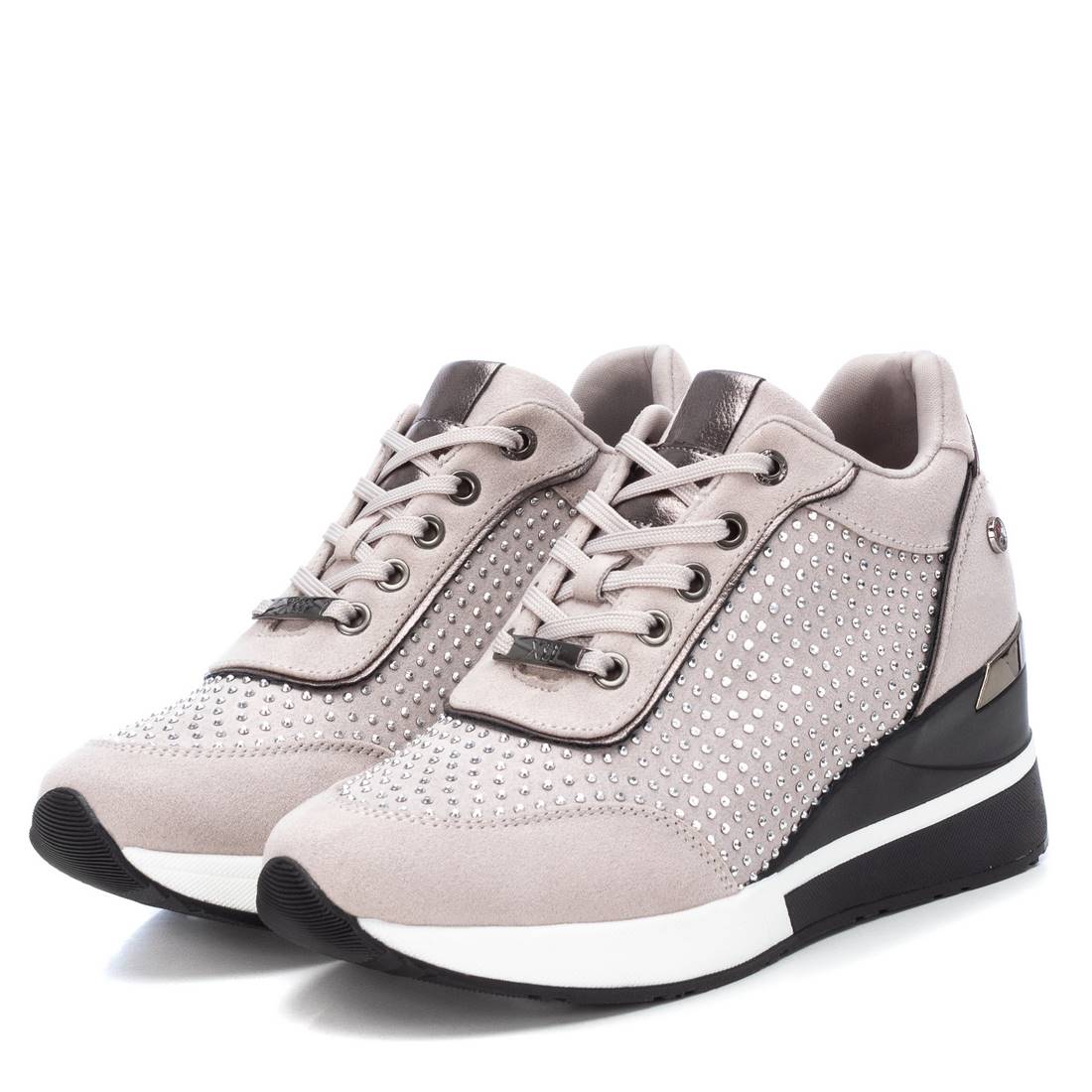 Certified vegan Xti brand sneakers made with textile material and fancy stone embellishments. Featuring a non-slip rubber sole and 7 cm wedge heel. This model has been endorsed by PETA for its animal-friendly production.