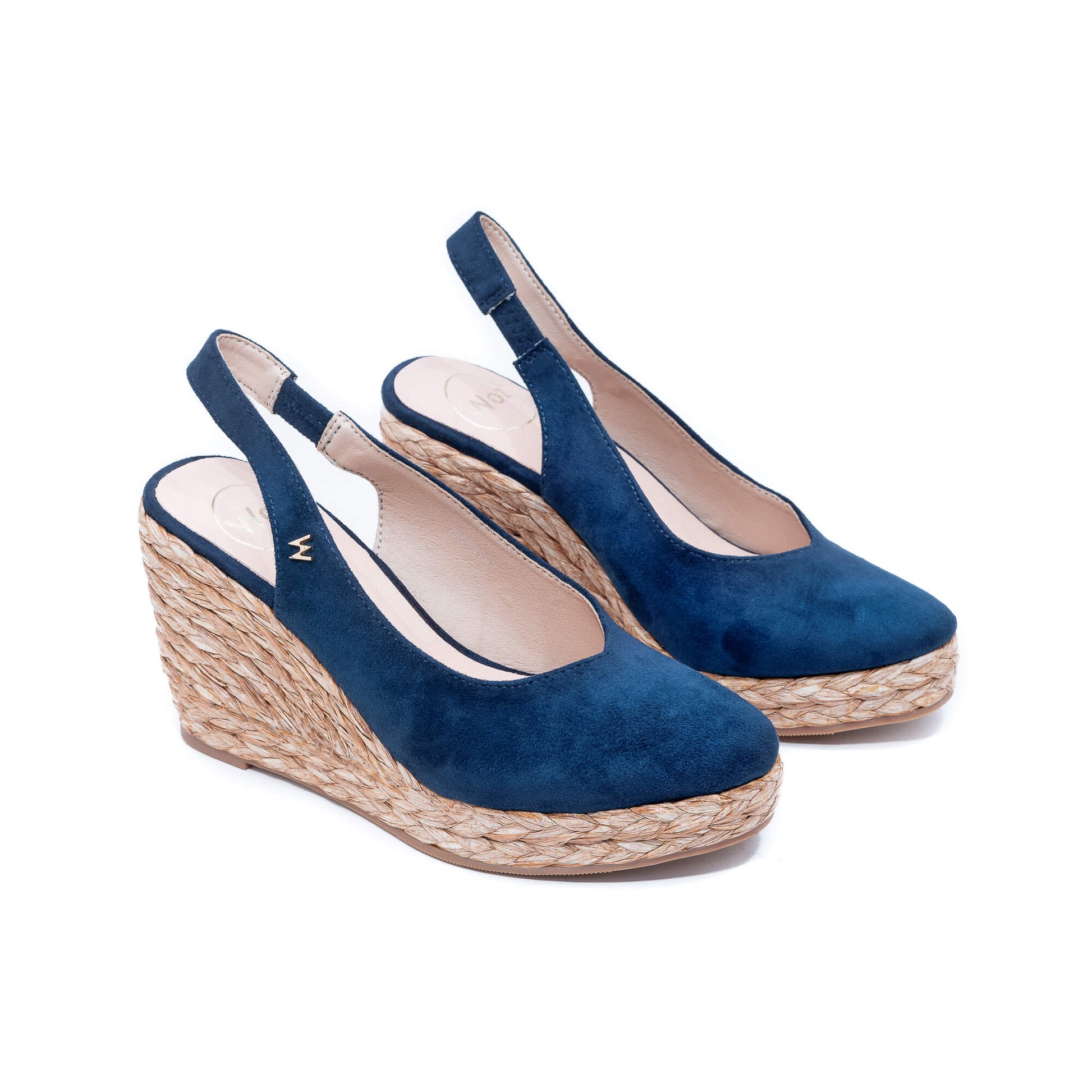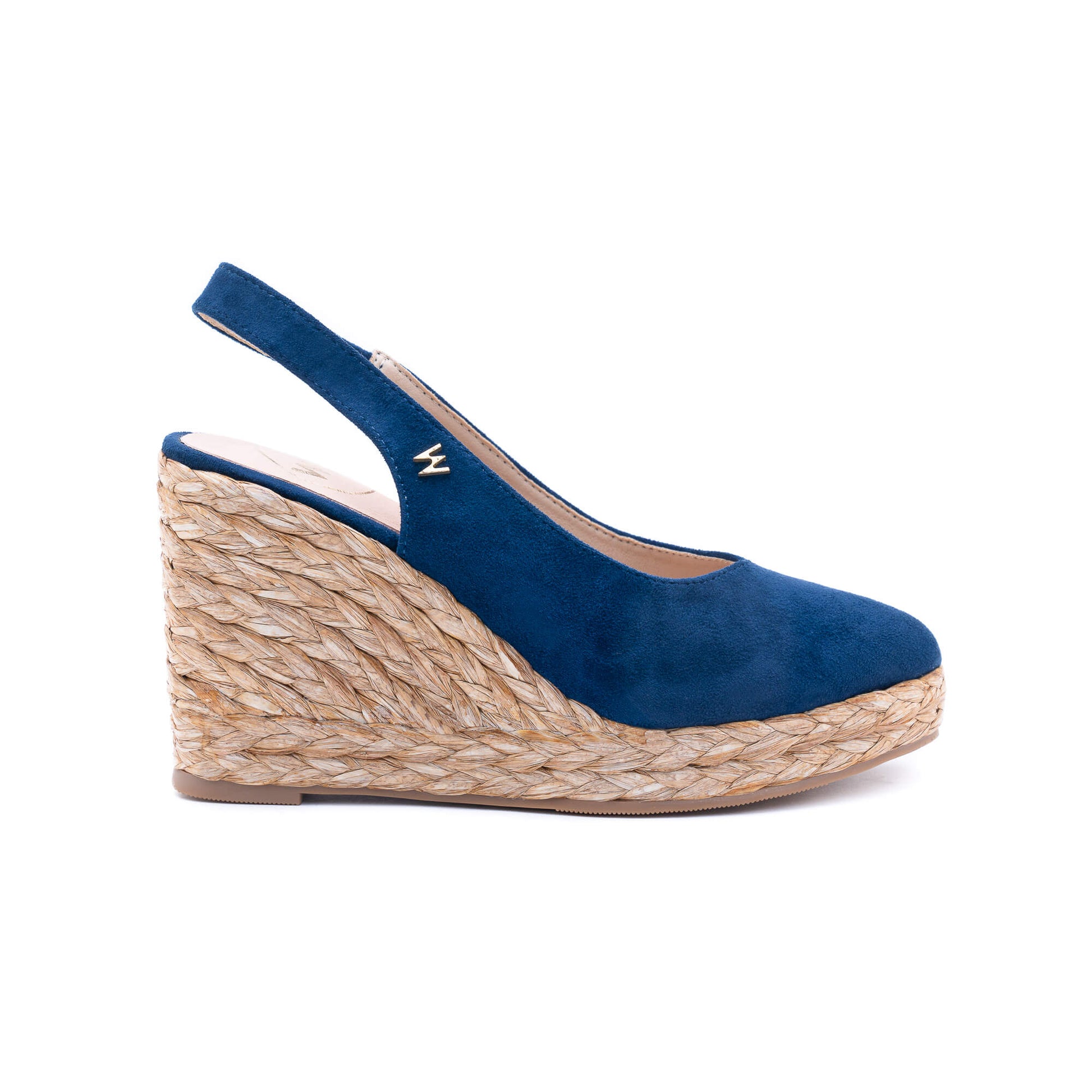 These Jenny Blue Espadrilles feature a chic suede fabric and a padded footbed for added comfort. The heel is beautifully accented with beige braided raffia and measures 10 cm for a stylish touch. Designed in Italy with impeccable attention to detail.