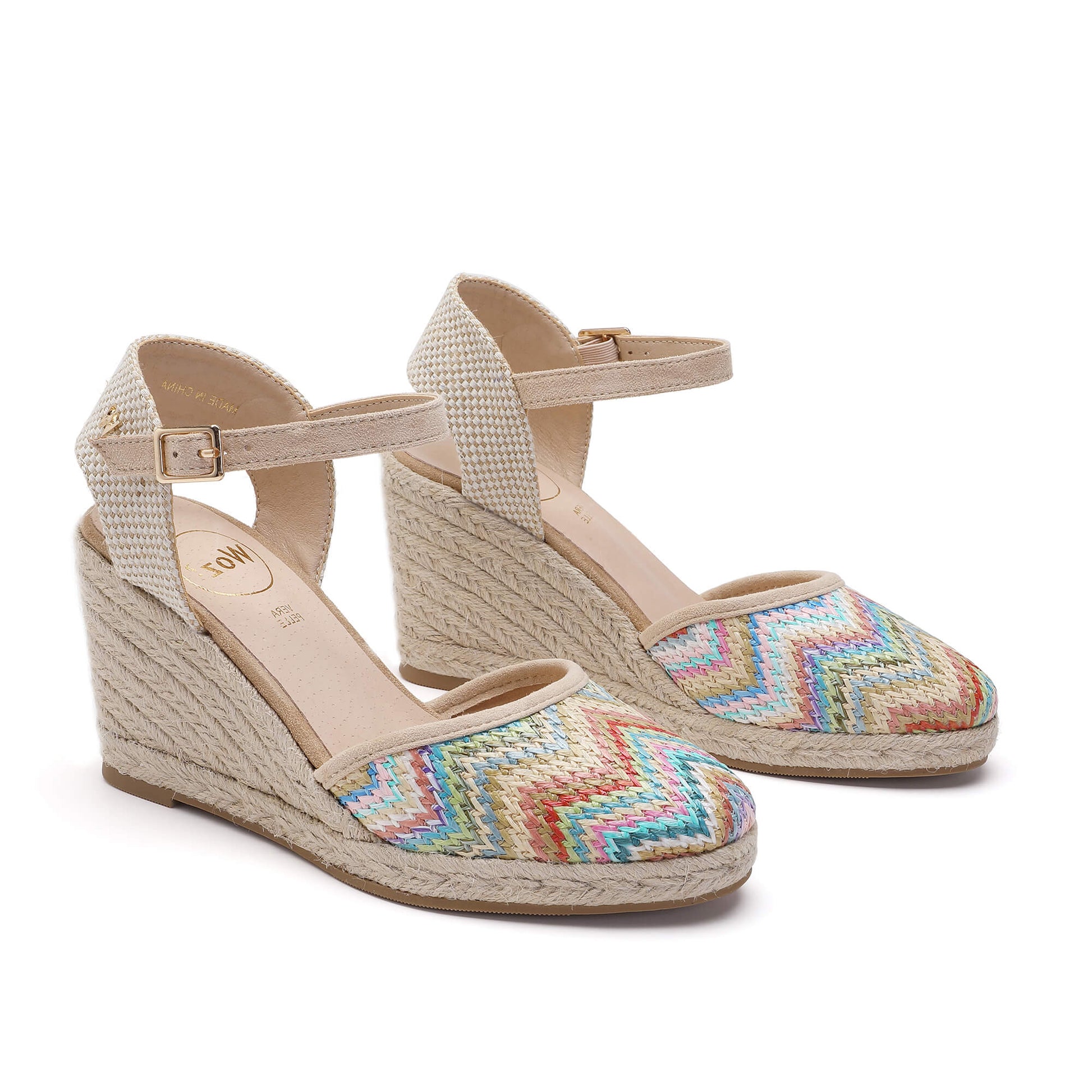 Designed in Italy, these Joy Beige Espadrilles feature a stylish raffia upper, an ankle strap with buckle fastening, and a soft padded footbed. The heel is adorned with natural beige braided rope and measures 7 cm in height.