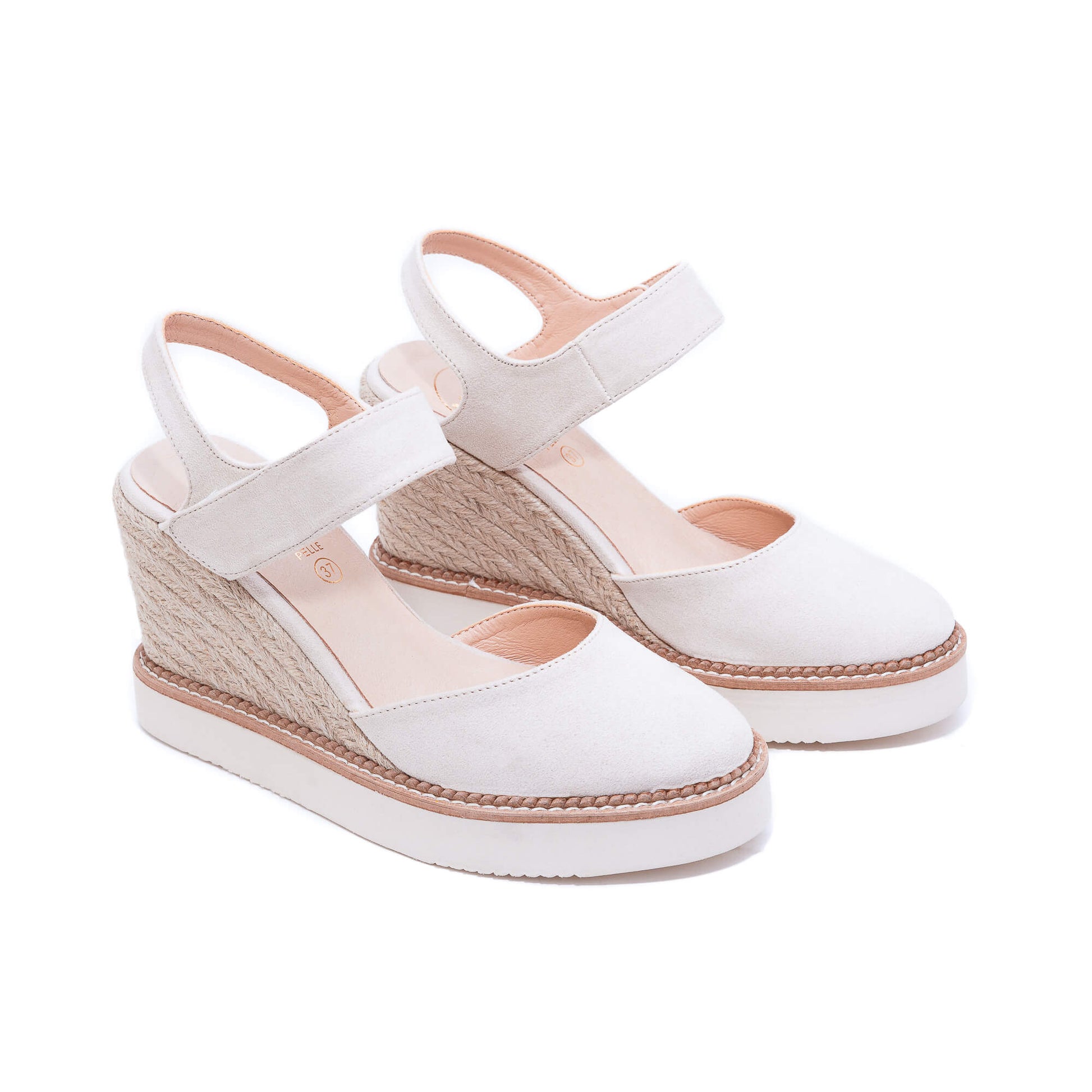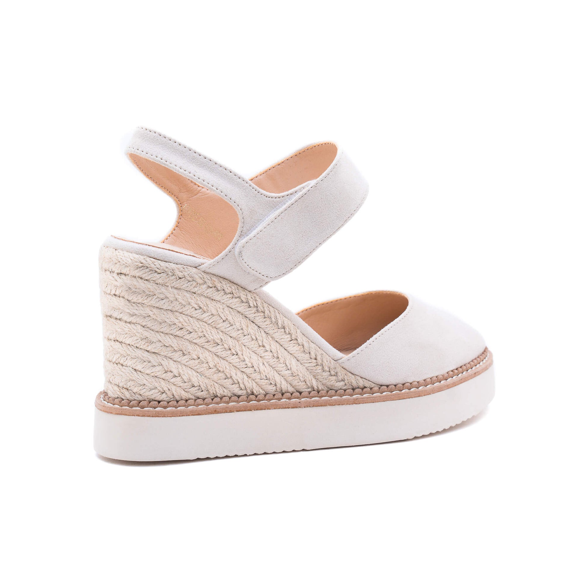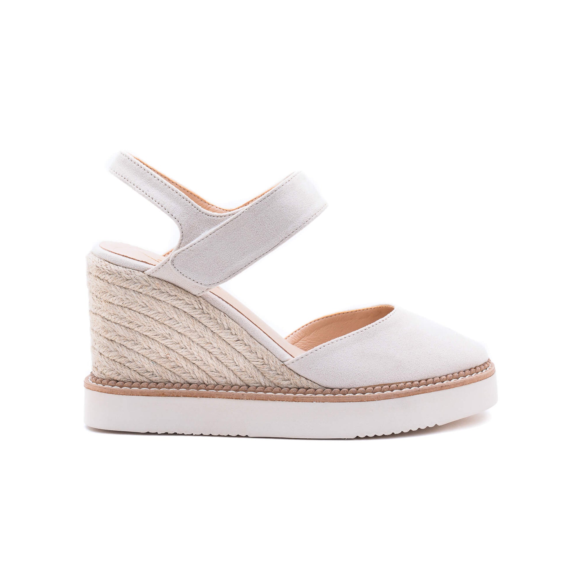 Expertly crafted suede espadrilles feature a convenient velcro ankle strap and a plush, padded footbed for maximum comfort. The elegant design is complemented by a natural Beige braided rope-covered heel that stands at a perfect 10 cm and the shoes were thoughtfully designed in Italy.