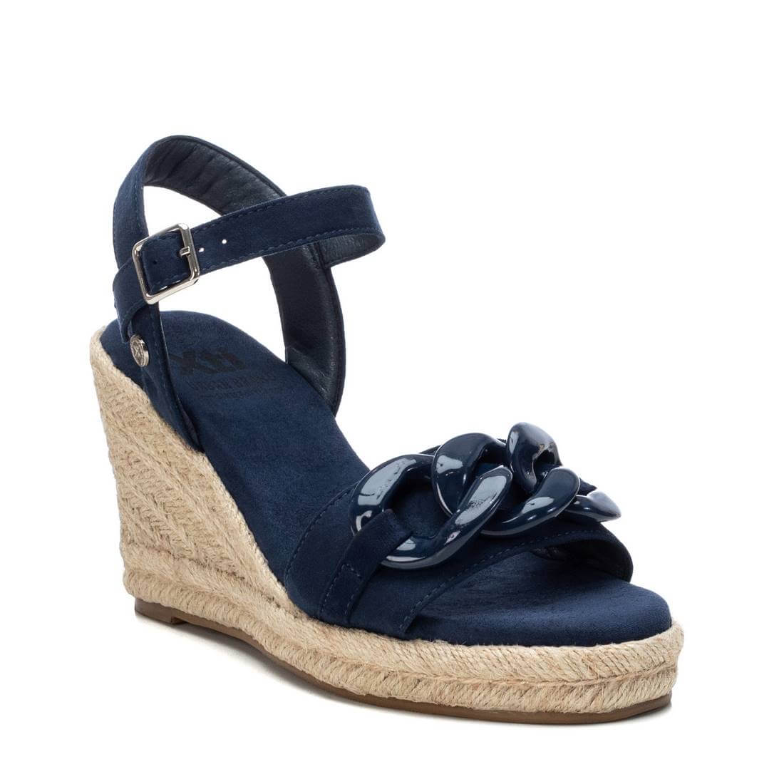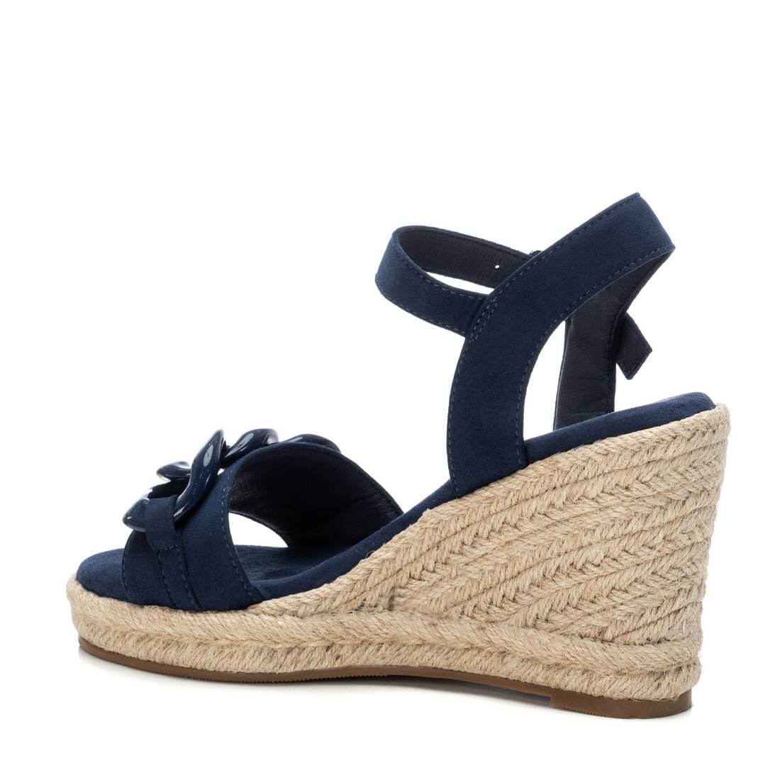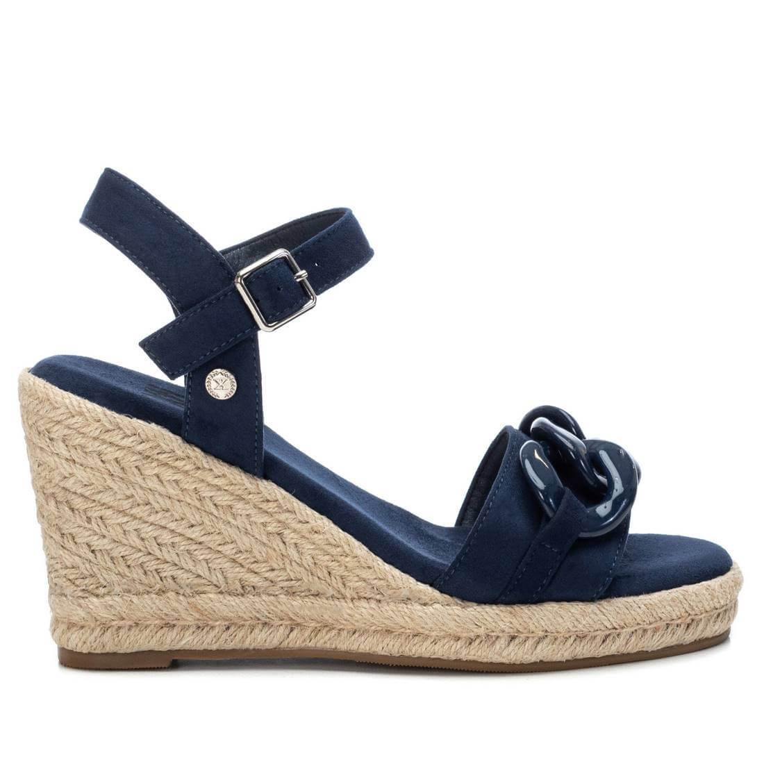 Experience the ultimate in summer style with the Madrid Navy Espadrilles from Xti! These must-have sandals feature a suede upper with a stylish, thick matching chain design. Easily adjust the buckle fastening strap around your ankle for the perfect fit. The comfortable plant lining is made from the same material, while the 7 cm high wedge heel is lined with braided jute. And with a non-slip rubber sole, you'll feel stylish and secure all day long.