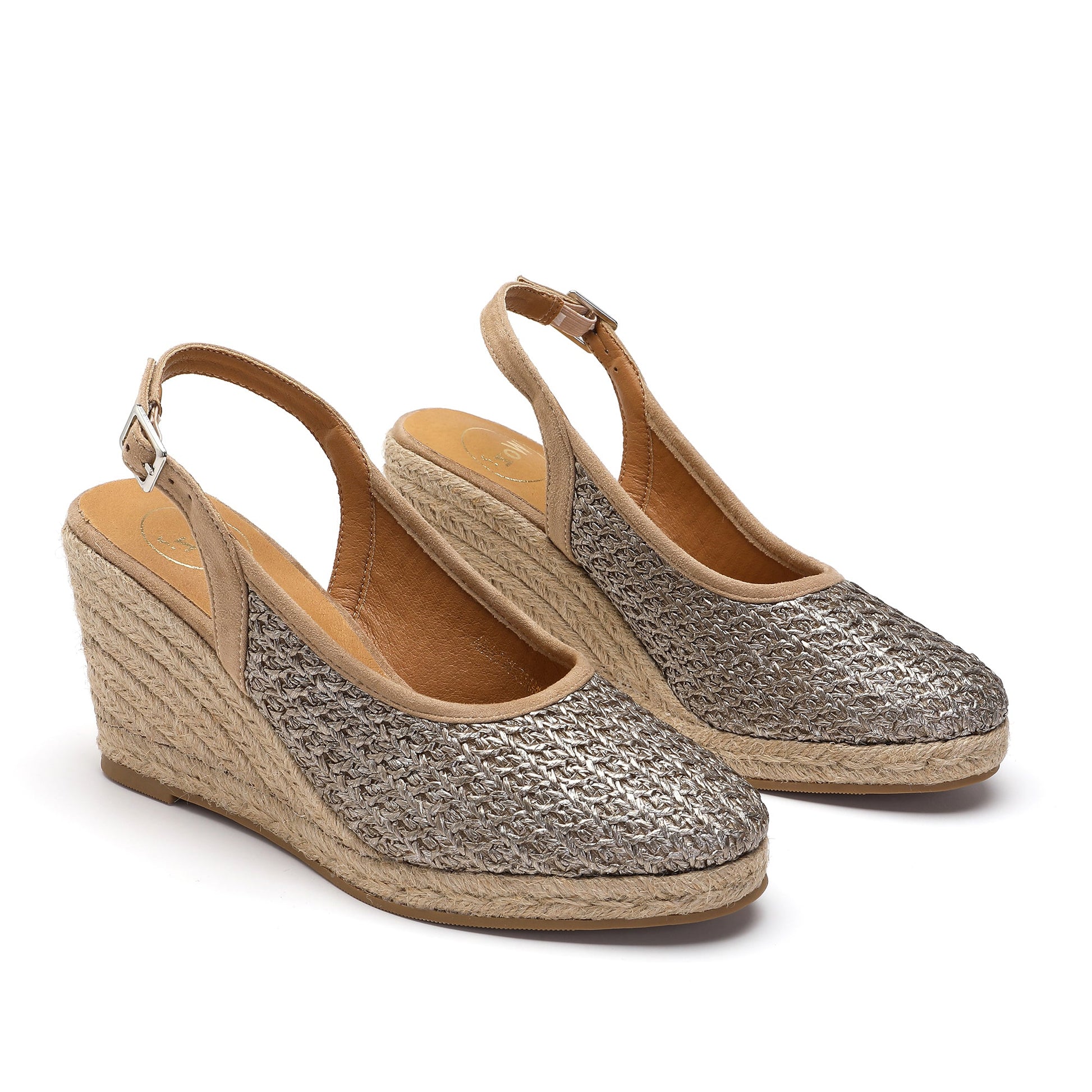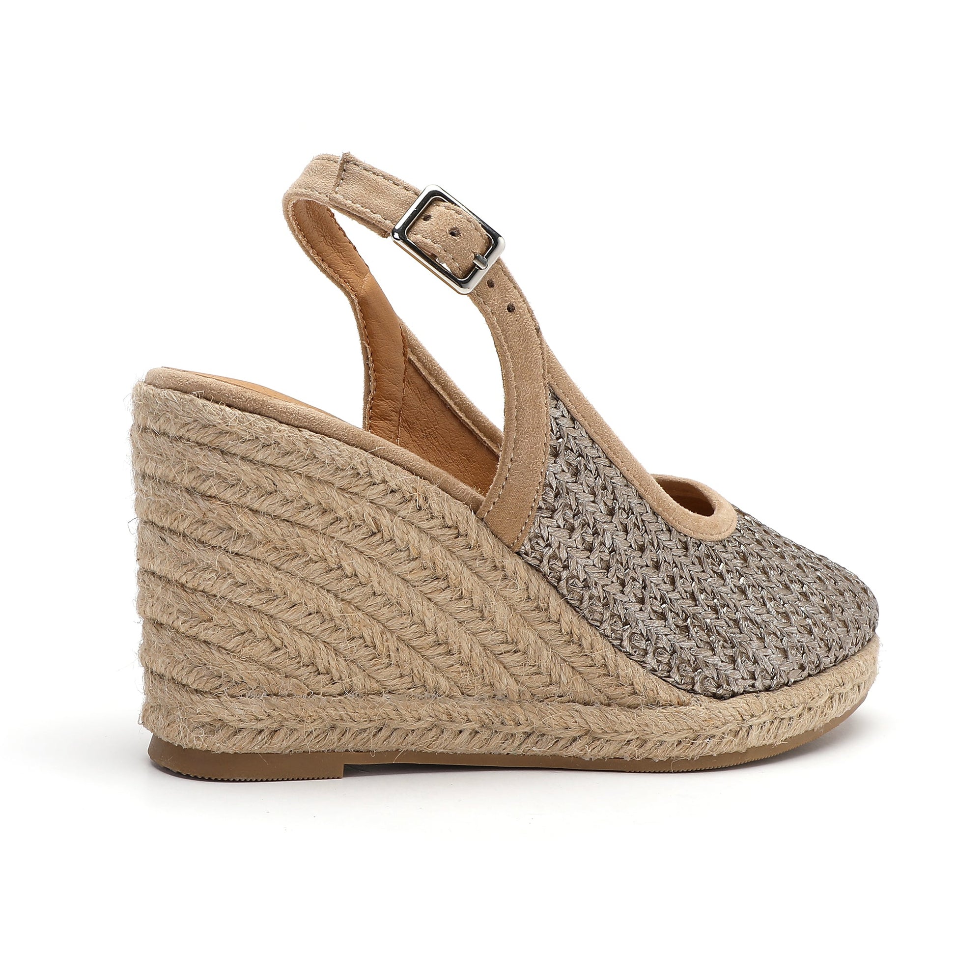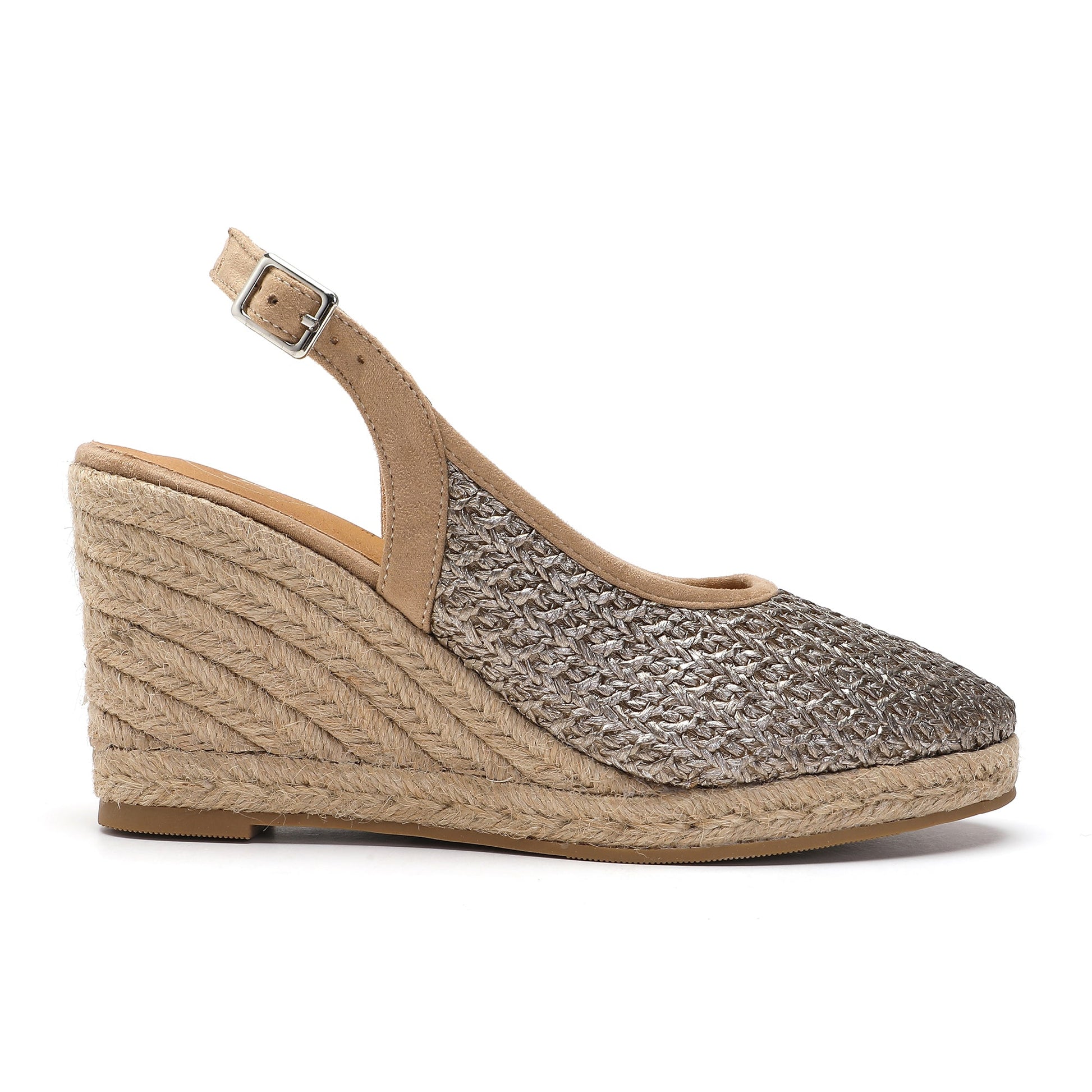 The Marilyn Taupe Espadrilles feature a 7 cm wedge heel made from soft, padded fabric. The heel is adjustable with a buckle ankle strap and covered in natural jute. Designed in Italy, these espadrilles are the perfect combination of comfort and style.