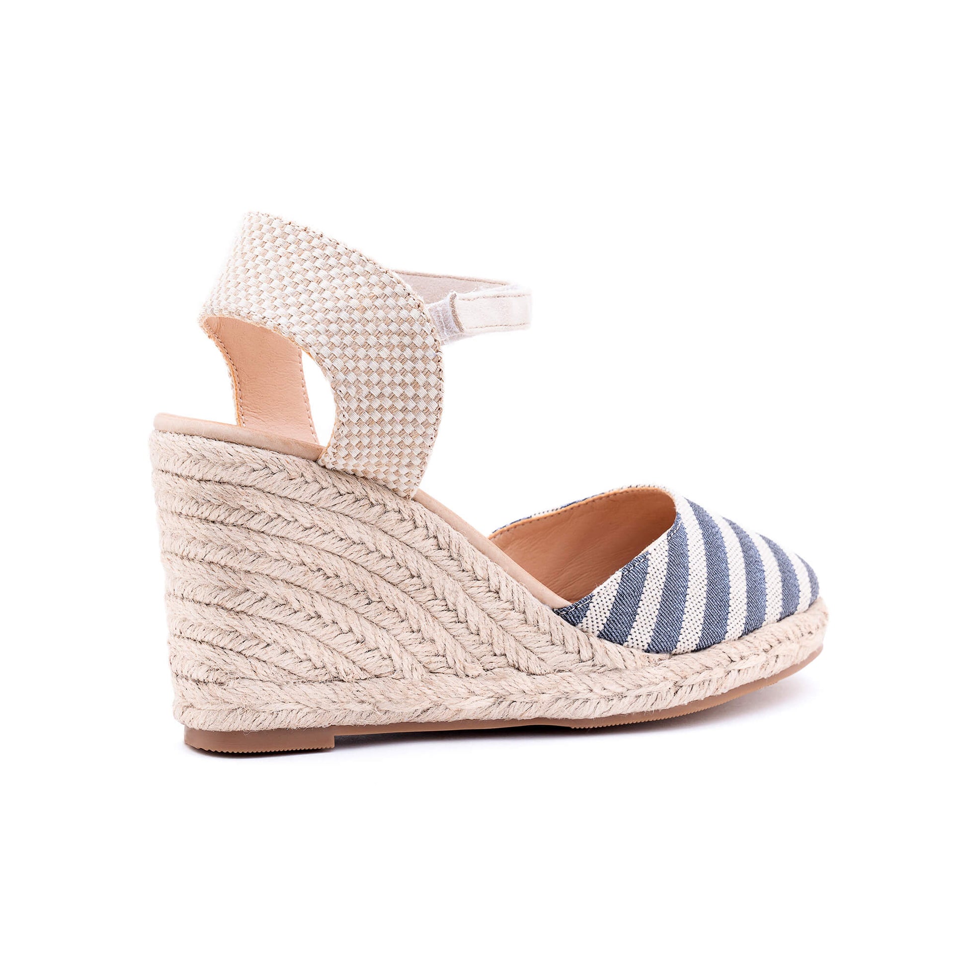 These Mary Blue Espadrilles feature an adjustable velcro ankle strap and a soft padded footbed for added comfort. The heel, covered in natural braided beige jute, has a height of 7 cm and is crafted with Italian expertise.