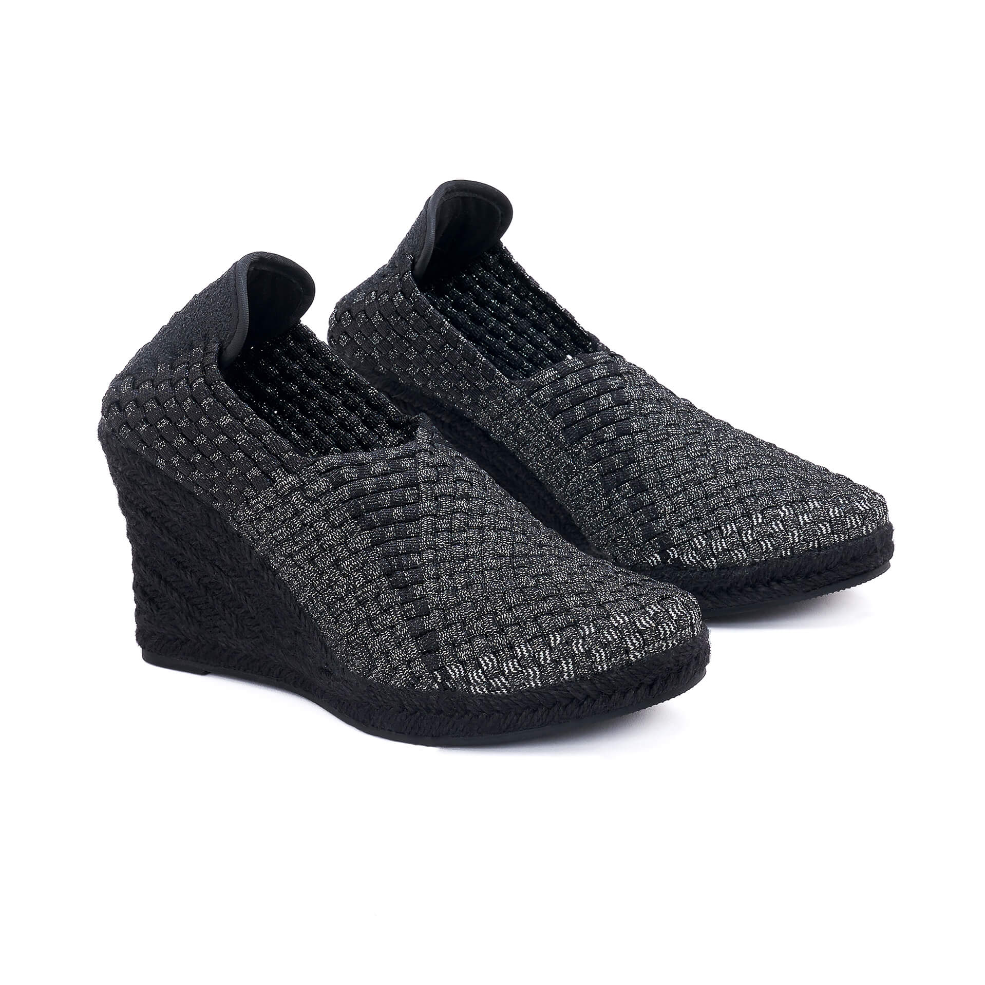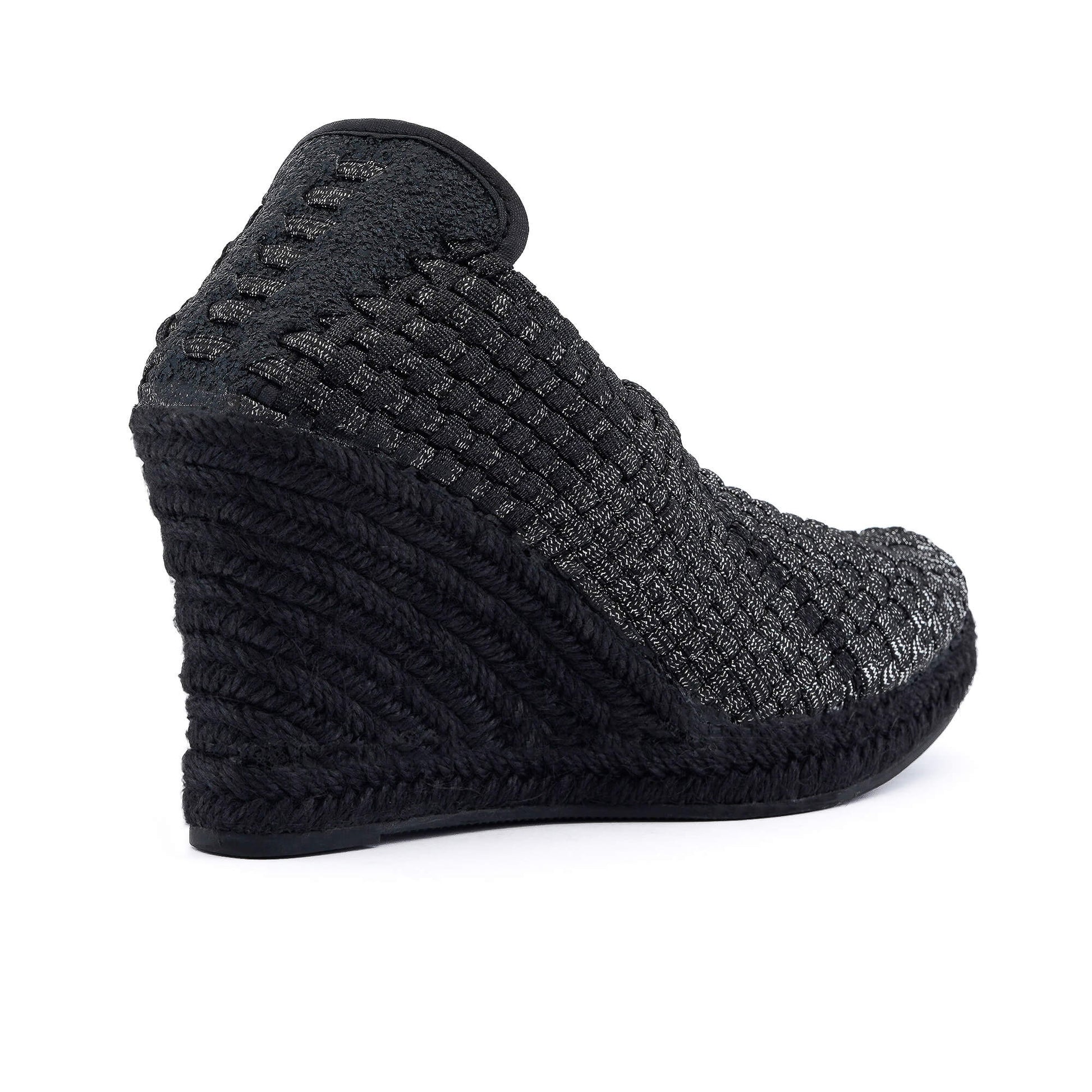 These espadrilles are made from stretch woven textile and feature a padded footbed for added comfort. The heel is adorned with a black braided rope, adding a stylish touch. With a heel height of 7 cm, these shoes are both practical and fashionable. Designed in Italy for a touch of quality.