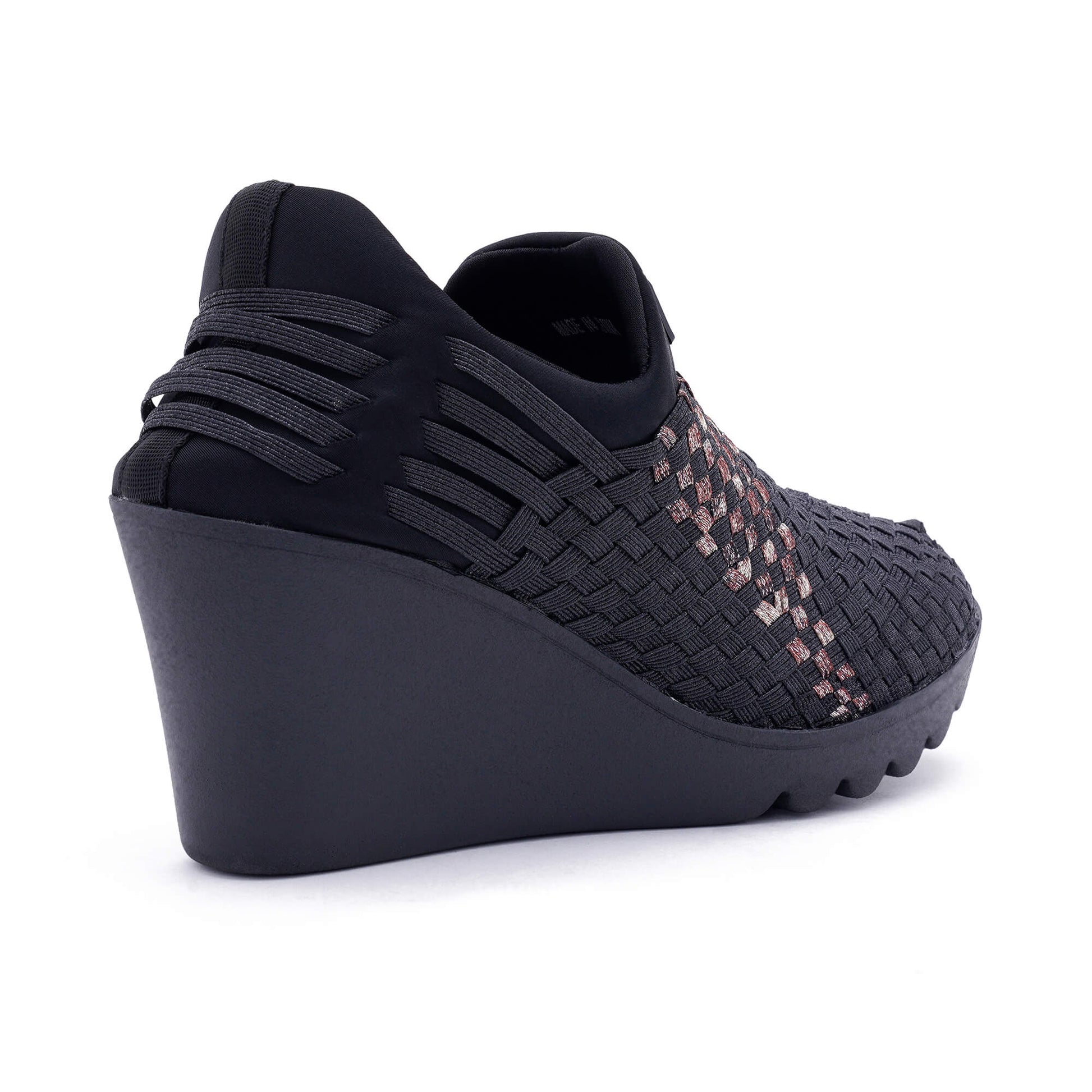 This Parma Black Nude Wedge Heel is constructed from stretch woven textile, ensuring a comfortable and relaxed experience while walking. The soft padded footbed and 7cm heel height add to the overall comfort, while the black outsole provides excellent grip with each step. Designed in Italy, this wedge heel is both stylish and functional.