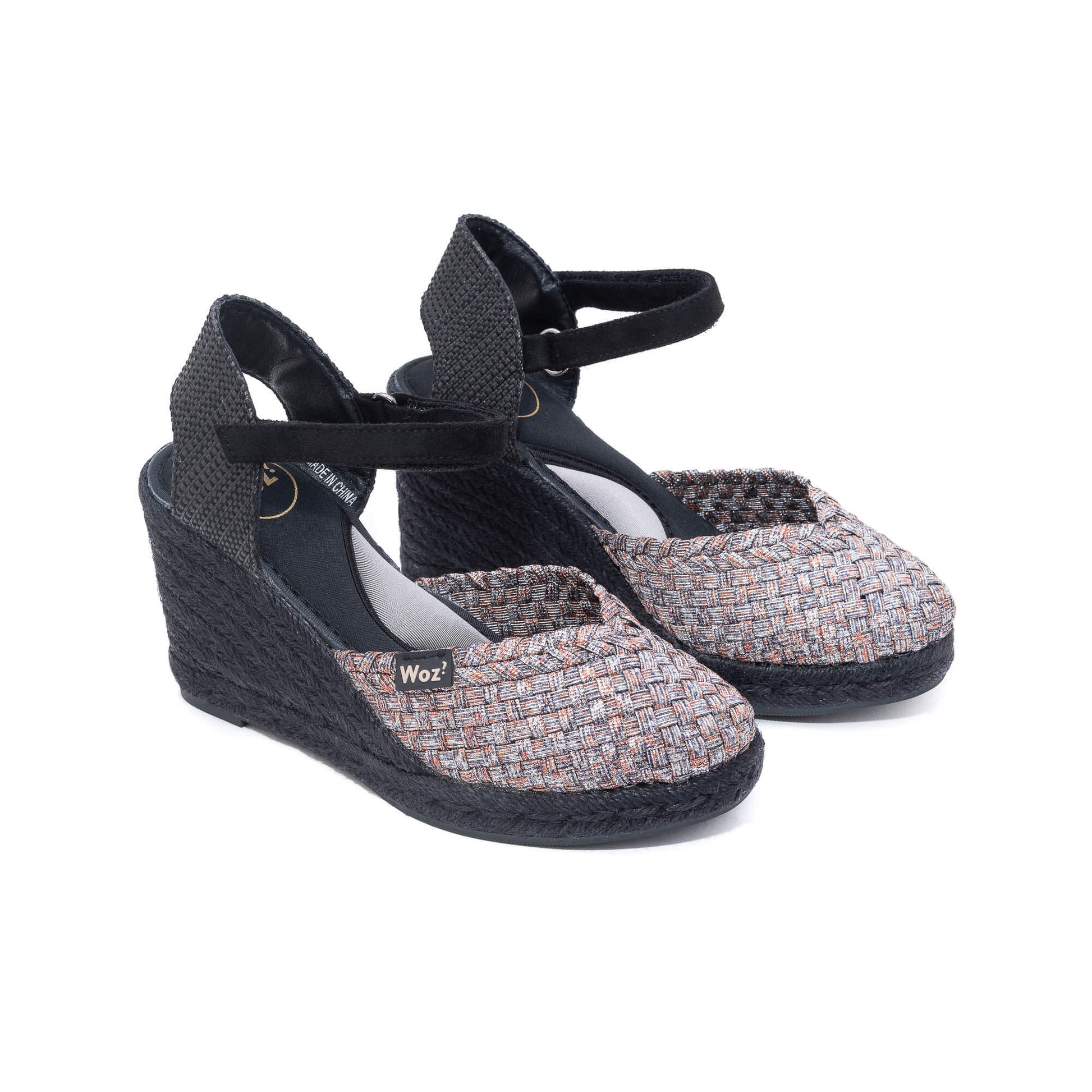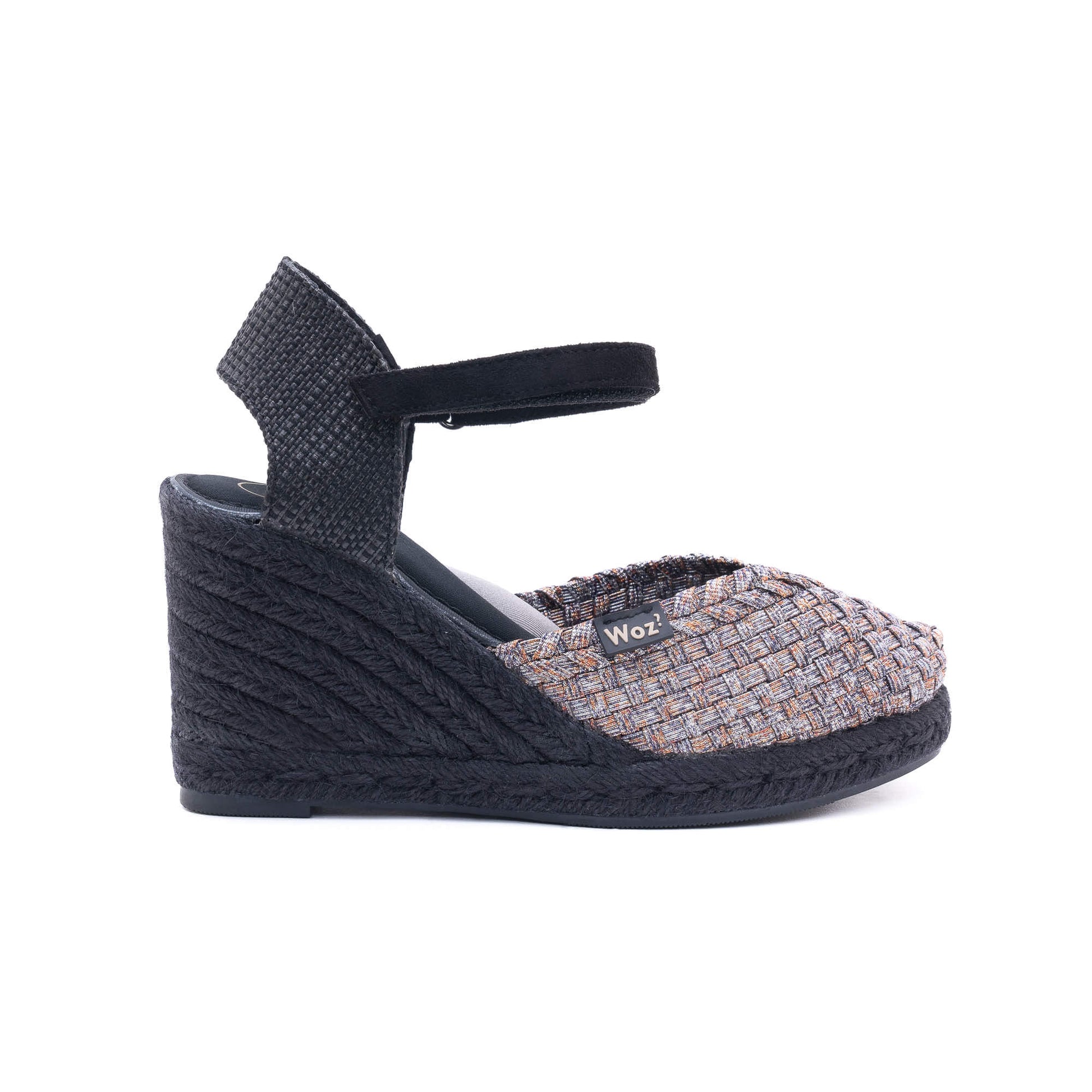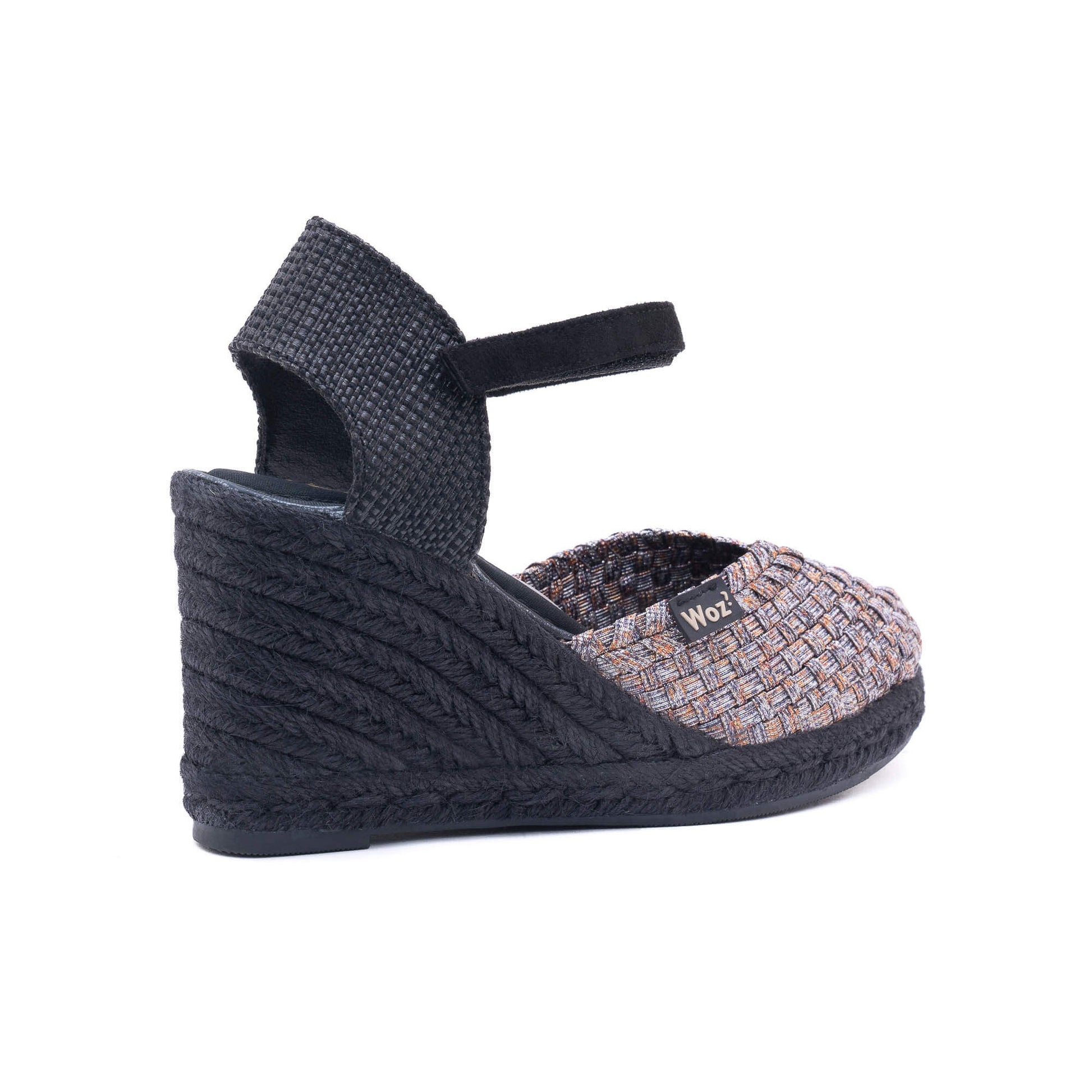 These espadrille wedges feature a woven stretch textile and a velcro fastened ankle strap. The soft padded footbed and 7 cm heel, covered in black rope, provide comfort and style. They were designed in Italy for a refined look.
