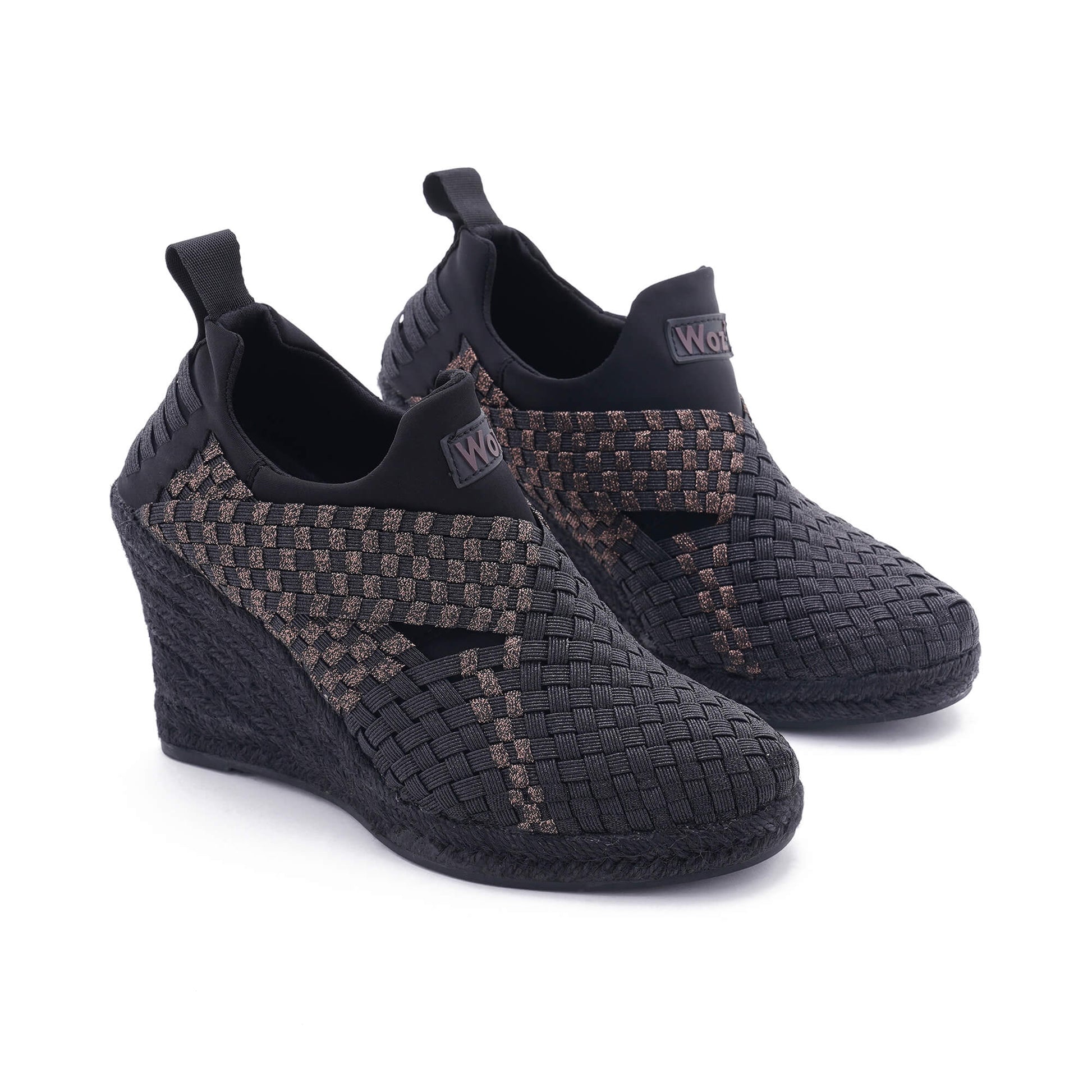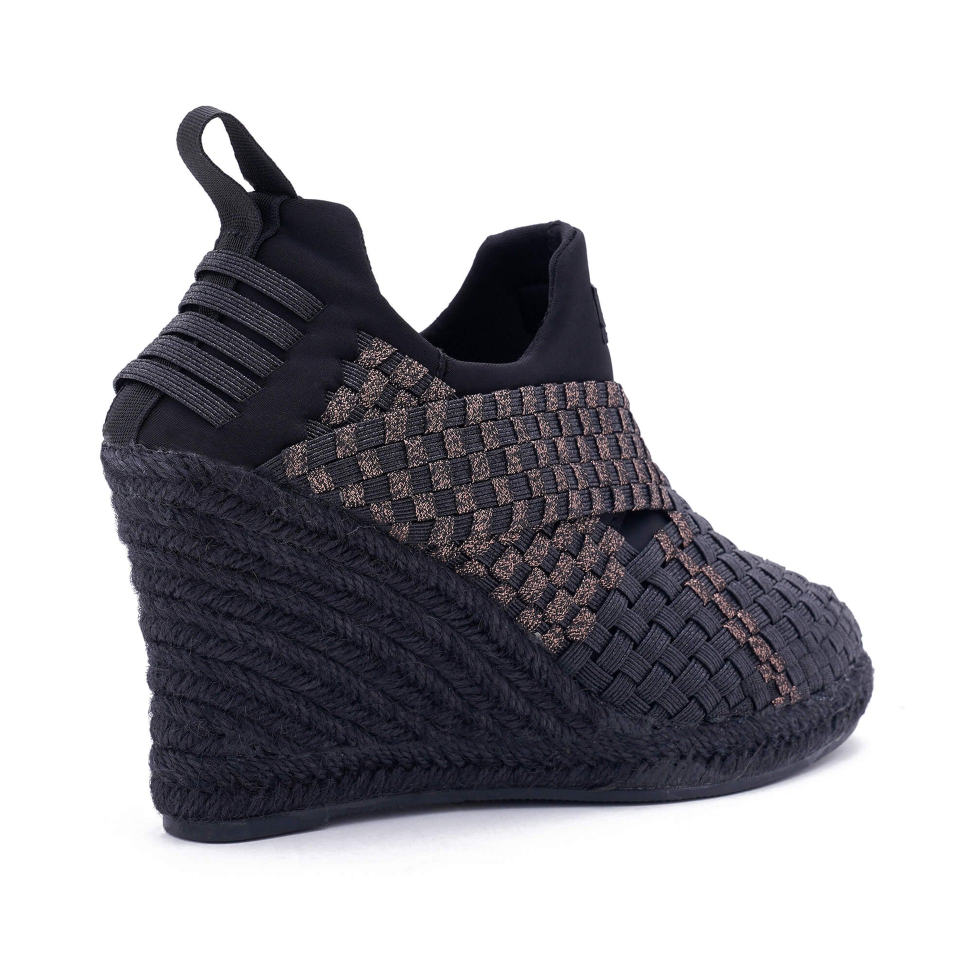Crafted in Italy, these espadrilles feature a sleek slip-on design and are expertly woven from stretch textile. The cushioned footbed provides a comfortable walking experience, while the elegant black braided rope and 7cm heel add a touch of sophistication.