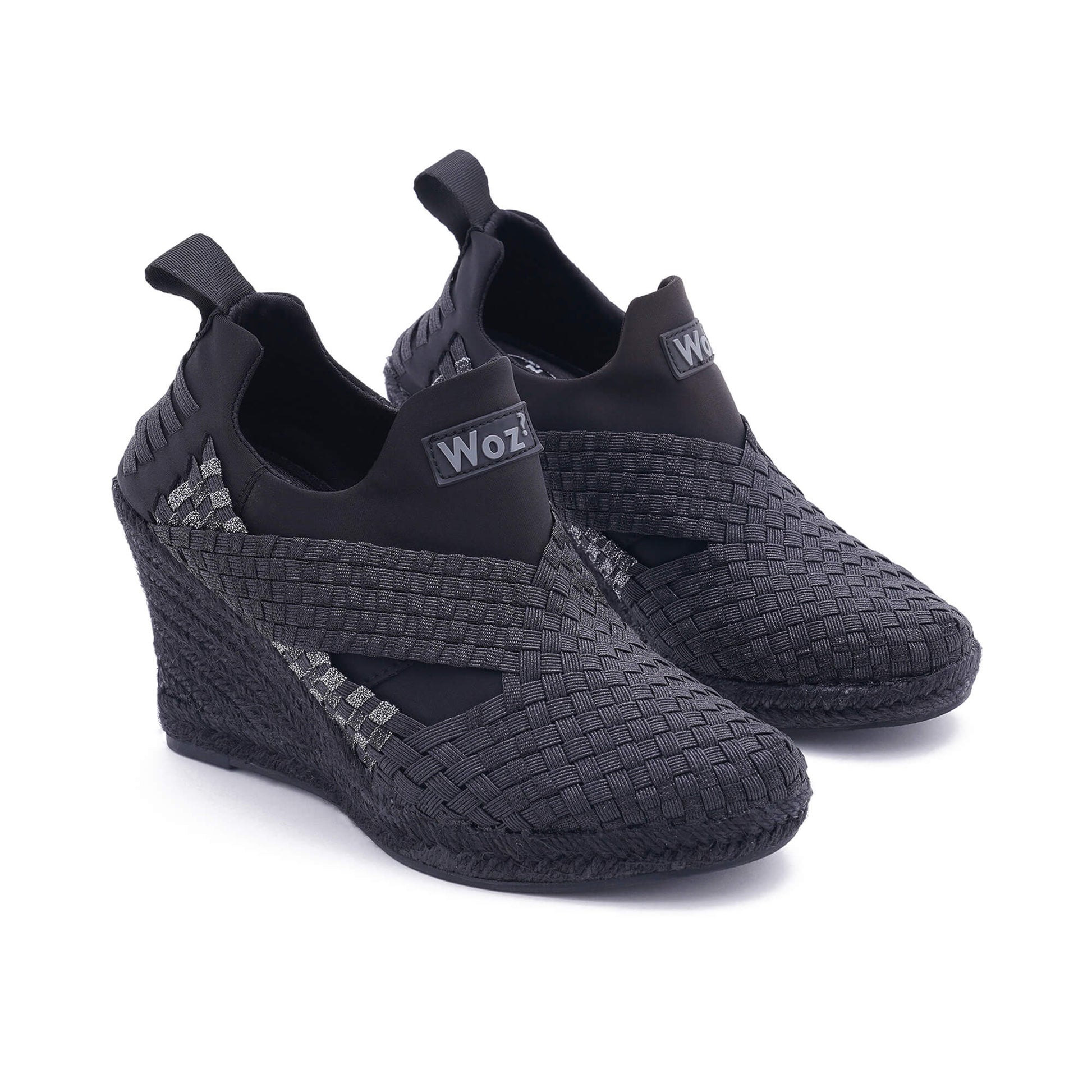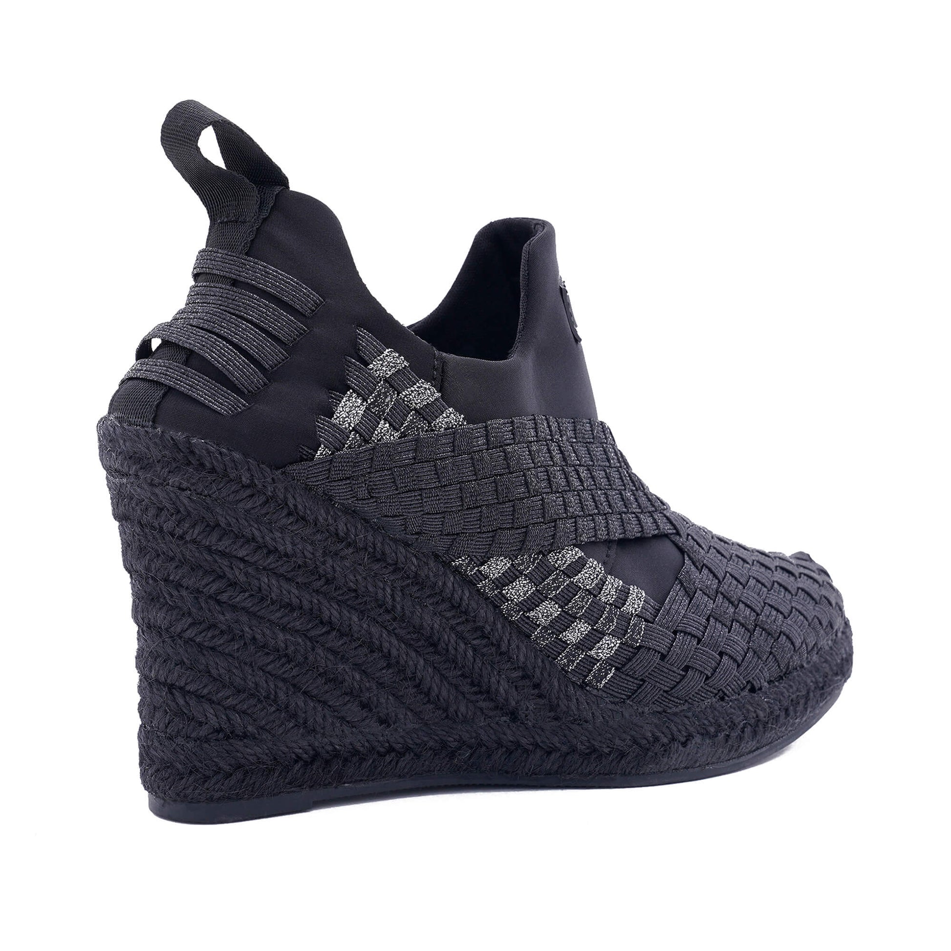 These Portofino Black Shine Espadrilles feature a slip-on design with a stretch woven textile for a comfortable and relaxed fit. The soft padded footbed and black braided rope add to the overall comfort, while the heel height of 7cm adds a touch of sophistication. Designed in Italy by experts in the industry.