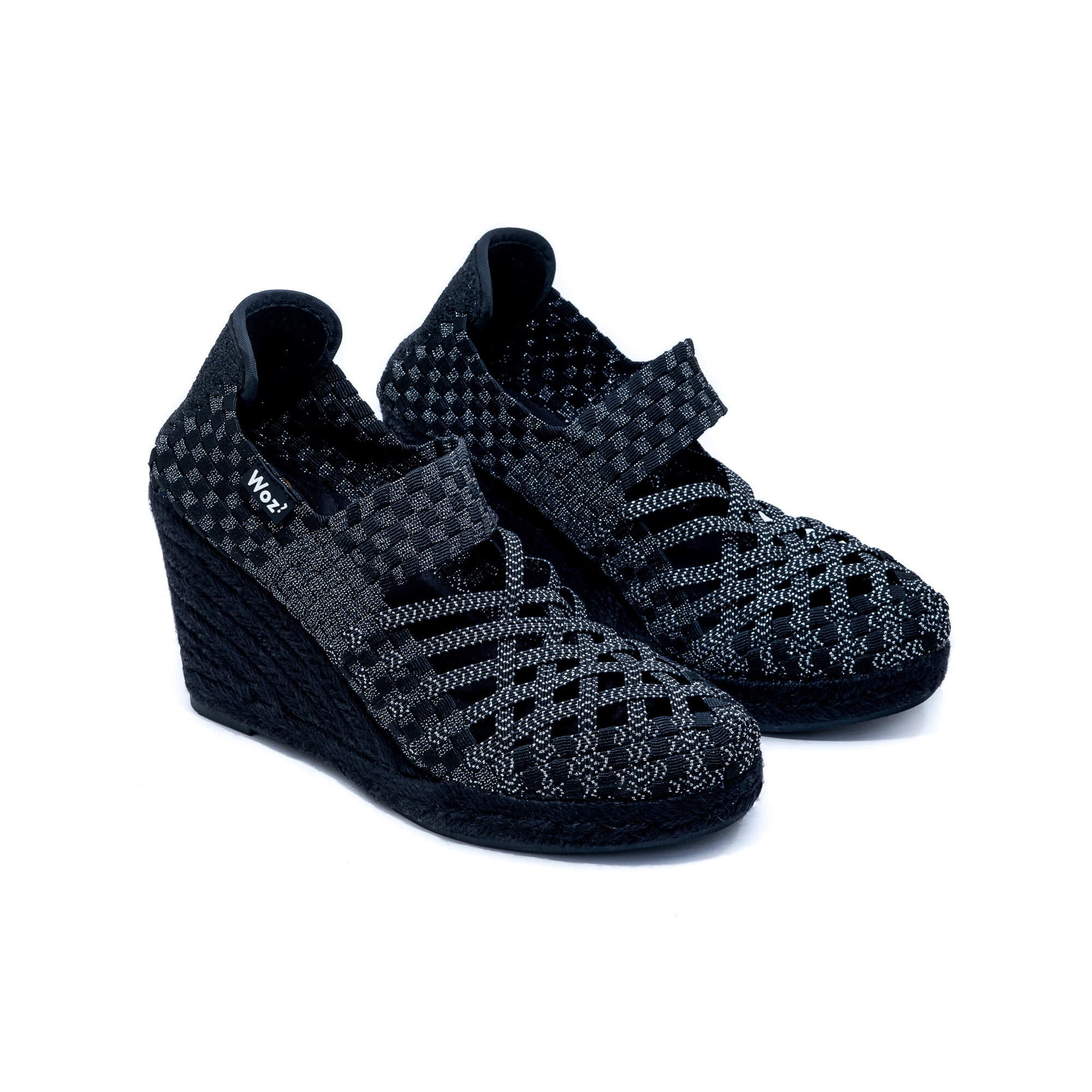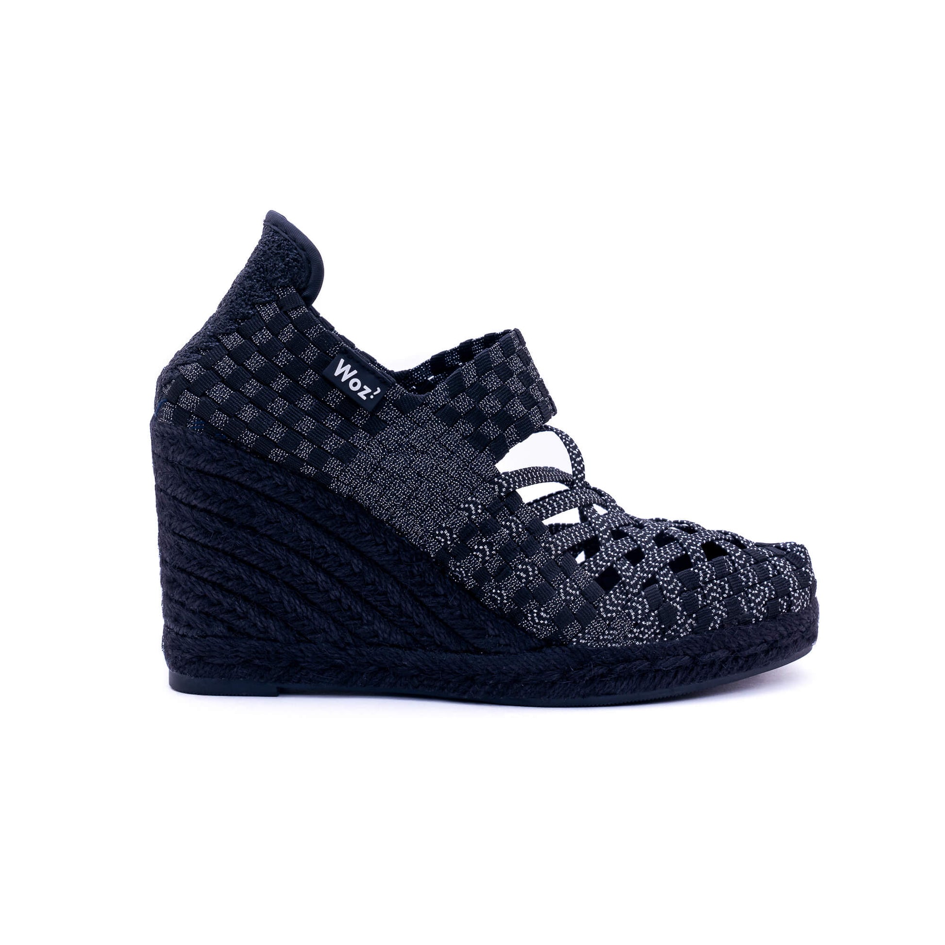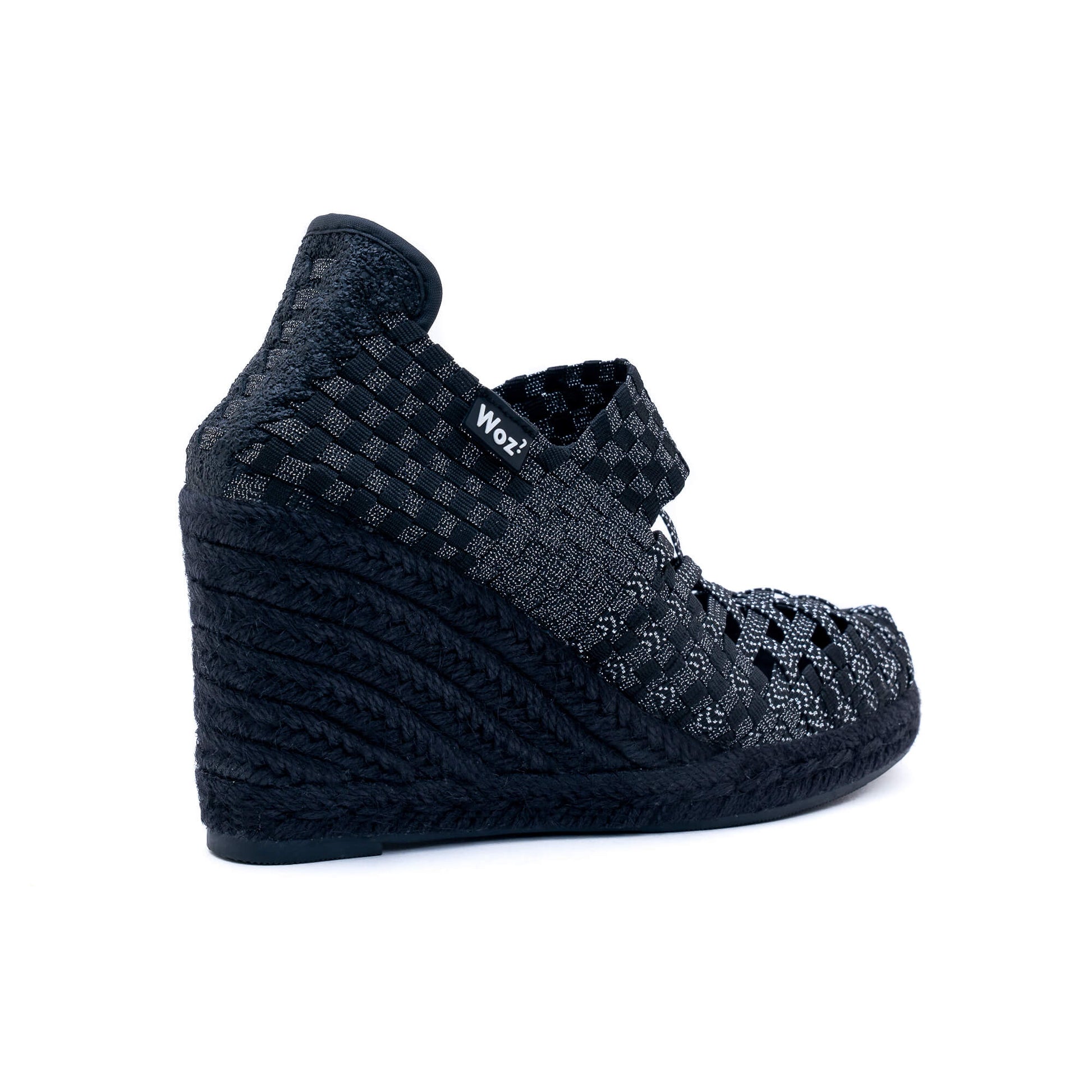 Professional and stylish, these espadrilles feature a stretch woven textile and a criss-cross pattern that molds to your feet for ultimate comfort and a touch of elegance. A soft padded footbed ensures relaxed walking, while the black braided rope covers the 7cm heel for added style. Designed in Italy.