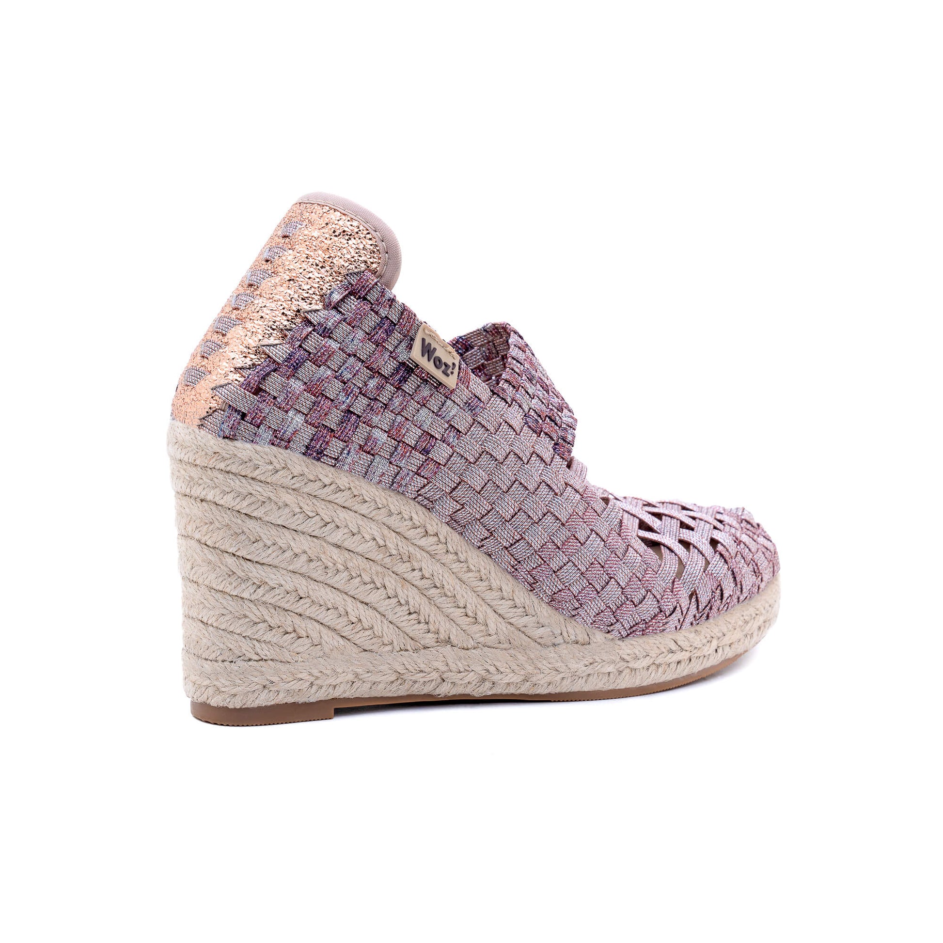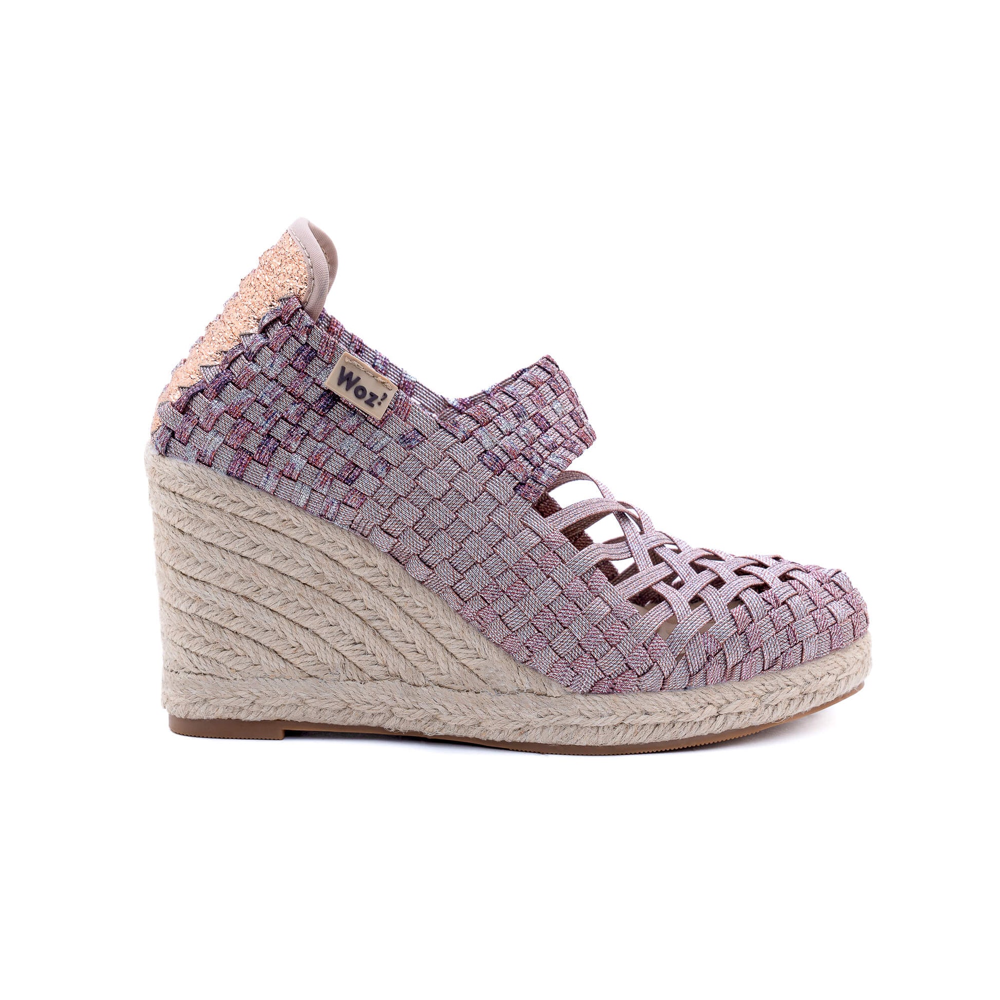 This espadrille is made from a stretchy woven textile and features a unique criss-cross pattern that conforms to the shape of your feet for maximum comfort and elegance. The soft padded footbed ensures a relaxed and comfortable walking experience, while the 7 cm heel is covered in a beige braided rope for a stylish touch. Designed in Italy, these slip-on espadrilles are the perfect addition to your wardrobe.