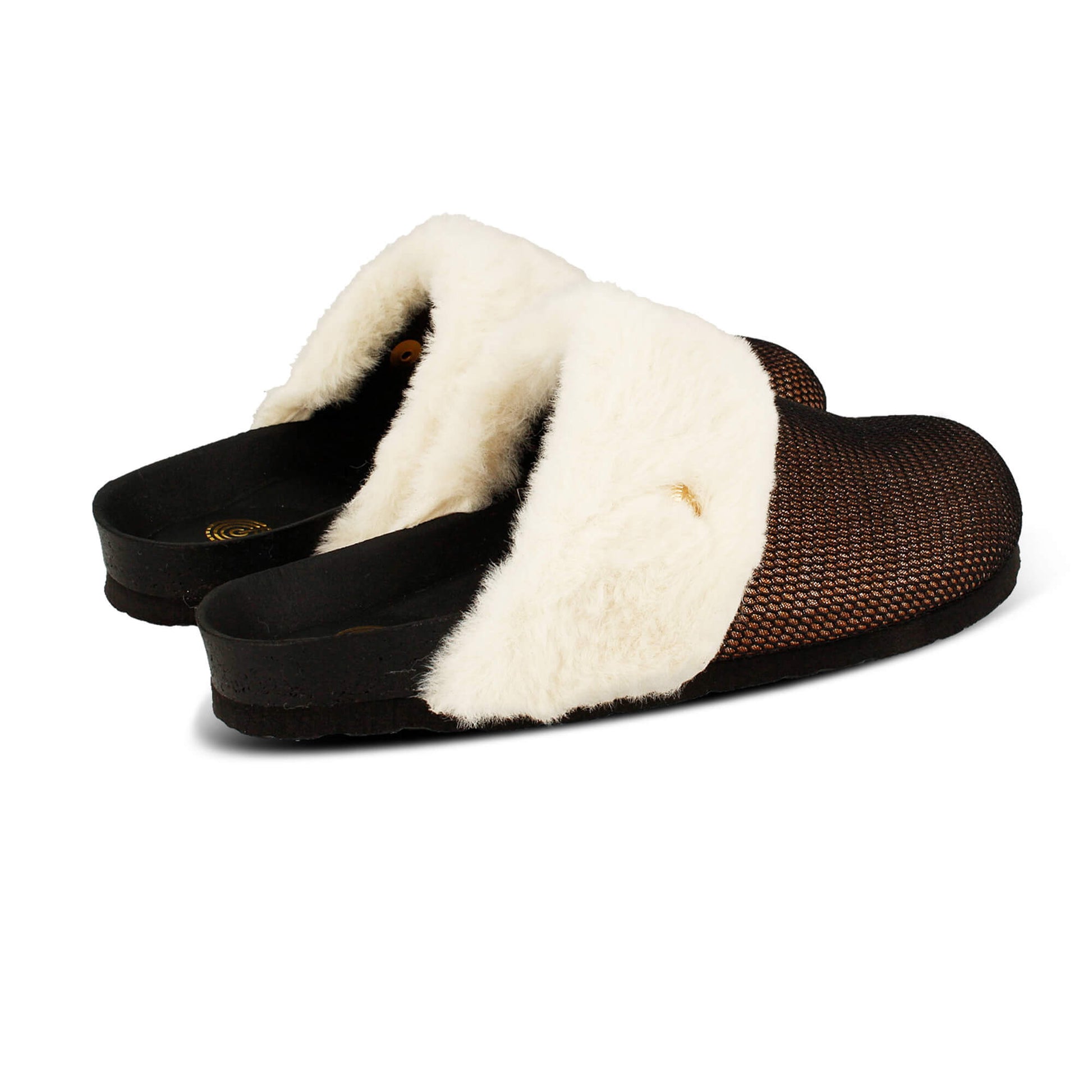 Expertly crafted with a blend of synthetic fur and mesh fabric, the Reno Copper Slip On boasts an anatomical design featuring natural cork and foam for enhanced comfort. The durable rubber outsole is made in Spain for superior quality.