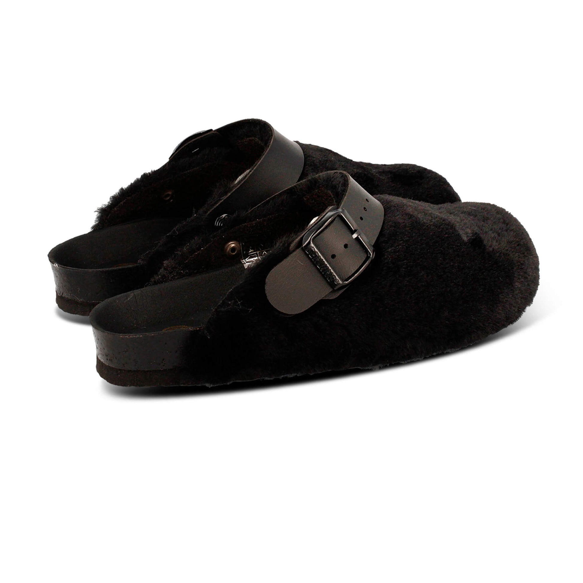 Crafted from faux fur and featuring an adjustable buckle, these Shetland Fur Black Clogs offer unparalleled comfort with their natural cork and foam material and durable EVA outsole. Proudly made in Spain, these clogs are a must-have for any footwear collection.